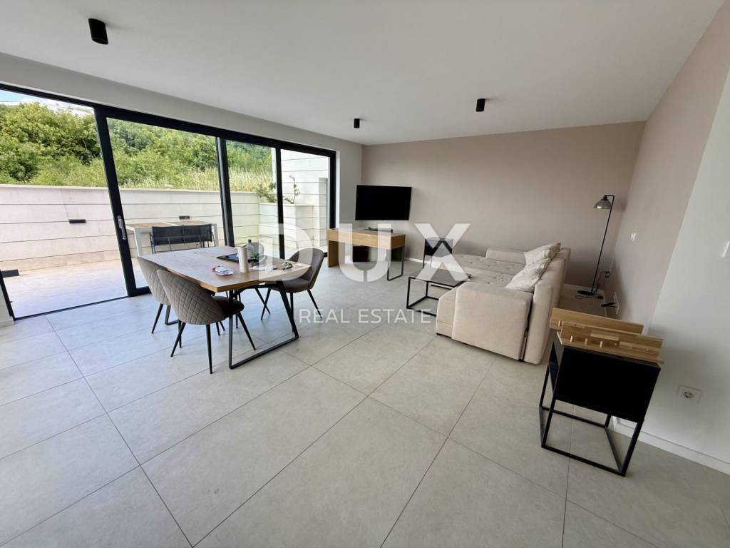 We are mediating the sale of an exclusive property, an apartment with a swimming pool and a garage in Crikvenica! The residential unit is located on the ground floor (1st floor level) of a new building with a total of 4 residential units. Top quality construction and high-level equipment. The apartment consists of a living room with a kitchen and dining room, two bedrooms, two bathrooms and a toilet, with a total usable area of 79.20 m2, to which the apartment belongs as secondary parts: - parking space in the GP2 garage with a usable area of 19.09 m2, - storage room S2 with a usable area of 2.25 m2, - terrace T2a with a usable area of 77.13 m2, - terrace T2b with a usable area of 32.77 m2, - parking lot P2 with a usable area of 11.56 m2 The property is being sold furnished (currently in the interior decoration phase).