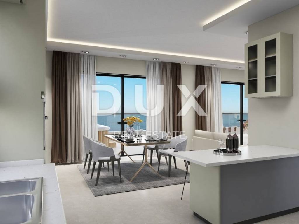 We are presenting an apartment on the first floor of a modern new building in pre-sale. The apartment consists of a bedroom, bathroom, open space living room and kitchen with dining room and a terrace with a sea view! The building will be built with quality materials, PVC joinery in anthracite design, mosquito nets and electric roller shutters. The apartment will have two parking spaces. Construction will start in the fall of 2025, and the expected completion of the works is summer 2026. Exceptional location, 200 meters from the sea, the building is surrounded by olive groves and only 5 minutes by car from the city. Don't miss out! The price is PROMOTIONAL and is valid only for the earliest phase of construction!! For all those who know how to recognize a top location, quality of construction and timeless design!
