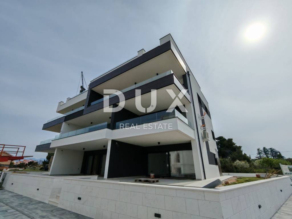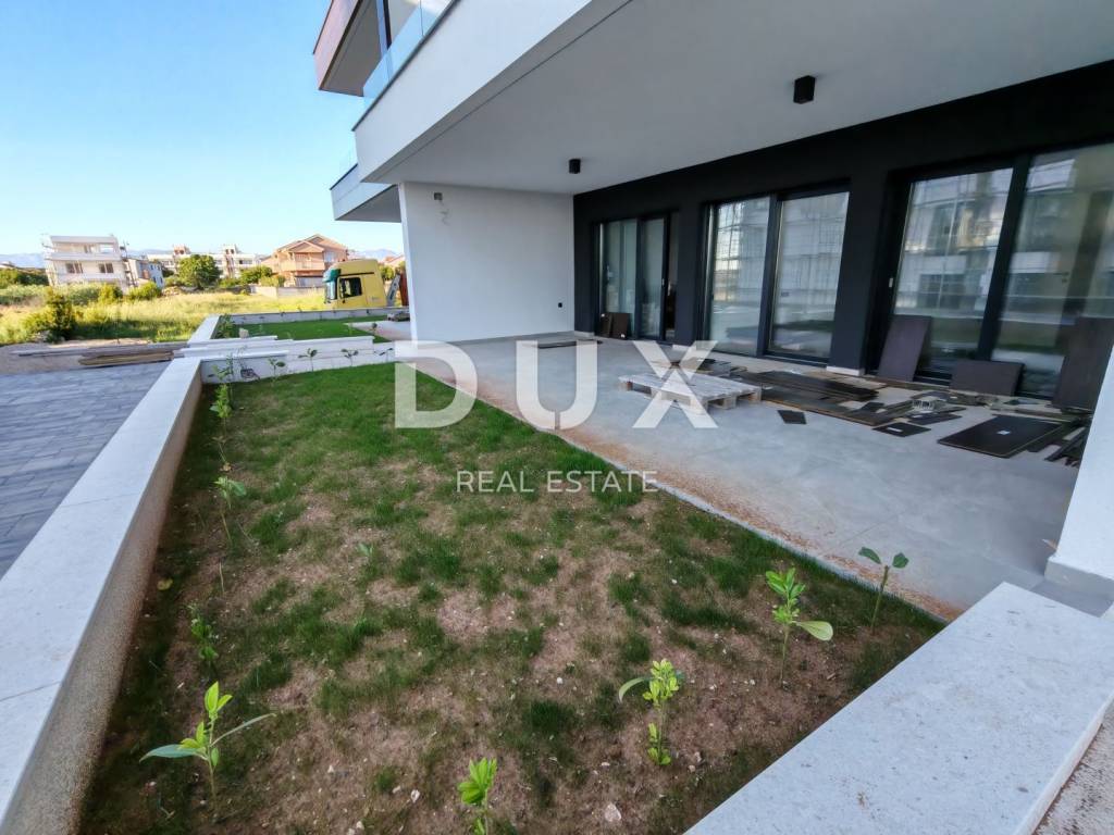 For sale is a top-quality luxury apartment on the ground floor of a modern new building, located just 20 meters from the sea, in the beautiful seaside resort of Zaton near Zadar. The apartment with a total net area of 77.72 m2 offers the perfect combination of modern design, functionality and an extraordinary location. The apartment consists of two comfortable bedrooms, two elegant bathrooms, a spacious open-space living room with kitchen and dining room, from which a glass wall offers a view of the sea. A large covered terrace and loggia are ideal for morning coffee or evening relaxation with the sound of the waves, and the apartment is given additional value by a private garden - the perfect place for your own green oasis or outdoor socializing. The apartment also comes with two parking spaces. The building was built to the highest standards: aluminum joinery from the renowned manufacturer Schüco with electric roller shutters and blinds, a Schindler elevator, top-quality large-format ceramics, underfloor heating using a heat pump and Mitsubishi air conditioners for maximum comfort throughout the year. The bedrooms feature high-quality parquet flooring, and the entire property exudes elegance and quality. The apartment is VAT-compliant, meaning that the buyer does not pay real estate tax. The energy certificate A is in the process of being obtained, and move-in is planned for summer 2025 the ideal time to enter a new story by the sea. Zaton is a charming Dalmatian town that combines the peaceful atmosphere of the Mediterranean coast with modern amenities. It is known for its beautiful seaside promenade, clean beaches, and the Holiday Resort Zaton one of the most famous tourist complexes in Croatia, which offers numerous facilities for the family, sports and recreation. Just a few minutes' drive away is the historic city of Zadar, full of cultural heritage, excellent gastronomy and unforgettable sunsets. If you are looking for a dream home, a luxury resort or a smart investment on the Adriatic coast this is an opportunity you do not want to miss. For all additional information and a viewing, please feel free to contact us we will be happy to guide you through this exceptional property.