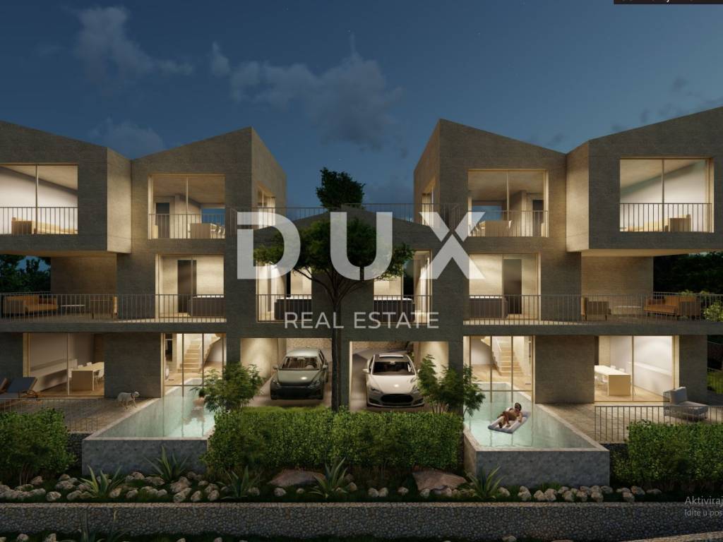 In a prestigious part of the island of Krk, in the town of Soline, this modern luxury villa is located, offering a perfect combination of top-notch architecture, comfort and incredible sea views. The villa offers a high standard of living, designed with an emphasis on spaciousness, privacy and elegance. Exclusive concept of modern living The semi-detached houses are located on a plot of 797 m, and each of them extends to 184 m over three above-ground floors (G+2). Ground floor - elegant entrance area, cloakroom, wellness area with private pool and sauna, relaxation area and summer kitchen that opens onto a spacious terrace with sea view. First floor - open concept living room, dining room and kitchen with lots of natural light, storage room and guest toilet. Second floor - three luxurious bedrooms, two bathrooms, of which the master bedroom has its own bathroom and a balcony with panoramic views. Each villa has a private garage, allowing practical and safe access to the interior spaces. Superb exterior privacy and luxury Swimming pool with the possibility of partitioning with glass walls, which allows use throughout the year Large terraces and gardens that offer an ideal space for relaxation and socializing Access road from the east side, ensuring peace and privacy These luxury villas are currently under construction, and are being built to the highest quality standards, and their orientation to the northwest ensures beautiful sunsets with a view of the sea. Turnkey your perfect villa on Krk! Both villas are sold on a "turnkey" basis, which means that future owners receive a fully completed property, except for the furniture. Exclusive location Soline, island of Krk Beautiful panoramic sea view Luxurious modern architecture Private pool and wellness area Spacious terraces and gardens Direct access from the garage Peace and privacy