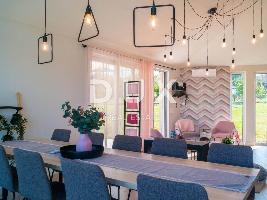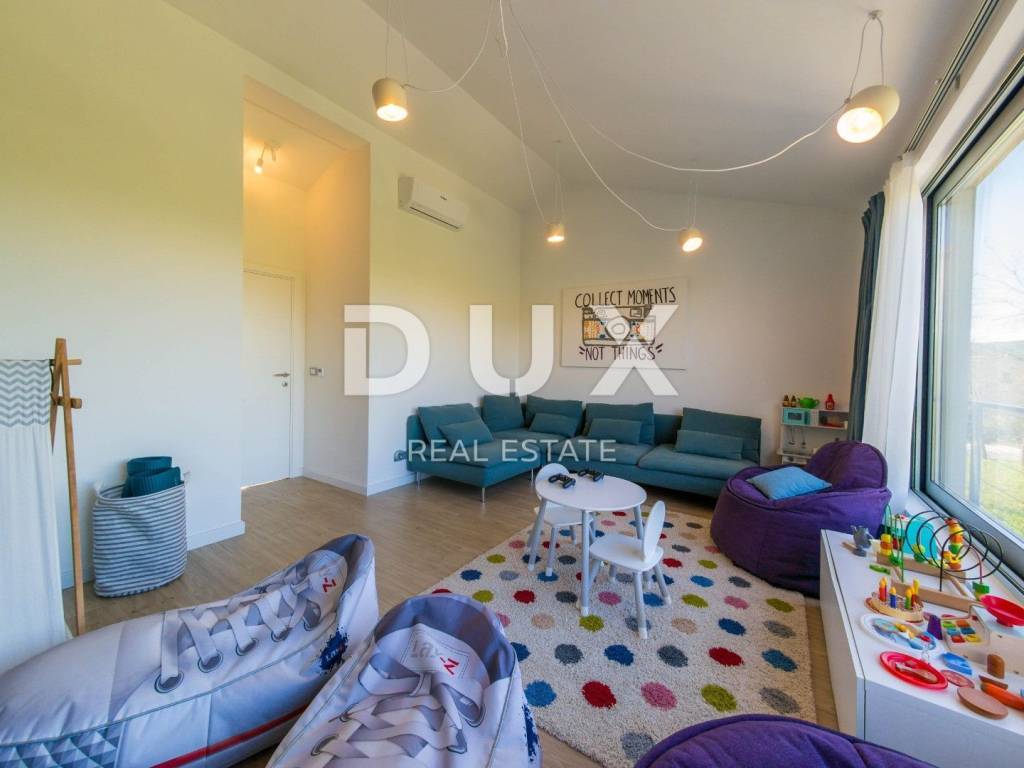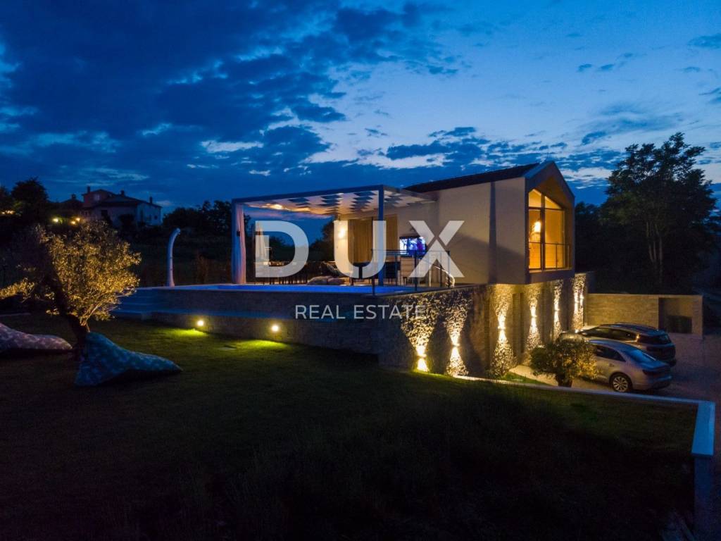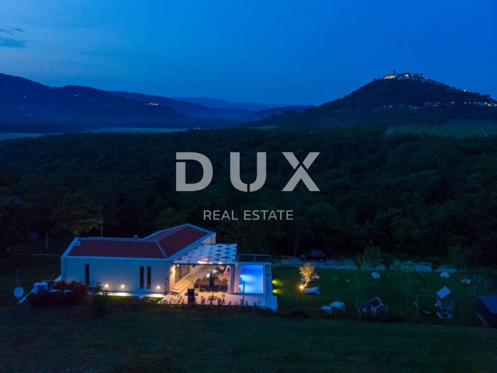 In an extraordinary location, an unusual villa with a beautiful view is located. The uniqueness of this villa is reflected in the layout of the rooms, which stands out from the vast majority of villas on the market. The concept of the villa works as follows: In the basement of the house, there is a night part of the house, namely 4 bedrooms with 4 bathrooms, a technical room, uncovered and covered atriums. The stairs lead to the first floor, which offers a phenomenal view of Motovun and consists of an open space kitchen with dining room, living room, toilet, study that can be converted according to the preferences of the future owners, terraces and loggias. Going out onto the terrace, we access the heated swimming pool (22m2) with a beautiful view, next to the pool there is also a barbecue, TV and complete sound system. In addition to the above, this villa also offers a children's playroom, so there is a corner for every family member. IMPORTANT FEATURES: The villa is equipped with underfloor heating with a heat pump. 7 inverter air conditioners The villa offers 254 m2 of living space and is located on a plot of 967 m2. Energy certificate A Location: The first beach is 28 km away The town center (shops) 3 km Tennis courts 29 km First restaurant 2.5 km Given the very accessible location which, in addition to being close to all amenities, also offers privacy, panoramic views, and a very special atmosphere when staying in the villa, we recommend it to all buyers looking for a quiet location, quality, and proximity to endless vineyards and top restaurants!
