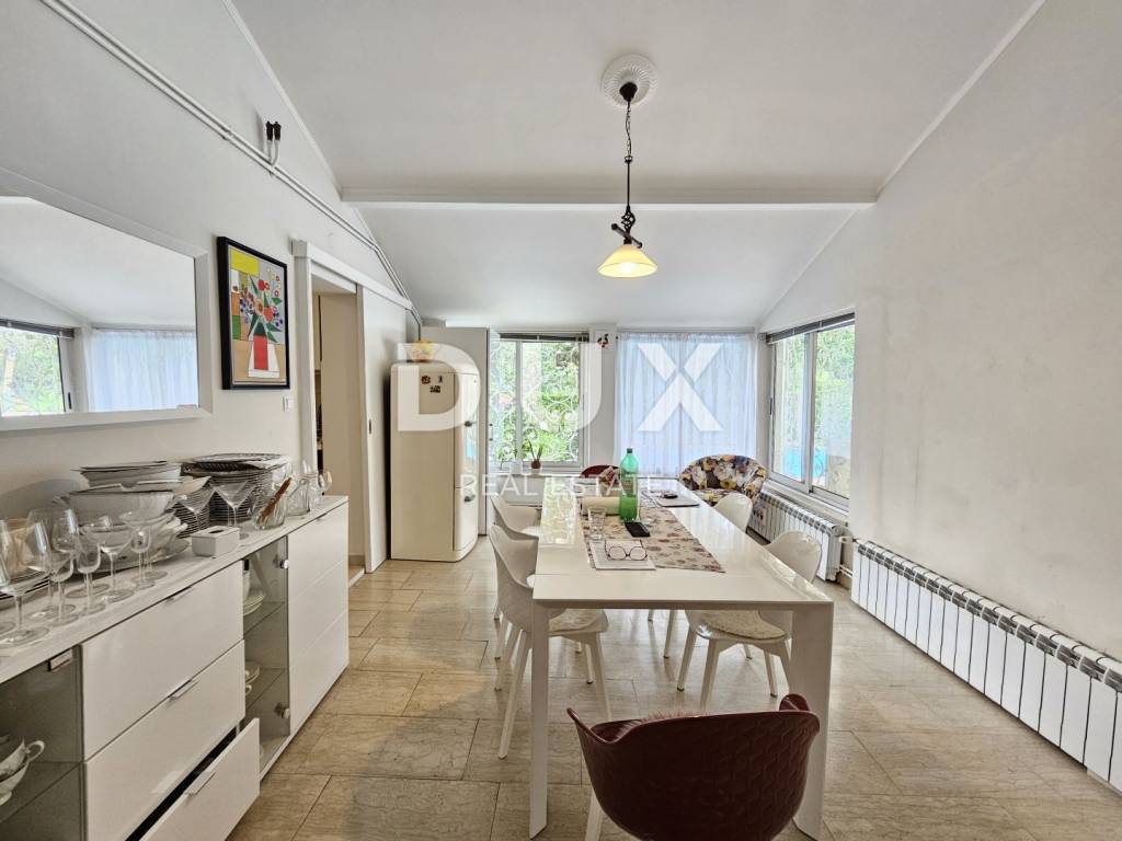 We proudly present this high-quality and perfectly maintained family apartment villa, located just 1 minute's walk from the beaches. It is a high-quality villa with a superb layout of the rooms. What certainly sets this villa apart from the others is the comfortable and well-kept garden, as well as the interesting layout of the rooms, which makes staying in the villa simple and functional. Each housing unit is separate, and each has its own private access. Take advantage of this opportunity and become the proud owner of this first-class villa, which will surely enchant you with its charm and exclusive location. DESCRIPTION OF THE VILLA: This beautiful villa consists of a total living area of 530m2. It is divided into a total of five residential units, four of which can be used for tourist rental purposes, while one residential unit on the ground floor is the owner's private residence. Each residential unit in the villa has a private terrace, balcony or loggia, depending on which floor of the villa they are located on. Three residential units are two-bedroom apartments consisting of two bedrooms, two bathrooms, a kitchen with a dining room, a living room and a terrace, while the remaining two residential units are one-bedroom apartments and a studio. Apartment 1: This is the owner's main apartment, located on the ground floor of the villa. Upon entering the apartment, we find ourselves in a lobby with a designated space for a wardrobe, which then turns into a hallway that connects all the rooms of the apartment. Here, you have the opportunity to spend your time in a modern and equipped kitchen with a dining table large enough for the whole family. From the same kitchen, there is also access to a landscaped garden with a swimming pool and a summer terrace ideal for relaxing during the warmer months of the year. Next to the kitchen is the owner's master bedroom. The living room is separate from the kitchen and dining room, and is a separate room, and what makes it special is its size. It is a large space, ideal for socializing and having fun with the whole family and friends. There is also an additional bedroom here, intended for guests, as well as a private garage used by the villa owners. In the already mentioned hallway of the apartment, there is a more spacious bathroom, as well as a guest toilet. APARTMENT 2: This is a one-bedroom apartment on the ground floor, which has its own private covered terrace with direct access to the landscaped environment and the pool. It consists of a living room, kitchen and dining room, and one bedroom and bathroom. APARTMENT 3: This is a two-story apartment that extends from the ground floor to the first floor of the villa. The specialty of this apartment is that it is completely separate from the other residential units, and has a larger and comfortable covered terrace on the ground floor with direct access to the landscaped garden. Upon entering the apartment, on the ground floor, there is a comfortable "open space" area in which there is a kitchen, dining room and a small living room, and here is the bathroom. Then, an internal staircase leads to the upper floor of the apartment, where two bedrooms are hidden. APARTMENT 4: It is a studio apartment, accessed through the main entrance to the villa, and is located on the mezzanine floor of the villa. It is a comfortable apartment that offers its guests everything they need, including a small kitchen with a dining room, a sleeping area, a comfortable bathroom and access to a private balcony with a view of the landscaped village. APARTMENT 5: It is an apartment on the 1st floor of the villa, consisting of a spacious and comfortable living room with access to the balcony, an equipped kitchen with a dining room, two bedrooms and a spacious bathroom, as well as a guest toilet. DESCRIPTION OF THE GARDEN: The villa is located on a plot of 763m2 in total, the villa plot is completely fenced and hidden from view. It offers its future owners the maximum level of privacy and peace, as well as the perfect place to stay in the open air. Within the plot there is a comfortable swimming pool with a heated water system and a waterfall that creates a special atmosphere when using the pool or just staying in the plot. Next to the pool is the aforementioned summer terrace, ideal for relaxing during the warmer months of the year. The entire garden is also decorated with Mediterranean plants, which are cared for by an automatic irrigation system. There is also enough space for parking 5 cars, which can be covered if the future owners need it. There is also one garage space. ADDITIONAL INFORMATION: What is interesting about this villa is the fact that it can be converted from a villa with five residential units into a regular villa with two additional residential units. This is possible because the owner's main residential unit (APARTMENT 1) has communication with APARTMENT 4 and APARTMENT 5. In the case of conversion, it could then be a villa divided into two floors, ground floor and first floor, and which has a total of 5 bedrooms, 2 of which are on the ground floor and 3 on the first floor, with a total of 3 bathrooms and one guest toilet. And which then still has 2 additional residential units with the possibility of renting. * The villa is equipped with 9 air conditioners, while the main living unit has gas central heating. * The villa is being sold fully furnished, without the owner's personal belongings. * High-quality PVC joinery has been installed on all windows and doors. * The swimming pool has a heated water system. * The owners regularly invest in the property. * The parking lot can be covered, all according to the needs of the future owners. * The villa has 5 parking spaces + 1 parking space in the garage. * The ownership of the villa is neat, without encumbrances, and has all the necessary documentation. The villa has excellent occupancy during the tourist season and a high rating from guests, which presents th