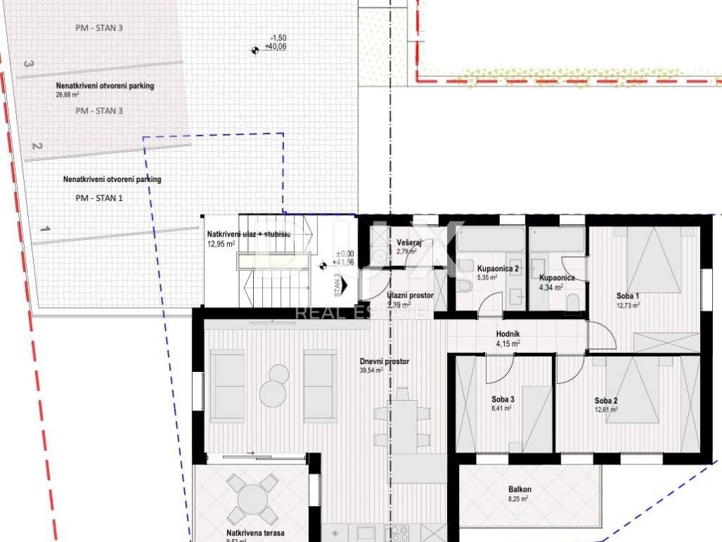 OPPORTUNITY ON CRES!! A modern new building with only 3 residential units is under construction. It is located on the edge of the green belt and offers a beautiful panoramic view of the sea and the Cres Bay. The new building will have garage spaces, which is a rarity in the area! The house extends over three floors: a basement with storage rooms, a ground floor consisting of two smaller apartments and a floor where a penthouse with a panoramic view is located. Apartment 3, located on the 1st floor, has its own entrance and a living area of 102.51 m2, and consists of an entrance hall, laundry room, three spacious bedrooms, two of which have access to a balcony with a sea view, two bathrooms, a hallway and an open space living area with a kitchen, dining room and living room. The living area leads to a covered terrace. The apartment has 2 parking spaces, and in the basement there is a large storage room of 16.09 m2. The planned completion of the works is in the spring of 2026. Be ready to welcome the summer in a modern new building in the town of Cres itself!