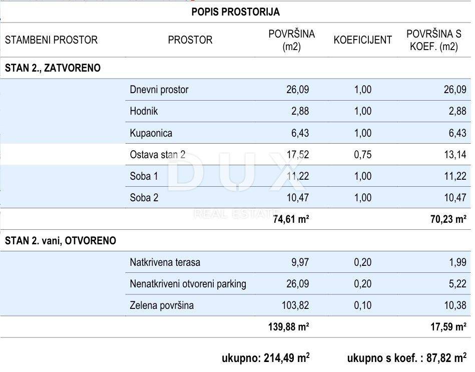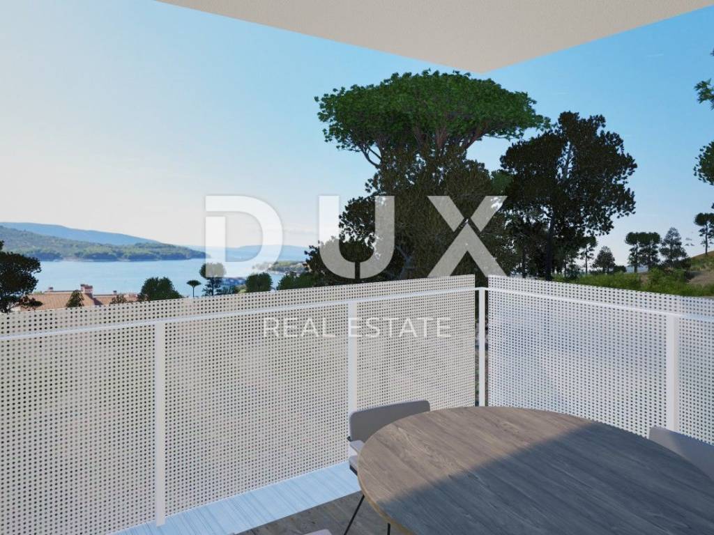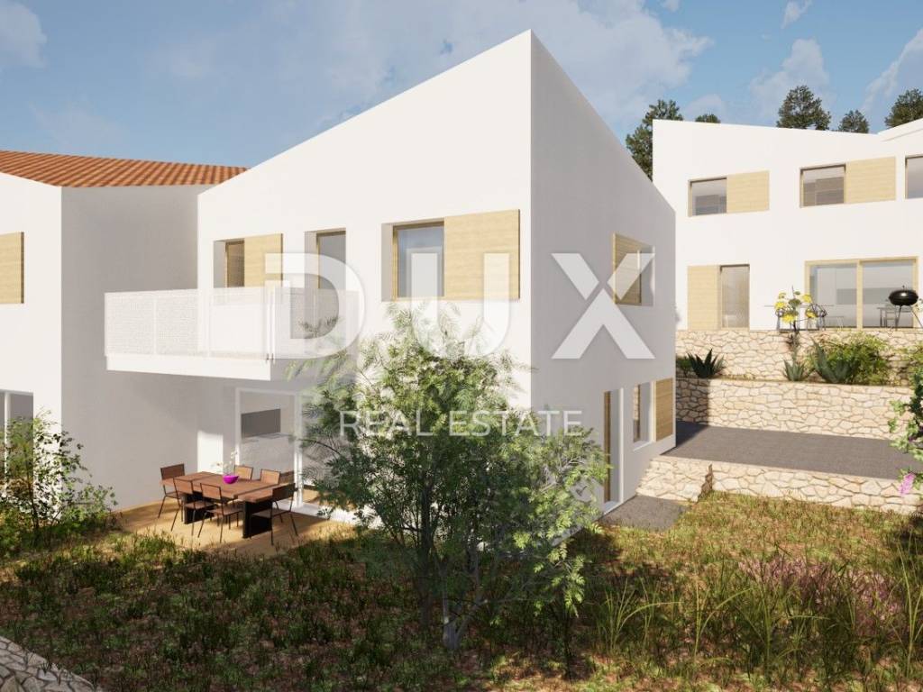 OPPORTUNITY ON CRES!! A modern new building with only 3 residential units is under construction. It is located on the edge of the green belt and offers a beautiful panoramic view of the sea and the Cres Bay. The new building will have garage spaces, which is a rarity in the area! The house extends over three floors: a basement with storage rooms, a ground floor consisting of two smaller apartments and a floor where a penthouse with panoramic views is located. Apartment 2 is located on the ground floor, has its own entrance and a living area of 57.09 m2, and consists of a hallway, two spacious bedrooms, a bathroom and an open space living area with a kitchen, dining room and living room. The living area leads to a covered terrace and a private garden of 103.82 m2. The apartment has 2 parking spaces, and in the basement there is a large storage room of 17.52 m2. The planned completion of the works is in the spring of 2026. Be ready to welcome the summer in a modern new building in the town of Cres itself!
