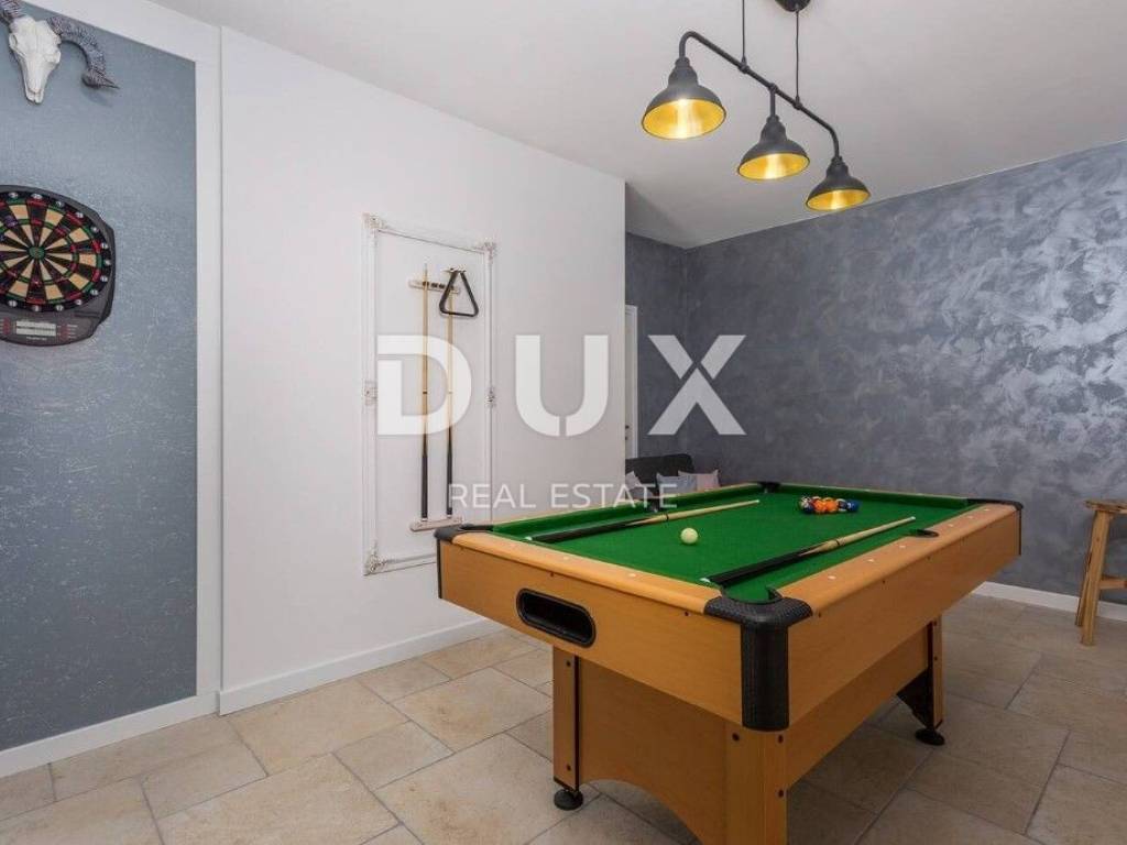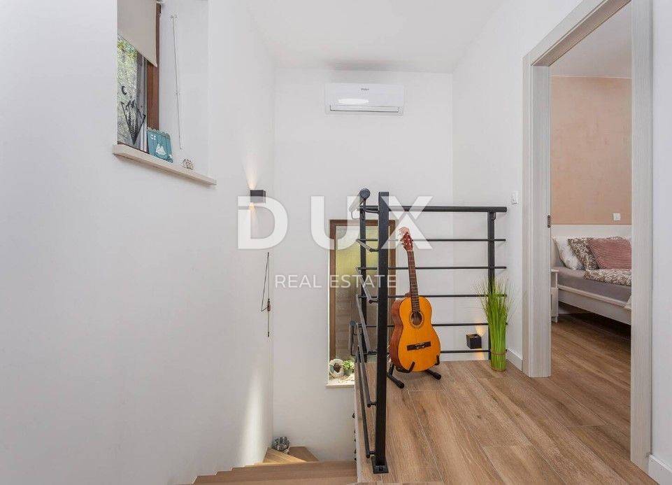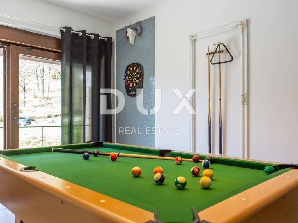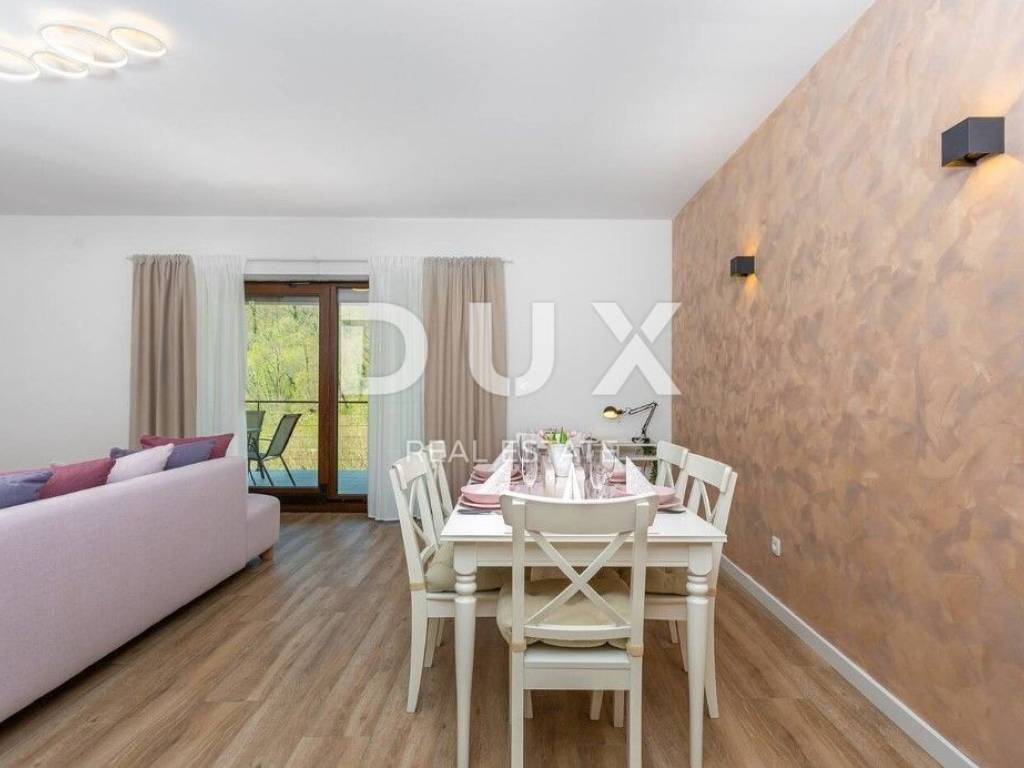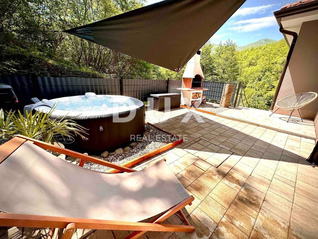 In the DUX offer, we highlight this beautiful stone house with a living area of 260 m, located in the picturesque medieval town of Veprinac a perfect choice for those looking for comfort, privacy and proximity to nature. Surrounded by untouched greenery and overlooking Mount Učka, this villa offers superb comfort in a combination of traditional architecture and modern design. The villa consists of a spacious two-story apartment with a private entrance. On the ground floor there is a luxuriously decorated living room with a modern open-space concept, a dining room and a fully equipped kitchen with top-of-the-line appliances. Large glass walls provide plenty of natural light and allow an unobstructed view of the outside space. The living room opens onto a covered terrace with elegant lounge furniture and a private jacuzzi an ideal place for morning coffee or relaxation under the starry sky. On the first floor there are spacious bedrooms with access to a large covered terrace that offers a spectacular view of the surrounding nature. The villa is equipped with underfloor heating and an air conditioning system for maximum comfort throughout the year. The beautifully landscaped courtyard is dominated by a large swimming pool with a spacious sunbathing area and deck chairs, while additional facilities such as a jacuzzi, barbecue, trampoline and table tennis make this property a place to relax and socialize. For safety and convenience, the villa has secured parking for several vehicles and video surveillance that can be controlled via smartphone. The villa is located in a prime location, just 10-15 minutes drive from the fairy-tale Opatija and the picturesque coastal town of Ičići. To arrange a visit to the property, call the agent with confidence - consultation in German is possible.