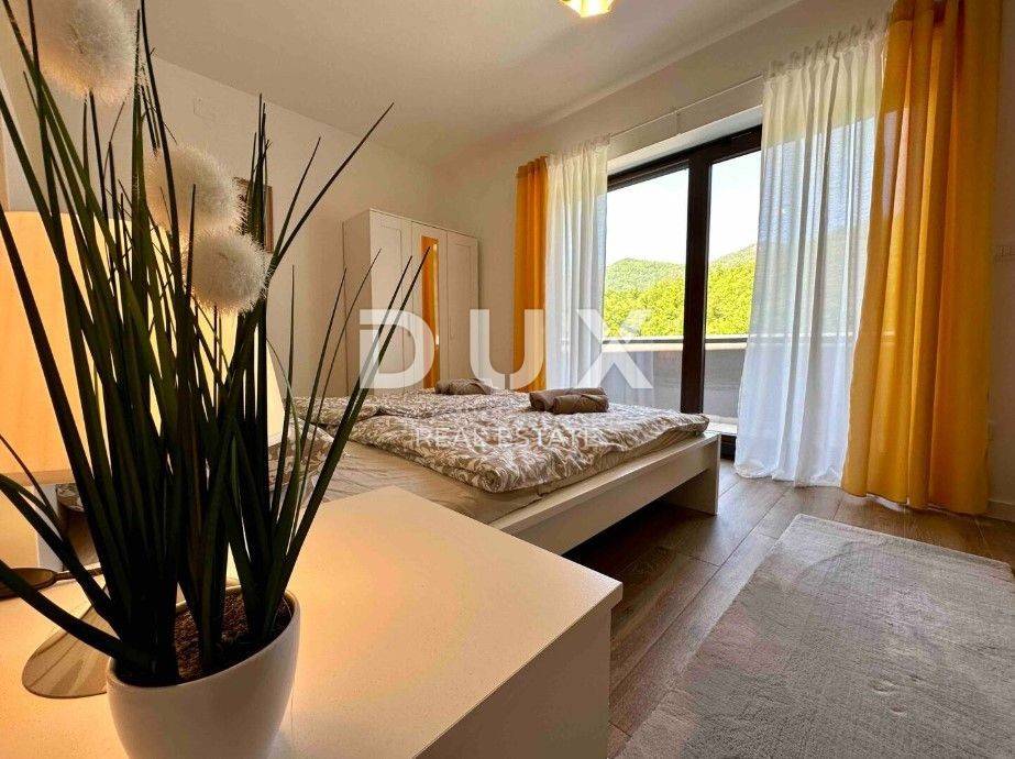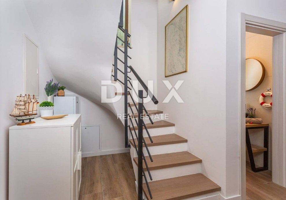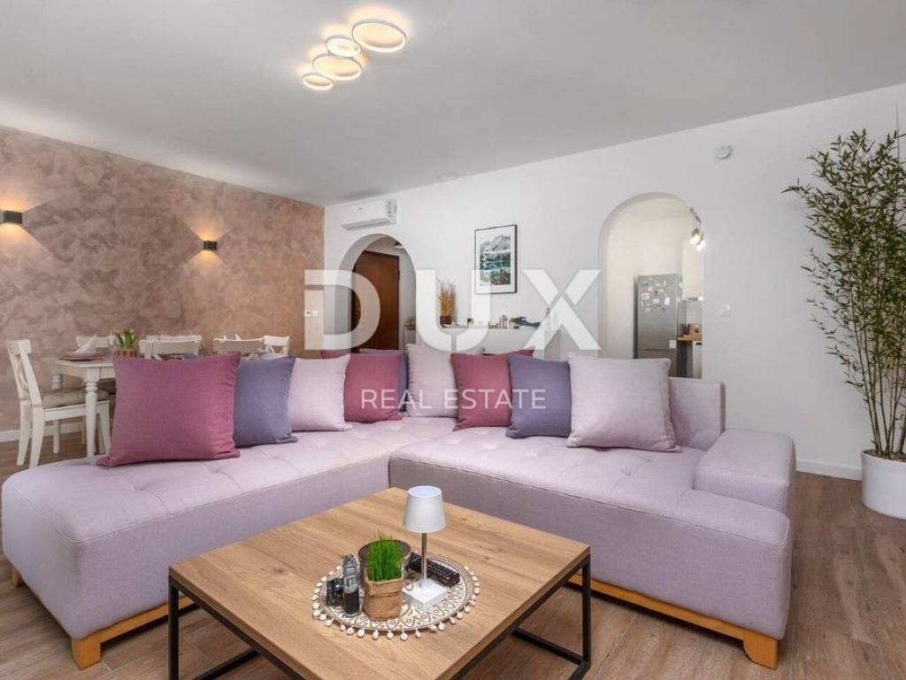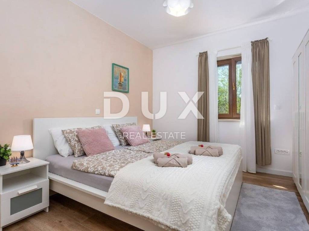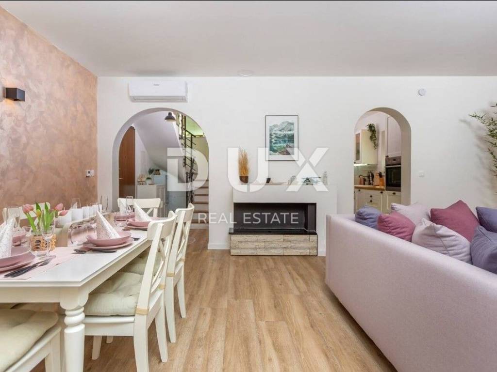 In the DUX offer, we highlight this beautiful stone house with a living area of 260 m, located in the picturesque medieval town of Veprinac a perfect choice for those looking for comfort, privacy and proximity to nature. Surrounded by untouched greenery and overlooking Mount Učka, this villa offers superb comfort in a combination of traditional architecture and modern design. The villa consists of a spacious two-story apartment with a private entrance. On the ground floor there is a luxuriously decorated living room with a modern open-space concept, a dining room and a fully equipped kitchen with top-of-the-line appliances. Large glass walls provide plenty of natural light and allow an unobstructed view of the outside space. The living room opens onto a covered terrace with elegant lounge furniture and a private jacuzzi an ideal place for morning coffee or relaxation under the starry sky. On the first floor there are spacious bedrooms with access to a large covered terrace that offers a spectacular view of the surrounding nature. The villa is equipped with underfloor heating and an air conditioning system for maximum comfort throughout the year. The beautifully landscaped courtyard is dominated by a large swimming pool with a spacious sunbathing area and deck chairs, while additional facilities such as a jacuzzi, barbecue, trampoline and table tennis make this property a place to relax and socialize. For safety and convenience, the villa has secured parking for several vehicles and video surveillance that can be controlled via smartphone. The villa is located in a prime location, just 10-15 minutes drive from the fairy-tale Opatija and the picturesque coastal town of Ičići. To arrange a visit to the property, call the agent with confidence - consultation in German is possible.