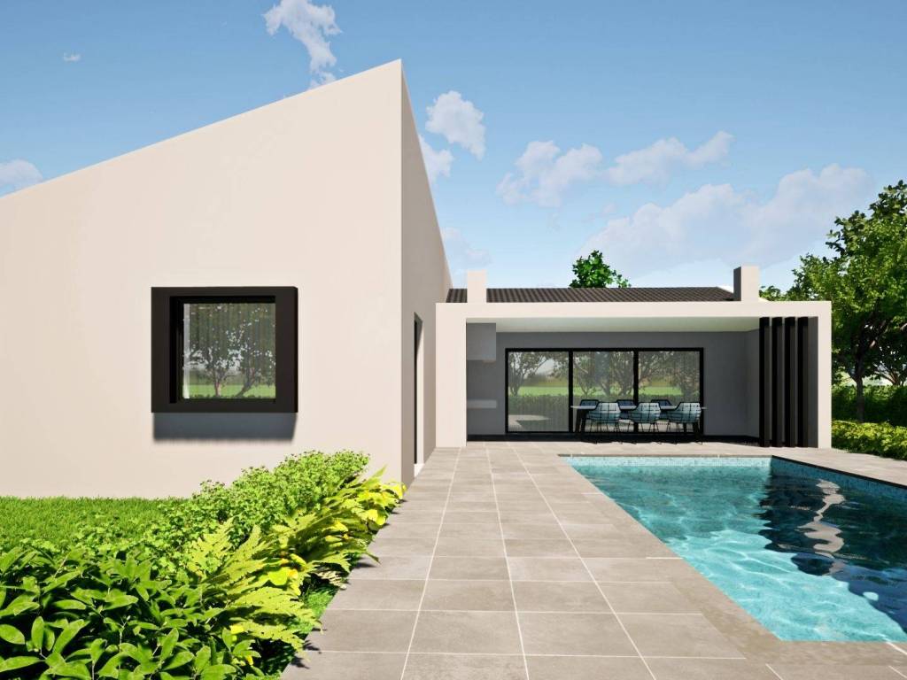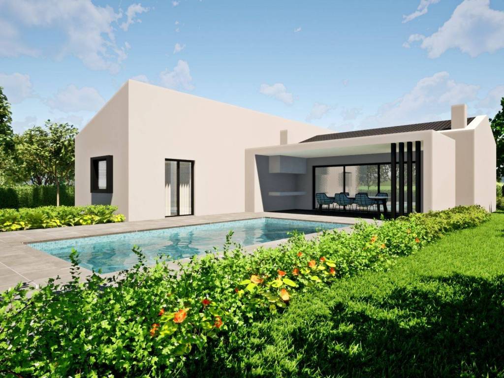 On the southeastern coast of Istria, at the place where the green hills meet the sea, where nature and heritage come together, there are two towns of similar size, but with different but mutually complementary characters - Labin and Rabac. The picturesque town of Labin rises on a hill 320 m high, only five kilometers from the white pebble beaches in Rabac. Intertwined with rich history and mining that marked this region, Labin, which was declared an independent republic for a short time, is today a fascinating city of contradictions; old and new, history and present, tourism and art. In the vicinity of the town of Labin, a house with a swimming pool is for sale. The property represents a fusion of modern architecture and natural environment, and the quality of construction guarantees long-term satisfaction and quality of housing. The house is designed as one residential unit that extends through one floor with a clearly defined floor plan that is divided into living and sleeping areas. The living area consists of a kitchen, dining room and living room with access to a covered terrace with a summer kitchen, while the night area consists of two bedrooms with private bathrooms. The floor plan is complemented by a hallway, a guest toilet and a storage room. The stated price refers to the high-quality construction of the residential building, which includes preparatory work, excavation and installation of foundations, construction of external and partition walls, roofing and sheet metal work and external carpentry, facade and installation work. Finishing work in the interior is not included in the price. The possibility of buying a property in the final stage of construction without furniture with a landscaped garden with a price correction. The excellent location and the spatial organization of the interior and exterior of this property provide an opportunity for a comfortable family life or an investment investment in a tourist rental business.