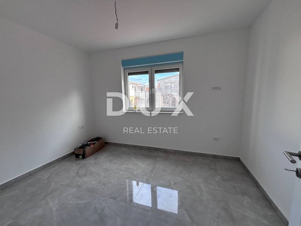 Apartment for sale in a new building on the island of Vir near Zadar. The apartment with a total area of 84.16 m2 is located on the ground floor of a smaller residential building with three residential units. It consists of two bedrooms, two bathrooms, a spacious living room, a kitchen and a dining room, a storage room and a covered terrace. The apartment also has a garden and two parking spaces in the courtyard of the building, so the total useful value of the area with the annexes is 98 m2. All rooms are air-conditioned, and there is underfloor heating in the living room and bathrooms. The facade is thermally insulated with 10 cm styrofoam, the joinery is PVC with three-layer glass and electric blinds, and ceramic tiles were used for floor coverings. The planned deadline for moving in is at the beginning of 2025. The location of the building, located only 250 m from the sea, is particularly favorable. The nearest beach is Mala Slatina with a landscaped promenade, and the center of Vir is a few minutes' drive away. The island of Vir is a well-known tourist destination and the most visited place in Zadar County. Beautiful beaches and untouched nature are just some of the benefits of this island, which is located near the urban center of the city of Zadar. Vir is 13 km from the historic town of Nina, which, in addition to rich cultural monuments, also has the longest sandy beach in Croatia, Kraljičina plaža. The urban center, the city of Zadar, is 30 km away, and the nearest airport is 38 km away.