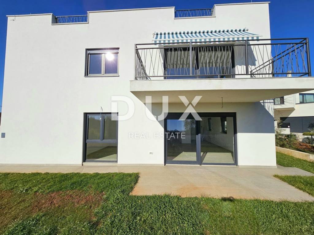 We are proud to present a spacious and comfortable apartment located on the first floor of a quality new building with only 4 residential units. This extremely high-quality apartment covers a total of 94.70 m2 of living space, providing the future owners with an extraordinary space for a comfortable and quality life throughout the year. DESCRIPTION OF THE APARTMENT; Upon entering the apartment, you are greeted by a smaller entrance hall designed for built-in wardrobes, which further leads us to a spacious open space rich in natural daylight, thanks to the large glass walls and smart orientation of the apartment. The same space is intended to accommodate a larger living room, ideal for entertaining friends and family, and a larger dining room, with a slightly separate area for the kitchen. From the same space, there is an exit to the outdoor covered balcony, which offers a view of the rest of the settlement and lush natural greenery. Further, through a smaller corridor, which leads you from the living room to the private part of the apartment, where there are 3 comfortable bedrooms and a bathroom. In addition to the living area of the apartment, there is also a guest bathroom, which provides greater practicality and comfort for everyday life. An additional convenience of this apartment is its private storage room, which is located in a separate separate room next to the entrance to the apartment, which provides additional space for storing things. A special detail of the apartment is its imposing roof terrace of a total of 86 m2, on which there is a preparation for a jacuzzi and a summer kitchen. Which makes it an ideal private part of the apartment where you can rest and have fun with your family and friends. Likewise, next to the exit to the summer terrace, there is an additional space that belongs to the apartment, and it is a space that can simply be used as additional storage. ADDITIONAL INFORMATION; * The apartment is fully air-conditioned, has underfloor heating in all rooms (except the bedrooms), and also has a chimney with the option of installing a pellet or wood stove. * The ownership of the apartment is clear, 1/1, without financial burden. The building has all the necessary documentation. * The apartment also has a parking space in the garden of the building. * The residential building in which the apartment is located consists of only 4 apartments, which ensures peace and privacy. LOCATION DESCRIPTION; The property is located in a quiet street, ideal for those who value privacy and silence, and since it is a smaller settlement near the well-known and unavoidable Poreč, it is also ensured without the noise of tourists and a large number of people. All essential facilities needed for everyday life, such as shops, restaurants and schools, are located within a radius of only 2 kilometers from the apartment, while the sea and the first organized beaches are only 1000 meters from the apartment. We are sure that here you will have the opportunity to create many unforgettable moments with your family and friends, as well as enjoy the comfort created by the proximity of the city. Do not miss the opportunity to become the owner of this extraordinary opportunity. With its airy rooms, practicality and proximity to everything you need, this property provides everything necessary for a real vacation and a quality stay. For any additional questions, necessary information or wish to organize an apartment viewing appointment, please feel free to contact us.