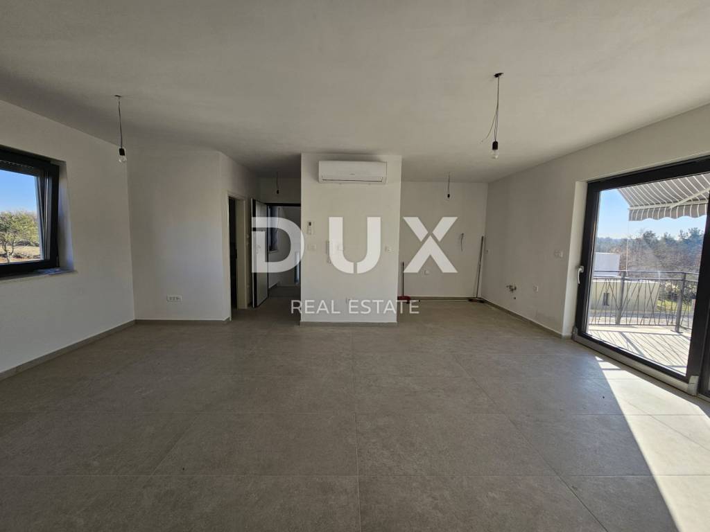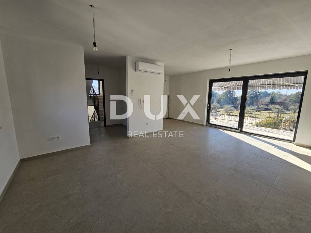 We are proud to present a spacious and comfortable apartment located on the first floor of a quality new building with only 4 residential units. This extremely high-quality apartment covers a total of 94.70 m2 of living space, providing the future owners with an extraordinary space for a comfortable and quality life throughout the year. DESCRIPTION OF THE APARTMENT; Upon entering the apartment, you are greeted by a smaller entrance hall designed for built-in wardrobes, which further leads us to a spacious open space rich in natural daylight, thanks to the large glass walls and smart orientation of the apartment. The same space is intended to accommodate a larger living room, ideal for entertaining friends and family, and a larger dining room, with a slightly separate area for the kitchen. From the same space, there is an exit to the outdoor covered balcony, which offers a view of the rest of the settlement and lush natural greenery. Further, through a smaller corridor, which leads you from the living room to the private part of the apartment, where there are 3 comfortable bedrooms and a bathroom. In addition to the living area of the apartment, there is also a guest bathroom, which provides greater practicality and comfort for everyday life. An additional convenience of this apartment is its private storage room, which is located in a separate separate room next to the entrance to the apartment, which provides additional space for storing things. A special detail of the apartment is its imposing roof terrace of a total of 86 m2, on which there is a preparation for a jacuzzi and a summer kitchen. Which makes it an ideal private part of the apartment where you can relax and have fun with your family and friends. Likewise, next to the exit to the summer terrace, there is an additional space that belongs to the apartment, and it is a space that can simply be used as additional storage. ADDITIONAL INFORMATION; * The apartment is fully air-conditioned, has underfloor heating in all rooms (except the bedrooms), and also has a chimney with the option of installing a pellet or wood stove. * The ownership of the apartment is clear, 1/1, without financial burden. The building has all the necessary documentation. * The apartment also has a parking space in the garden of the building. * The residential building in which the apartment is located consists of only 4 apartments, which ensures peace and privacy. LOCATION DESCRIPTION; The property is located in a quiet street, ideal for those who value privacy and silence, and since it is a smaller settlement near the well-known and unavoidable Poreč, it is also ensured without the noise of tourists and a large number of people. All essential facilities needed for everyday life, such as shops, restaurants and schools, are located within a radius of only 2 kilometers from the apartment, while the sea and the first organized beaches are only 1000 meters from the apartment. We are sure that here you will have the opportunity to create many unforgettable moments with your family and friends, as well as enjoy the comfort created by the proximity of the city. Do not miss the opportunity to become the owner of this extraordinary opportunity. With its airy rooms, practicality and proximity to everything you need, this property provides everything necessary for a real vacation and a quality stay. For any additional questions, necessary information or wish to organize an apartment viewing appointment, please feel free to contact us.