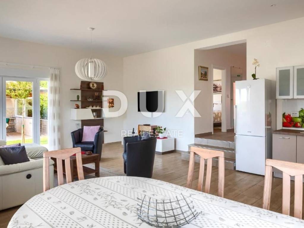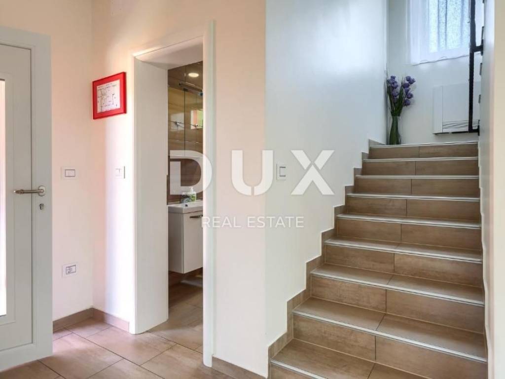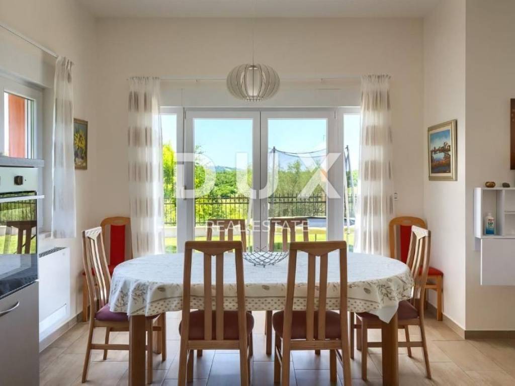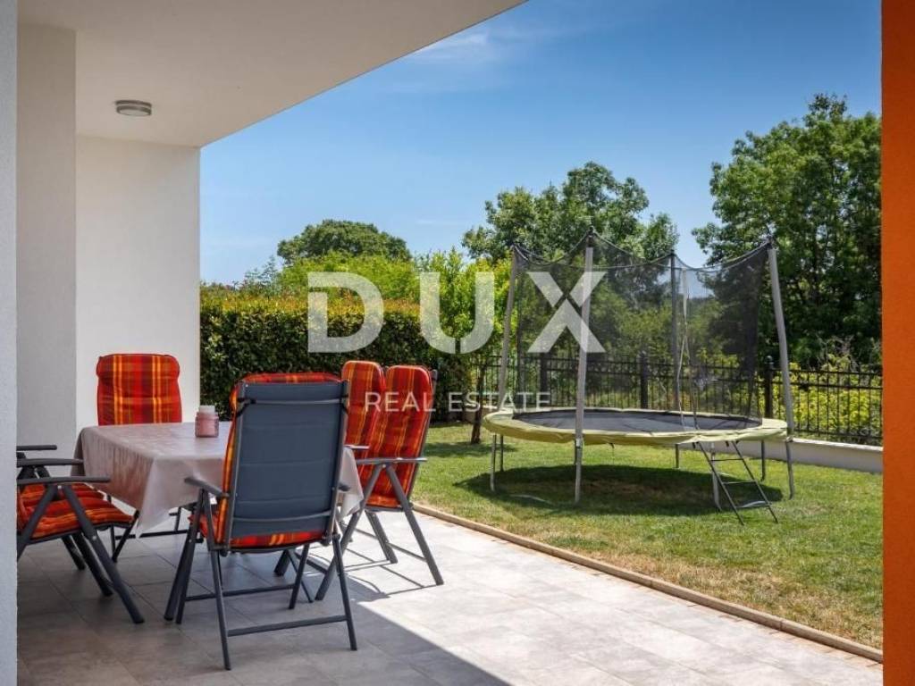 We are proud to present this high-quality family villa located in a small and quiet settlement just a few short minutes' drive from the Slovenian border and the center of Buje. It is a real estate worthy of your attention, we are sure that you will not be indifferent to the breathtaking view from the villa's garden. DESCRIPTION OF REAL ESTATE; The family villa consists of 186m2 of living space, which is divided into two floors. Thus, there is a smaller entrance on the ground floor of the villa, which separates the private space from the space for entertainment and socializing. In the private part of the ground floor there is a guest bathroom, a larger bedroom, a storage room under the stairs and a technical room. Further on, the corridor leads us to a larger open space where there is a modern and fully equipped kitchen, a comfortable dining room and a spacious living room. This space is decorated with larger glass walls, through which the view stretches towards the garden, the pool and the hills in the distance. Through the same glass walls, you can access the outdoor covered terrace next to the pool and the yard. The internal staircase leads to the upper floor, where there are 3 additional bedrooms, each of which has access to a larger covered terrace, which offers a unique and unobstructed view of nature, arable fields, olive fields and Buje. Each of the bedrooms has its own bathroom. The yard of the villa is completely fenced and decorated in a Mediterranean style, while the central part of the yard is occupied by a spacious 26m2 swimming pool with a sunbathing area. Next to the swimming pool there is also a covered summer stone kitchen with a grill, ideal for entertaining friends and family during the summer months. In addition to the summer kitchen, there is also a toilet that is used during the stay in the yard, and there is also a technical room for the pool. The yard is comfortable and contains enough greenery, which is taken care of by an automatic irrigation system, in addition, the yard is private and hidden from all view. You don't have to worry about your tin pets, because there is enough parking space for 5 cars in the garden of the villa, 3 of which are covered. ADDITIONAL INFORMATION; * The big advantage of this villa is that it is the last one in the construction zone in front of the agricultural land full of olive trees, which creates a special atmosphere and a maximum sense of privacy. * The villa is sold furnished as shown in the pictures, which means that the future owners only need their own travel luggage. * The villa is equipped with high-quality fan coils in every room, through which heating and cooling can be controlled using a smartphone. * The villa also has a special water filter, which makes the water even softer and of better quality, and prevents the formation of scale problems. In short, it is a high-quality villa worthy of your attention, with large interior rooms, cleverly used space, a wonderful view and maximum quality work, these villas represent an ideal opportunity for a real warm and safe family home or as an option for private investment for tourist purposes. For any additional questions, necessary information or wish to organize a tour of the villa, feel free to contact us!