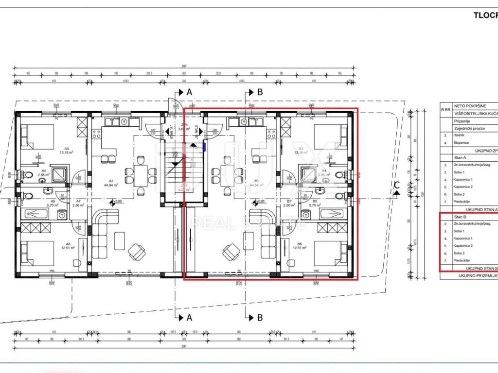 Today, Rovinj is one of the most developed tourist destinations in Croatia. It is also known as one of the most picturesque and romantic cities in the Mediterranean, which has been attracting a large number of tourists for decades, and most of them return year after year. The pleasant Mediterranean climate, carefully designed green areas, the cleanliness and orderliness of the streets, the friendliness of the local population and numerous events are characteristic of this historic town. At walking distance from the most beautiful beach in Rovinj, the construction of a smaller residential building has begun. Apartment B on the ground floor is for sale in that building. The apartment has a net area of 81.66 m2 (100 m2 gross) and consists of a spacious open-space area that unites the kitchen, dining room and living room. Downstairs there are two bedrooms, one of which is the master bedroom with its own bathroom, while the additional bathroom is located in the hall. The apartment has a common garden, which is ideal for spending time outdoors. The apartment also has its own parking space and a space in the basement of the building that can be converted into a laundry room. Construction started recently, and completion is expected at the beginning of 2026. The apartment is sold on a turnkey basis, without furniture. All amenities necessary for life are within walking distance, so this is an ideal apartment for family life.