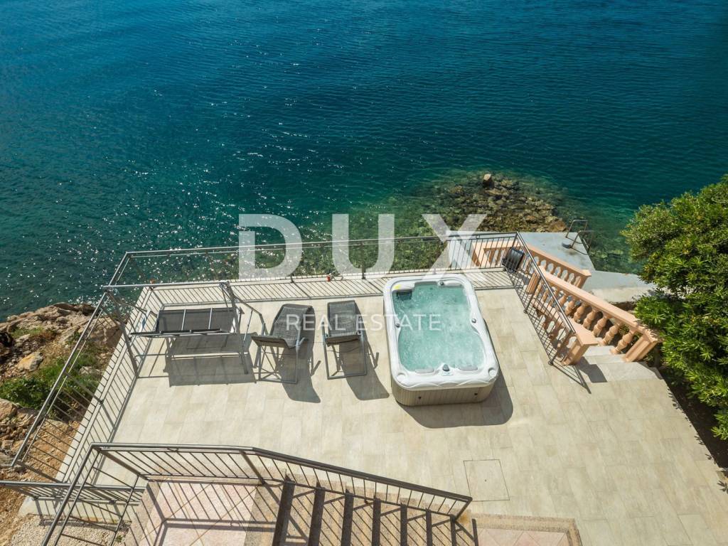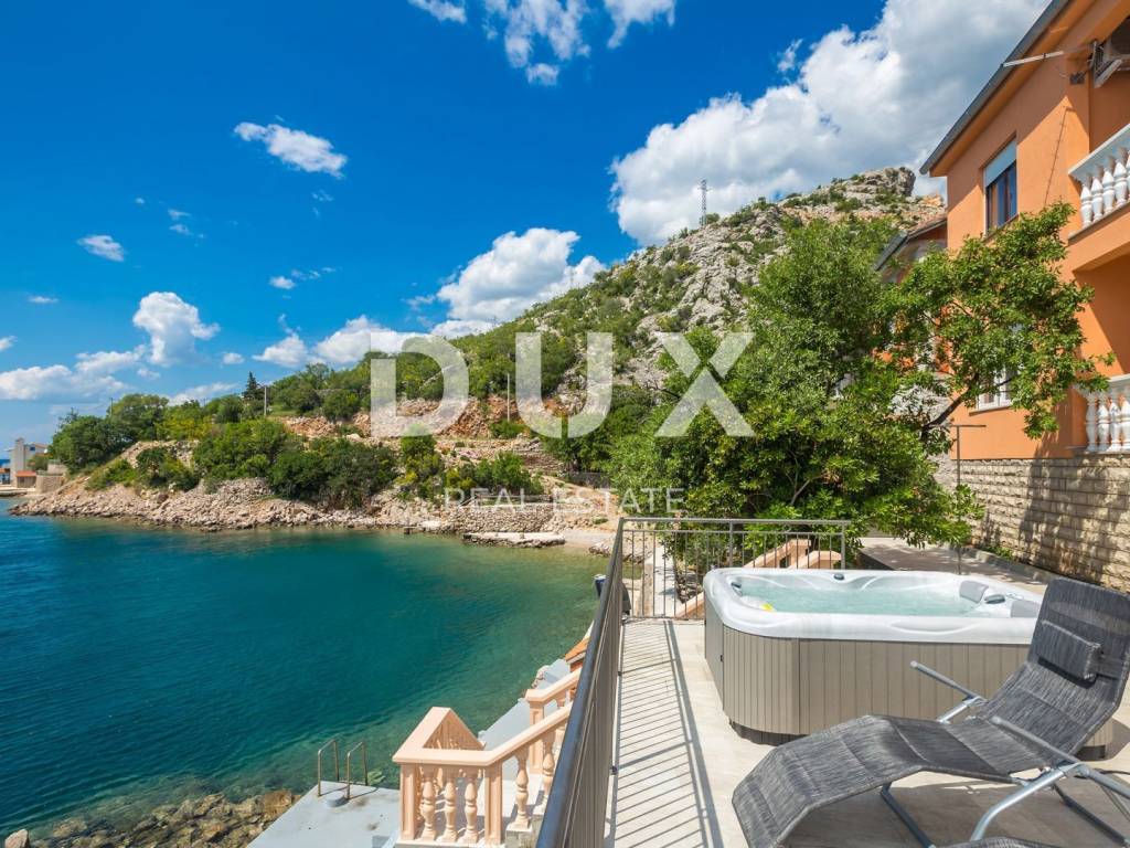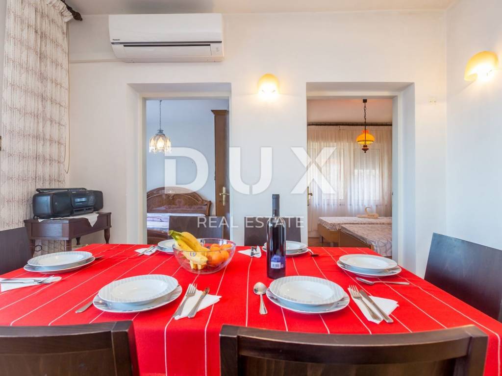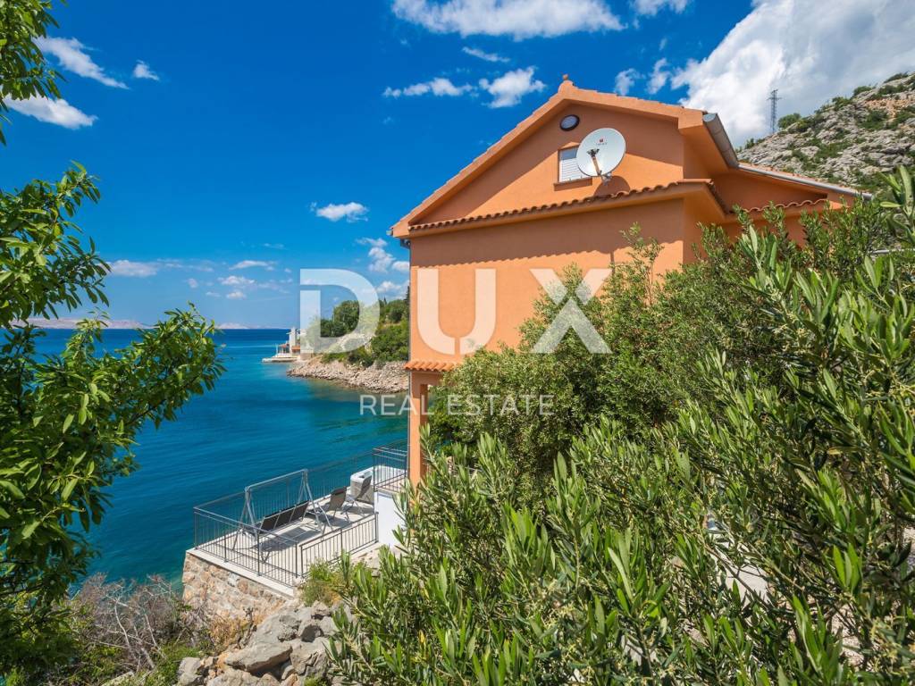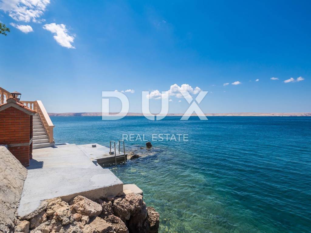 This beautiful house is located at the foot of Velebit, right next to the sea. The house has two residential units, each on its own floor. On the ground floor there are two bedrooms, a storage room, a bathroom, a kitchen with a dining room and a living room that leads to a large terrace with a panoramic view of the sea. On the first floor, there is a second apartment with three bedrooms, a bathroom, a kitchen and a living room with access to a balcony with a wonderful view of the sea and the islands. The surroundings of the building are nicely decorated, on it there is another terrace where there is a jacuzzi, from the terrace there is a path down to the sea and the landscaped beach where there is a small children's pool and barbecue. One air conditioner takes care of heating on the ground floor, while on the first floor there are two air conditioners, a fireplace and an electric heating stove. Electricity and water installations were changed in 2022. There is room for a smaller pool in the garden. This is an ideal facility for people seeking peace and solitude. In addition to the house, an old house of 30 m2 on 200 m2 is also for sale, also 1st row to the sea.