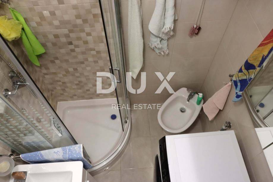The apartment is located on the 6th floor in a maintained residential building built in 1978. The building has an elevator. The apartment consists of a bedroom (French window to the east), a kitchen with a French window on the north side, a hallway with a built-in wardrobe, a living room with balcony doors to a glazed rectangular terrace on the east side. The bathroom has been completely renovated (without windows, with ventilation). The apartment has a total of 52.5 m2 of living space. Heating is by air conditioning and electric radiators, the apartment has city gas. The apartment has new PVC joinery, security doors, the floors are a combination of parquet (bedroom), tiles in the kitchen and hallway, and laminate in the living room. The apartment was partially renovated a few years ago, it is dry, very sunny and warm, ready to move in with all furniture and white goods (new dishwasher in the kitchen, new washing machine in the bathroom - other white goods are in good condition). As part of the ownership of the apartment, there is also a basement (approx. 2 m2) with a padlock. Free public parking in the vicinity of the building used by the tenants of the building, children's playgrounds, very rich greenery, close proximity to a school, kindergarten, several shops, kiosk, pharmacy, restaurants, church. Distance approx. 2-3 km to the sea: Zlatne stijene, Verudela, Lungo mare. There is a bus stop for city transport nearby (every 15-20 minutes), close to the center (max 15 minutes on foot).