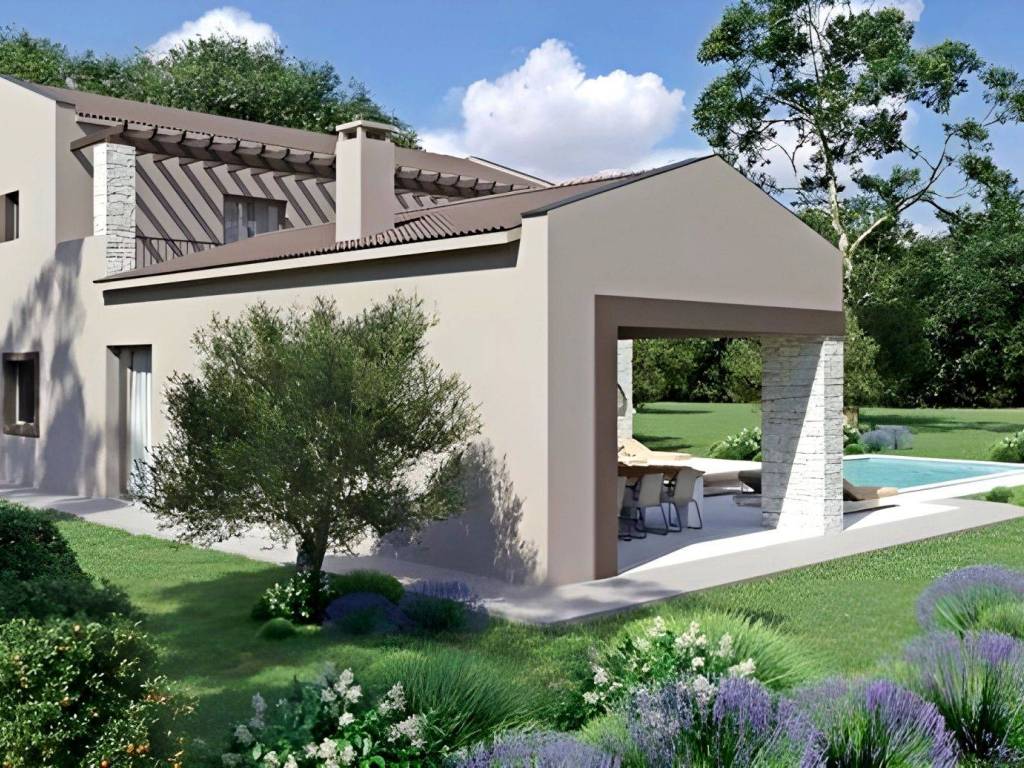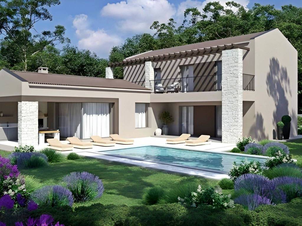 On the southeast coast of Istria, where green hills meet the sea, where nature and heritage come together, there are two small towns with different but mutually complementary characters - Labin and Rabac. The picturesque town of Labin rises on a hill 320 meters high, only four kilometers from the white pebble beaches in Rabac. Intertwined with rich history and mining that marked this region, Labin, which was declared an independent republic for a short time, is today a fascinating city of contradictions; old and new, history and present, tourism and art. Not far from the town of Labin, there is an immaculate house for sale with a swimming pool on the edge of the village. The micro-location offers an authentic experience of a small Istrian town, intimacy and relief from all the hectic effort and noise, and at the same time close enough to the sea and the center of the town of Labin with a range of amenities. In addition to the convenient location, the property is also distinguished by the quality of the construction, which guarantees long-term satisfaction and quality of housing. The house of timeless architecture blends in shape and color with the village and the landscape, and was conceived as a tastefully decorated and well-equipped residential unit that extends over two floors. The living area is clearly defined, maximally used and full of natural light. The ground floor consists of an open concept space that unites the kitchen, dining room and living room with access to a covered terrace containing a summer kitchen, bedrooms with their own bathroom and wardrobe, guest toilet, laundry room and technical room. The first floor consists of three bedrooms with private bathrooms and a terrace covered with a pergola. The yard is landscaped and horticulturally landscaped and fenced and contains a swimming pool with a sunbathing area. The location, structure and comfort make this property surrounded by nature an ideal opportunity for a peaceful family life, but also a successful tourist rental.