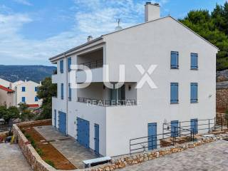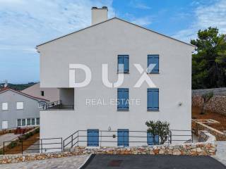 Only 300 meters from the sea, there is a building, located in one of the best locations in the city and offering a stunning view of the sea and the city center. New building built with top quality materials and equipped with modern equipment. Contemporary style, Mediterranean charm, white facade with blue windows. A property that will enchant you! We present a beautiful two-story apartment that extends through the first floor and occupies the entire surface of the second floor! In total, there are 4 bedrooms, 3 bathrooms, two living rooms, two covered terraces... The view of the sea is open. Two parking spaces belong to the apartment. THE PRICE INCLUDES the kitchen - at YOUR CHOICE, in agreement with the investor! Excellent and rare new construction in the town of Cres itself. Don't miss the phenomenal view in the best location in town!