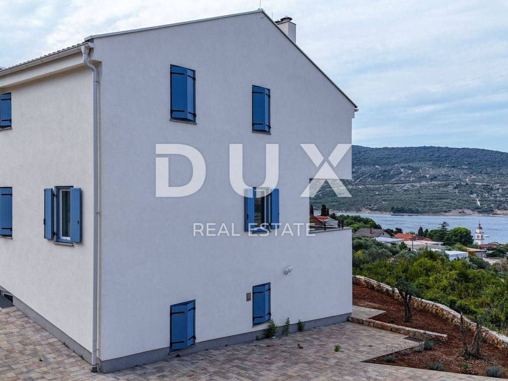 Only 300 meters from the sea, there is a building, located in one of the best locations in the city and offering a stunning view of the sea and the city center. New building built with top quality materials and equipped with modern equipment. Contemporary style, Mediterranean charm, white facade with blue windows. A property that will enchant you! In the building, an apartment is available on the second floor, 120 m2, consisting of three bedrooms, a large living room connected to the kitchen and dining room, a pantry and 2 bathrooms. It also has a storage room on the ground floor of the building, approx. 10 m2. With a functional layout and open spaces, it allows you to have an ideal stay in a property near the beaches and the center. The living room leads to the loggia, which offers an incredible view of the sea. Two parking spaces belong to the apartment. THE PRICE INCLUDES the kitchen - at YOUR CHOICE, in agreement with the investor! Excellent and rare new construction in the city of Cres itself. Don't miss the phenomenal view from the living room!
