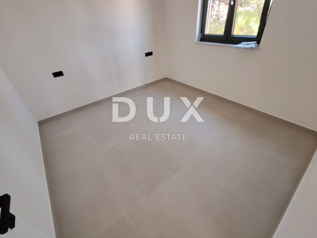 A luxurious apartment on the first floor is for sale in one of the most sought-after locations on Vir, just 160 meters from the beautiful Jadro beach. In a quiet cul-de-sac, located in the very heart of Vir, this new building offers an extraordinary opportunity for those looking for the perfect combination of comfort and luxury. The apartment of 82.33 m2 has been carefully designed to provide maximum comfort and functionality. It consists of a spacious hallway, two elegant bedrooms, one of which has a private bathroom, additional bathrooms, a modern kitchen connected to the dining room and living room, and a spacious terrace ideal for relaxation. Special attention is paid to the quality of construction and finishing details. There are premium anthracite plastic carpentry with three-layer glass, electric blinds, mosquito nets, as well as premium aluminum entrance doors to the building. The facade is insulated with 10 cm Styrofoam, while the terraces are covered with elegant travertine stone. A black fence made of double-layer tempered glass, handmade interior joinery, high-quality ceramics with dimensions of 90 90 cm throughout the apartment, and luxurious bathroom elements of the brands Geberit, Grohe and Aquaestil, ensure a high standard of living. Additional comfort includes electric floor heating in the bathrooms, air conditioners in the bedrooms and living room, anti-burglary and fire-resistant entrance doors to the apartments, as well as a video intercom. Knauf ceilings with built-in LED lighting, both working and ambient, further emphasize the sophistication of the space, while LED strips on the terraces create a pleasant atmosphere for evening get-togethers. The apartment also has 2 parking spaces. This unique opportunity is exempt from real estate tax, and the completion of the construction of buildings A and B is planned for the beginning of 2025, while the completion of building C is expected in the fall of the same year. Don't miss the opportunity! Contact us and arrange a viewing of this extraordinary apartment that can become your new home or an ideal vacation spot.