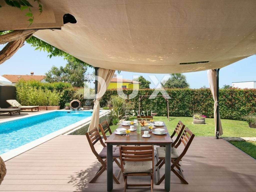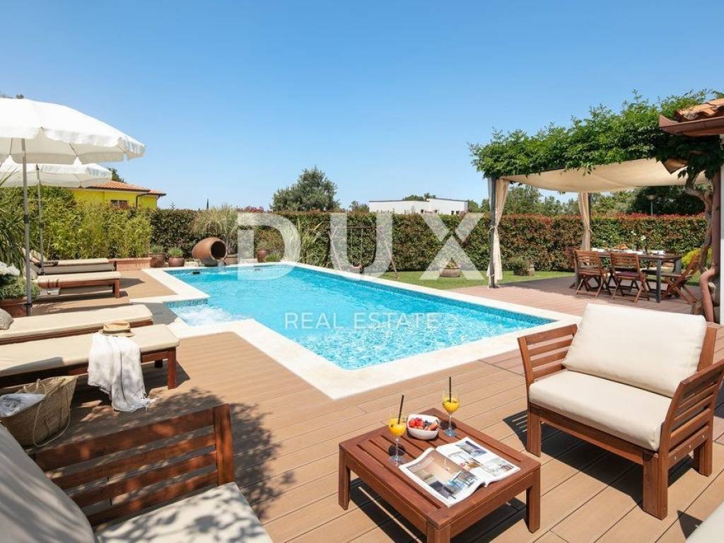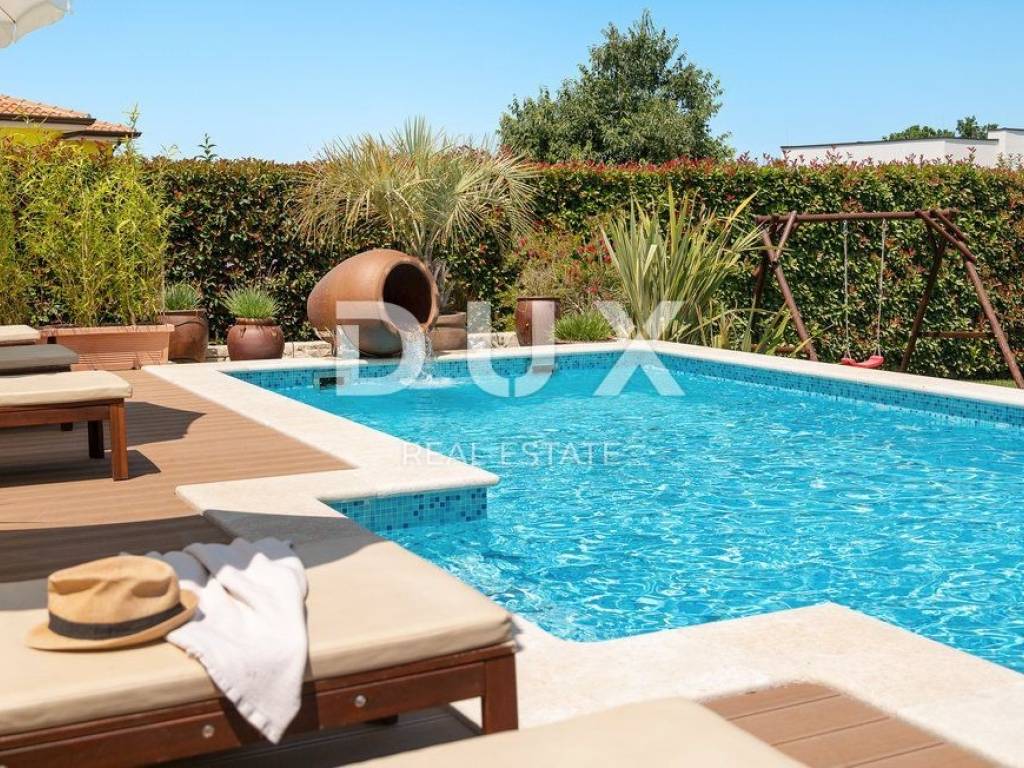 We are proud to present you this really high-quality and warm villa, located in an ideal and quiet location, just a few short minutes' drive from the beautiful beaches and the center of the unmissable city of Poreč. It is a tall one-story house, built in the style of Italian and Spanish houses, which exudes the warmth of a real family home. From the beginning, the house was built as a private family home, and it served that purpose until recently, when the owners made the decision to try their hand at tourist rentals, and the results that began to follow, as well as the large number of satisfied guests, simply surprised the owners. The owner's goal during the construction of his dream family home was to use all the details of Italian and Spanish similar properties, but still leave his mark in the design of the rooms and the exterior. Thus, this property welcomes its future owners in an interestingly designed space that is maximally used in a way to ensure a high level of comfort, privacy of each room and excellent communication between the interior of the villa and the beautifully landscaped yard. Come with us to this excellent and rare opportunity, and let this beautiful villa surprise you as it did us. PROPERTY DESCRIPTION: It is a comfortable high-rise house with 330 m2 of living space, which is located on a private and maximally landscaped Mediterranean garden with a total area of 776 m2. Each room in the villa is organized in such a way as to offer maximum comfort and a sense of peace and privacy. From a quiet street without a lot of traffic, the access to the garage located in the basement of the villa, with two parking spaces, first extends. There are three additional rooms next to the garage, one is used as a boiler room or technical room, the other room is used as a larger storage room, and there is also a laundry room. Currently, the owners have used the space as a playground, considering that there is enough space around the villa for free parking on the public surface. Then, from the garage, an internal staircase leads to the high ground floor of the villa. The ground floor of the villa is cleverly designed so that it is divided into two parts with the help of a corridor or an entrance hall, a sleeping part and a part intended for daily life and entertainment. The living area of the villa is slightly divided into a separate private kitchen, then a slightly separate dining room sufficient for the whole family, and a separate comfortable living room from which there is a wonderful view and access to the covered terrace and landscaped area with a swimming pool. There is also a guest toilet in the mentioned entrance hall or vestibule. The sleeping part of the villa consists of an additional larger bathroom, then three comfortable bedrooms. Of which, two bedrooms have their own private terrace with communication to the courtyard, and one of these bedrooms is the master bedroom with its own larger bathroom. On the floor above the living room and dining room, there is a gallery, where there is an additional bedroom whose special detail is the "inner balcony" that communicates with the living room. In addition to the bedroom, there is an additional smaller storage room on the gallery. It is a property that breathes energy from another time, which means that it has a special character and gives the real feeling of a former luxurious family home. During your stay in the villa, you can experience a combination of Italian and Spanish design that is almost timeless. This property will be ideal for all those who like a more rustic style of decoration and construction. GROUND DESCRIPTION: The villa is located on a comfortable plot of 776 m2, which is completely fenced and safe from view. After deducting the space occupied by the villa and the swimming pool, what remains at your disposal is a comfortable and maximally private 500m2 beautifully decorated courtyard in the Mediterranean style. The villa's grounds are fully landscaped with numerous Mediterranean plants that create a special atmosphere during your stay in the open air. The owners take great care of the garden, so a new irrigation system was recently installed that takes care of their greenery and plants. You don't have to worry about your youngest family members and pets, because there is enough green space in the garden, safe for carefree play and fun. The central part of the garden is occupied by a high-quality swimming pool with a mosaic, which also has a water heating system. So that you can relax as much as possible in the pool after an active day, there is also a part of the pool with a hydromassage function. Next to the pool, there is a larger beach with sunbeds and a sunbed, ideal for relaxing with a glass of your own wine. A special detail of the pool is a smaller waterfall through a larger amphora, which creates a special atmosphere at night with lighting. You don't have to worry about your tin pets because the villa has a garage with the possibility of parking 2 cars, as well as two additional parking spaces in the open air in front of the garage. ADDITIONAL INFORMATION: * The villa is sold furnished with all high-quality, ready-made, timeless wooden furniture, made in Italy. * External carpentry is a combination of pine and oak. * The kitchen is made to measure from oak, and is equipped with modern household appliances in a rustic style. * Heating and cooling of the space is provided by air conditioners installed in every room of the villa, as well as central heating installed in all rooms, even in the garage. * There is also a hidden chimney in the living room, which can be used to set up a pellet or wood stove, or to build your own fireplace. The chimney is located on a smaller wall that divides the space between the living room and the dining room. * The property is tidy. 1/1, the property has all the necessary documentation. LOCATION DESCRIPTION: This villa is located in an ideal location for a safe and peaceful 