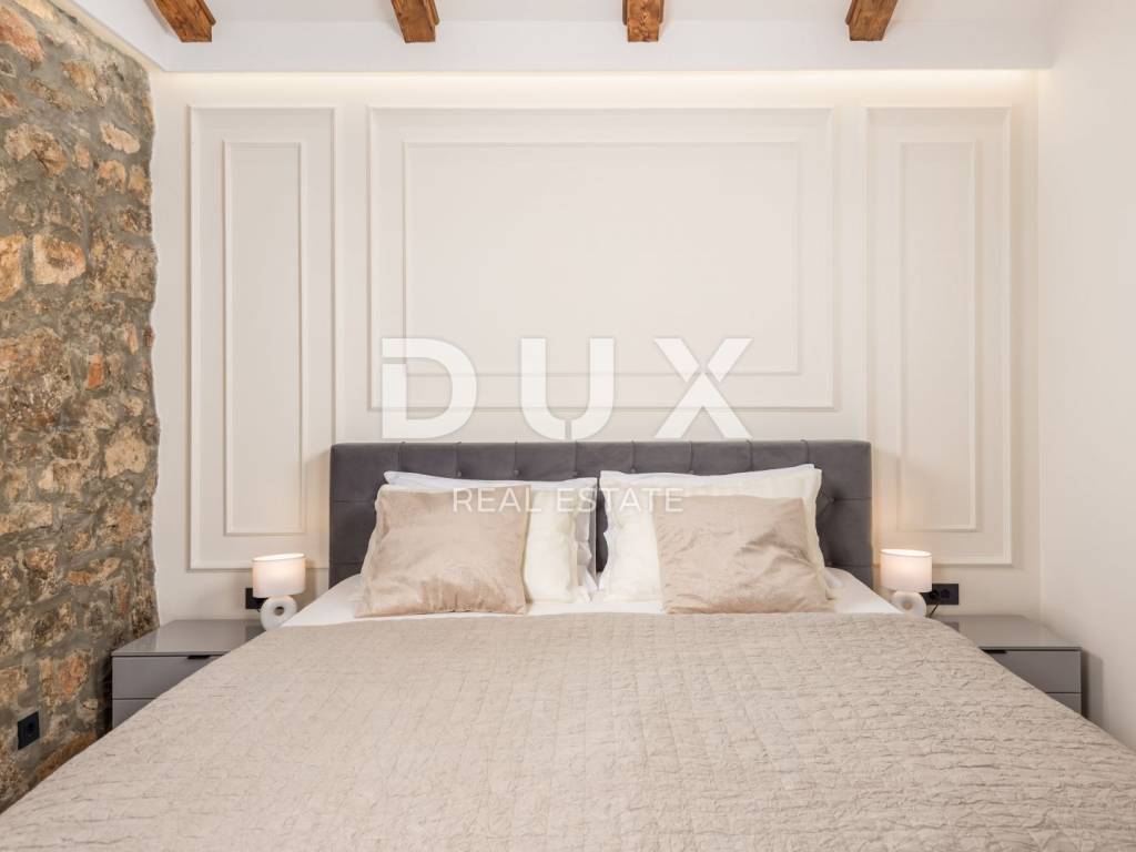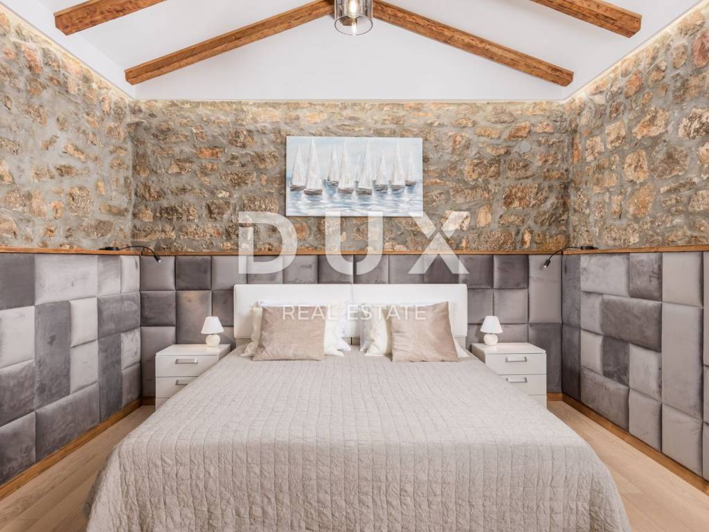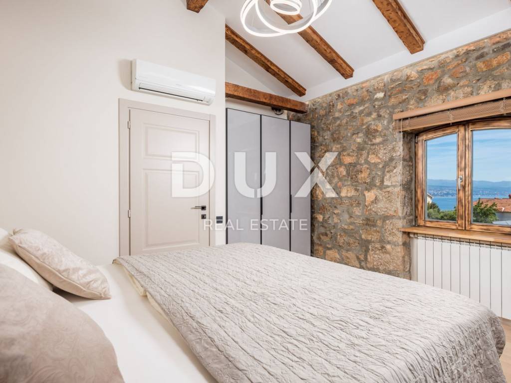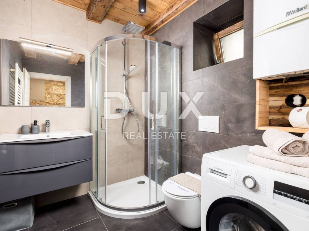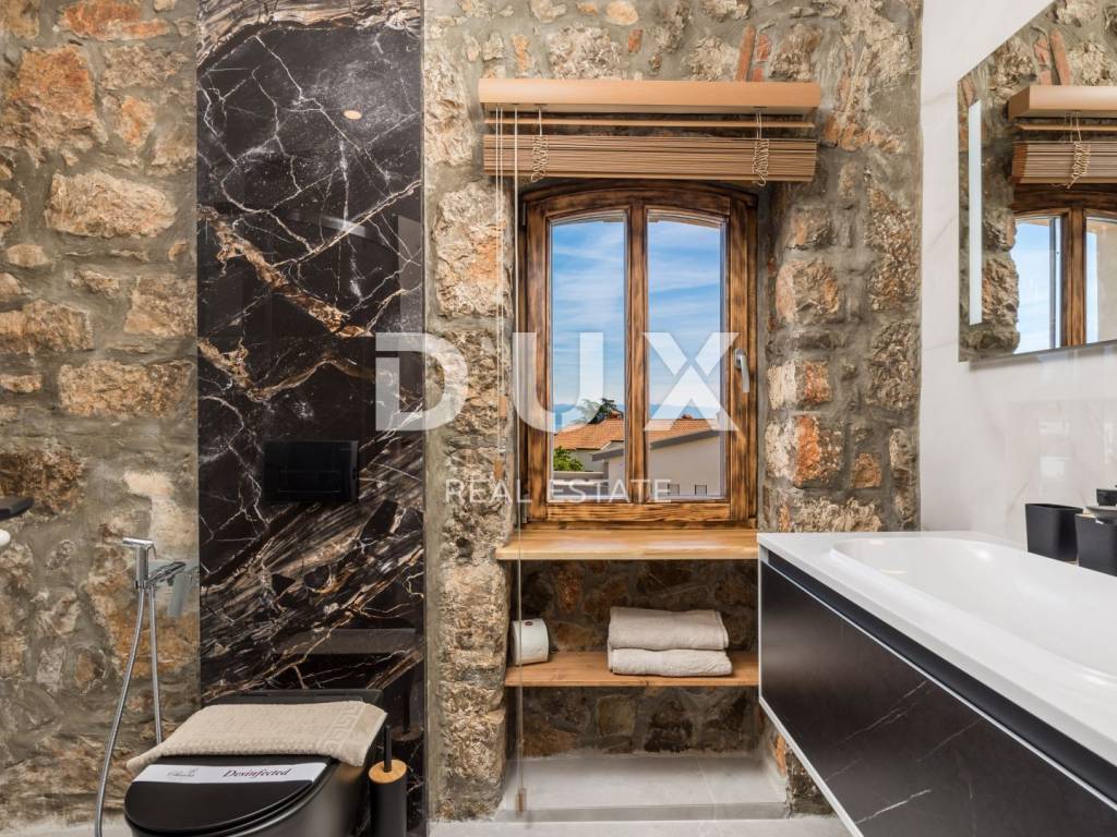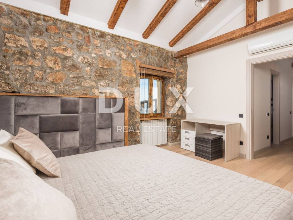 In the special DUX offer of houses for rent, there is a charming stone house located in Ičići, near Opatija, available for rent from October 1, 2024 to June 1, 2025. This spacious and luxurious house has two bedrooms with king-size beds and en suite bathrooms. The combination of stone and wood prevails in the beautiful open space living room with a fully equipped kitchen and dining room. The living room has a flat TV with streaming services, a fireplace and a terrace with a view of the sea. The beautifully decorated rooms are equipped with air conditioning, and each room has its own bathroom with luxurious ceramic tiles. The whole house has WIFI, which also provides opportunities for working from home. The bedrooms offer a beautiful view of the sea, while the entire space is refreshed with wooden floors and ceilings, as well as a shiny wooden staircase leading to the upper floor. Every window offers a beautiful view of the Kvarner Bay. A private heated swimming pool with a space for socializing and a sun deck is the perfect place to relax and stay in the fresh air of this beautiful village at the foot of Učka, and the entire house is surrounded by a high fence, thus guaranteeing privacy and peace. This charming stone house is only 10 minutes away from Ičići beach and the famous historical Lungomare promenade, which connects Volosko, Opatija, Ičići, Ika and Lovran. There are two parking spaces right in front of the house. If you are looking for a house for rent in a quiet area on the Opatija Riviera, away from traffic and loud music, this wonderful residence with an excellent location is the right choice for you.