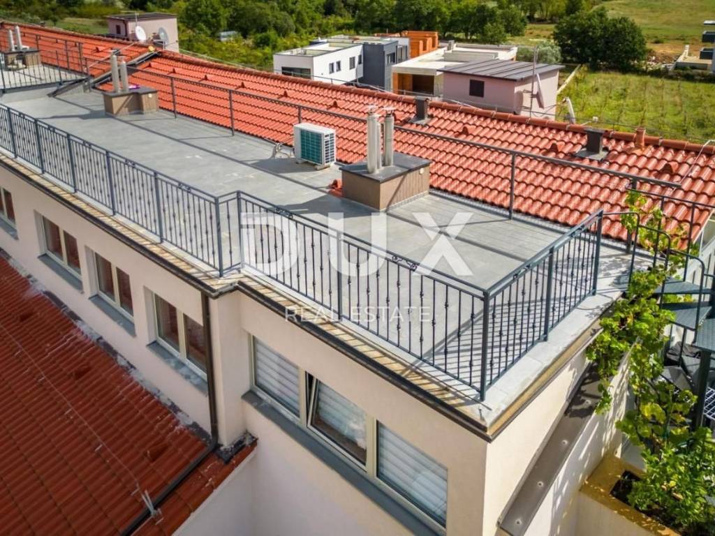 ISTRIA, MEDULIN Exclusive two-story penthouse with roof terrace! We offer a unique property with a roof terrace and a view of the entire Medulin. It is a two-story apartment in a building from 2019, which is directly accessible by an elevator! The spacious area it offers of 250 m2 turns this apartment into a feeling of being at home. The lower floor of the penthouse offers three bedrooms and a bathroom. The upper floor offers a special atmosphere due to the excellent concept of this property. An open space living room with lots of natural light, a fully equipped kitchen, and three additional rooms and a bathroom make up the upper part of this unique property! The roof terrace is a space that makes this property even more attractive, and we are sure that it will be one of the favorite rooms in this beautiful penthouse. The penthouse is equipped with underfloor heating in all rooms, and also offers a pellet fireplace for a special atmosphere during your stay. The distance from the sea is 500 meters as well as from the center of Medulin. For all other details, information or organization of the tour, feel free to contact us! Dear clients, the agency commission is charged in accordance with the General Business Conditions: www.dux-nekretnine.hr/opci-uvjeti-poslovanja