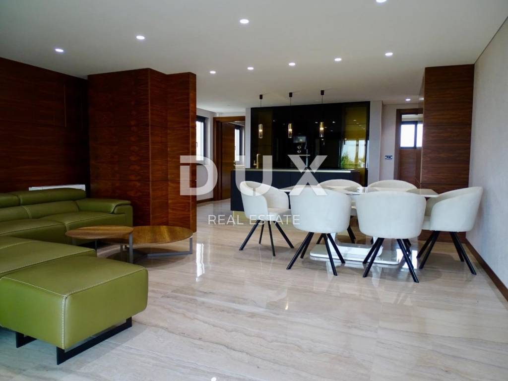 ISLAND OF KRK, MALINSKA - Penthouse with pool only 150 meters from the sea and only 150 meters from the sea. Beautiful building overlooking the sea. The building has three floors with one residential unit. The apartment on the second floor consists of a living room, kitchen, dining room, three bedrooms, two bathrooms, toilet and a large and beautiful terrace overlooking the sea. The apartment also has about 50 m2 of garden with pool and one parking space. The building is equipped with high quality materials, underfloor heating, cooling Mitsubishi air conditioning indoor units in each room, exterior carpentry with large sliding walls (lifting sliding), floors will be covered with high quality porcelain ceilings, suspended ceilings with built-in lighting, security doors Italian manufacturer (Diere), a room door made of walnut wood also by the Italian manufacturer Diere, the external facade is made of ventilated Roman stone Travertine.