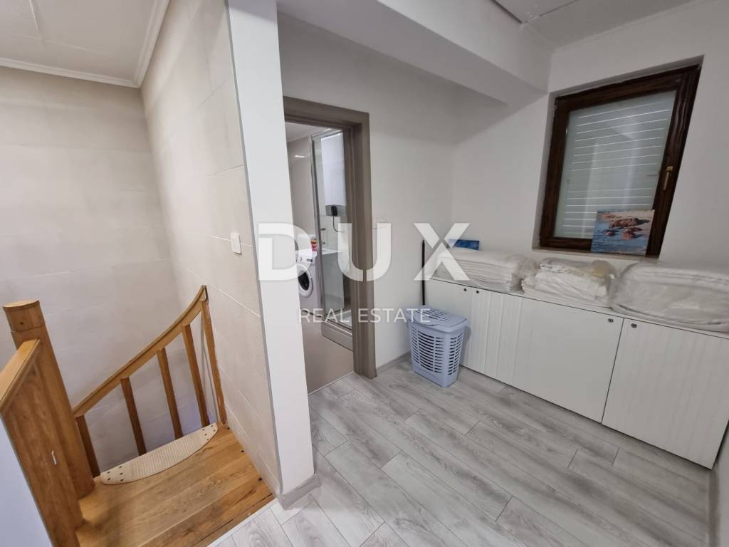 We are selling a detached house with a pool, which is located first row to the sea. The living area is 220m2, and the garden is 300m2. It consists of three separate residential units, a covered grill terrace, a swimming pool with a sunbathing area and a garage. It has an access road to the beach, which is only a few steps away. It is located in a peaceful and beautiful environment. It was built in the 80s, and completely renovated in 2018 (new installations, floors, carpentry and roofing). All apartments are nicely and modernly furnished and air-conditioned. A total of six bedrooms, four bathrooms, three kitchens and three living rooms. The house has a chimney and it is possible to heat it with solid fuels. The house is in a very successful tourist rental, which can be continued if desired. A rarity in the offer! Dear clients, the agency commission is charged in accordance with the General Terms and Conditions. https://www.dux-nekretnine.hr/opci-uvjeti-poslovanja