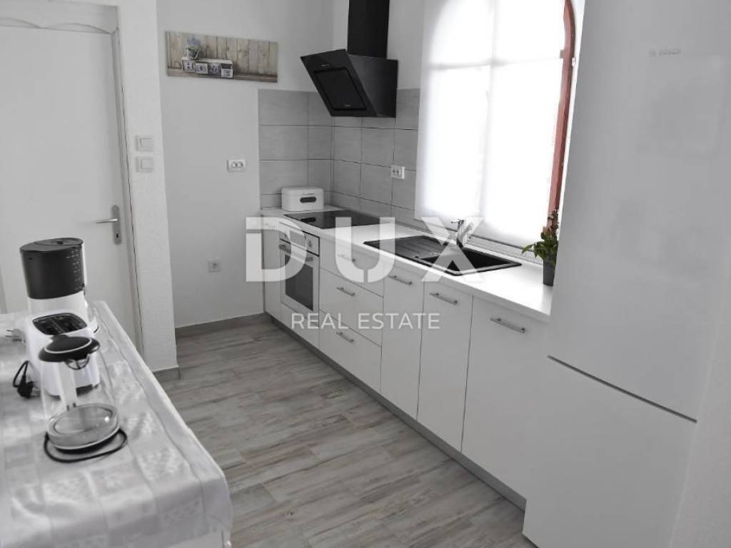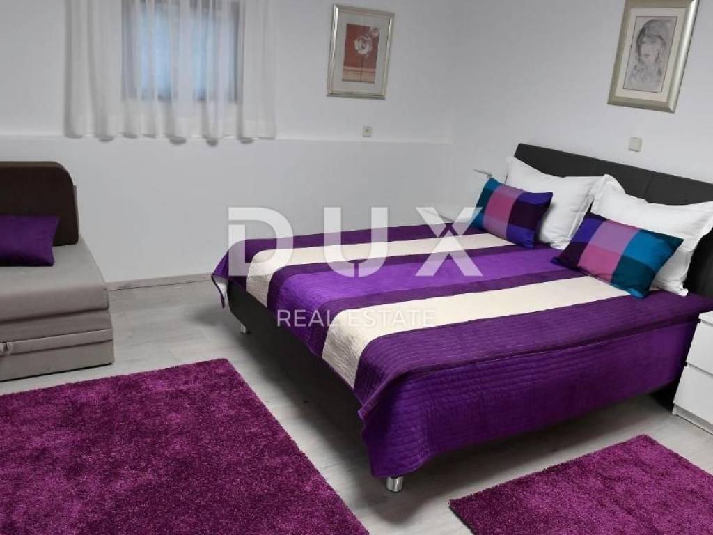 Luxury house with a total square footage of 240 m2 consists of basement, ground floor and first floor, located on a 650 m2 plot, and is only 200 meters from the sea. In the basement there is a bathroom, a storage room, a laundry room, and preparation for the sauna. On the ground floor there is one apartment consisting of a kitchen, dining room and living room, bedroom and bathroom with access to a beautifully landscaped garden and swimming pool. There is also a studio apartment with a mini kitchen and a bathroom. On the first floor there is one apartment with a total square footage of 100 m2, which consists of a kitchen, dining room and living room in one space, one large bedroom, bathroom and toilet. The property is of quality construction, beautifully decorated and furnished and is being sold as such.