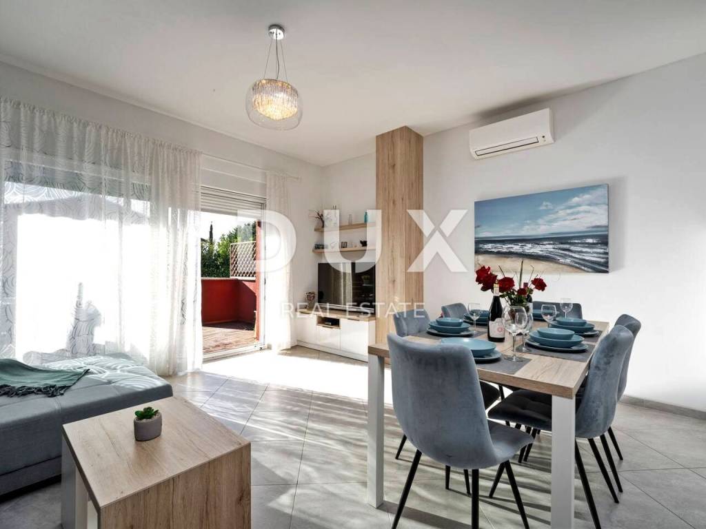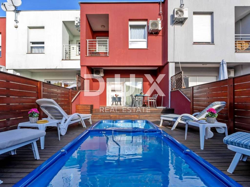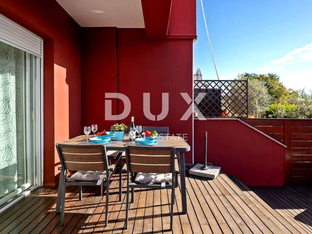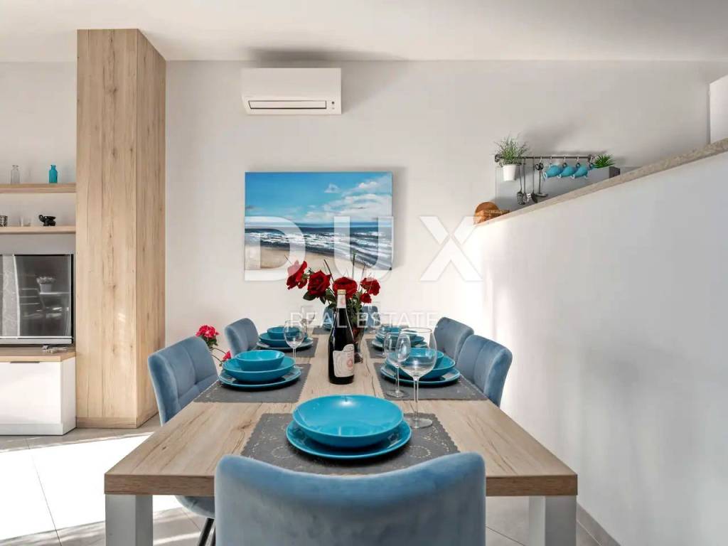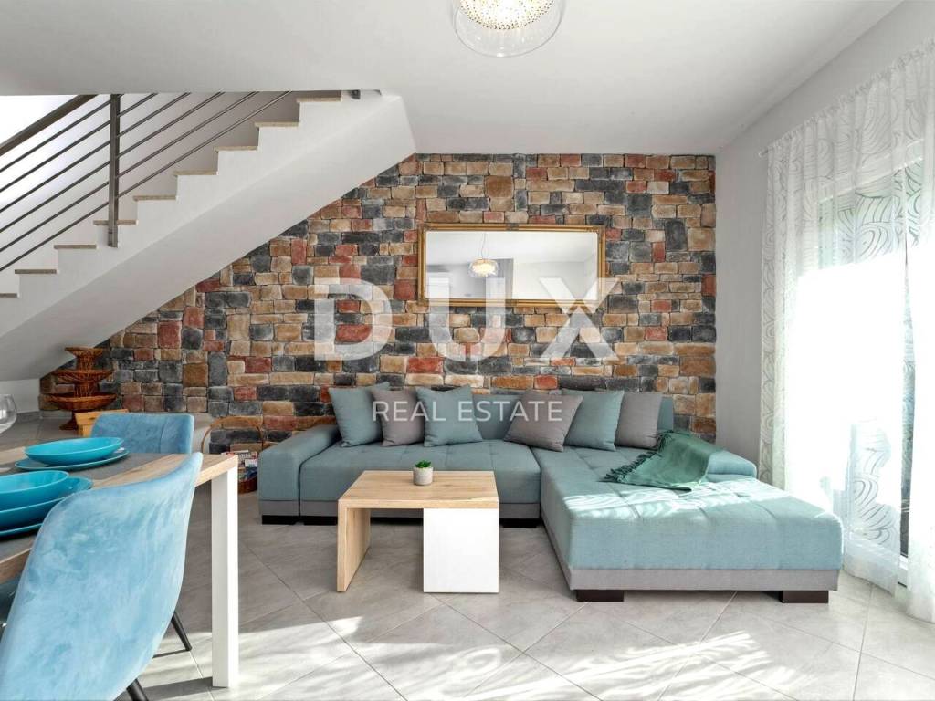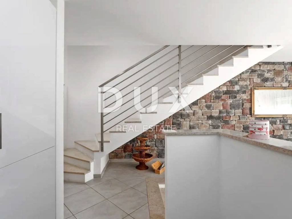 Umag is an attractive Istrian town located on the far west of the Croatian coast and is well connected to other European countries. Umag, a city of tourism and sports, hides a rich history that can be felt while walking along the beautiful streets and promenades along the sea, and the old buildings in combination with the modern parts of the coast are a great combination. The city and its surroundings are characterized by an extremely mild Mediterranean climate, a large number of sunny days and an exceptionally clean sea. Umag is a small town with a very branched and interesting coast with a variety of beaches. From sand and gravel, over stone and concrete to rocky beaches. In the hinterland there are beautiful hilly places-forts with incredible views and an amazing past, as well as many agritourisms with autochthonous delicacies and friendly hosts. Umag consists of 23 settlements. In the vicinity of the town of Umag, in a peaceful and quiet area, a two-story apartment with a garden and a swimming pool is for sale. The microlocation is favorable in every sense: it is connected by traffic to Umag (6 km to the center of Umag), with the main road Umag - Koper (5 km to the border crossing Plovania - SLO). One of the most beautiful beaches of the Umag Riviera, Kanegra, is only 2 km from the property, and the golf course and the elite Kempinski resort are only 6 km from the property. The residential building in which the apartment is located extends through the ground floor and first floor and contains a total of 6 two-story residential units in a row. The architectural style of the building is modern, with clean lines and a minimalist design. Durable and reliable materials were used in the construction, which guarantee long-term satisfaction and security of housing. The building was built with Porotherm block bricks with a Demit facade. First-class tiles and Italian sanitary ware were installed, as well as external PVC six-chamber joinery with built-in aluminum shutters. The space planning of each residential unit was carried out in detail, which resulted in a high-quality layout of the rooms, which guaranteed the full use of the space. The object of sale is a residential unit that extends through the ground floor and first floor. The ground floor consists of an open-concept space that unites the kitchen, dining room and living room with access to a partially covered terrace that continues to the pool beach and hot tubs located in the garden. The floor plan of the ground floor is complemented by a guest toilet, while the first floor consists of a bathroom and two bedrooms, one of which has its own terrace. Heating/cooling of the apartment is ensured by Daikin inverter air conditioners. Own parking is located in front of the entrance to the apartment. This apartment is an ideal opportunity for a comfortable family life as well as for an investment for the purpose of an already well-established tourist rental (categorization of the accommodation object marked with four stars ****). The property is sold fully equipped and furnished. The seller of the property in question is a legal entity. Dear clients, the agency commission is charged in accordance with the General Business Conditions: www.dux-nekretnine.hr/opci-uvjeti-poslovanja