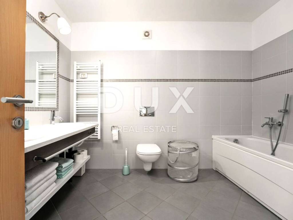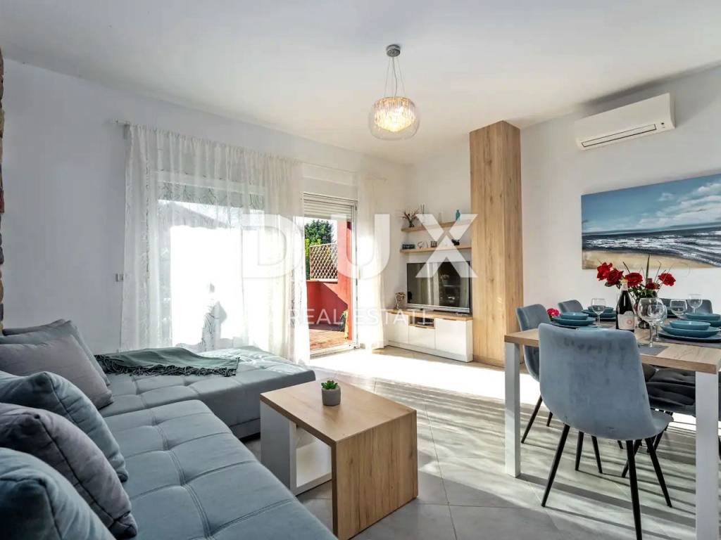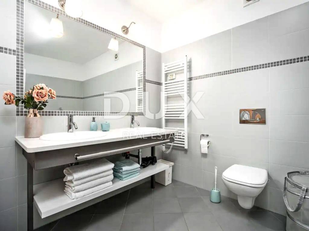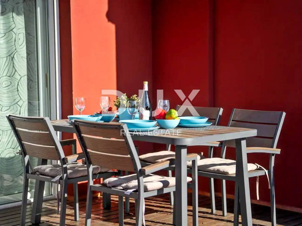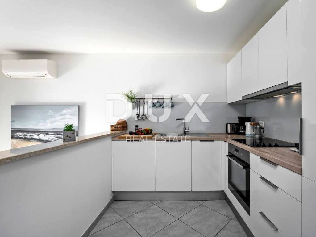 Umag is an attractive Istrian town located on the far west of the Croatian coast and is well connected to other European countries. Umag, a city of tourism and sports, hides a rich history that can be felt while walking along the beautiful streets and promenades along the sea, and the old buildings in combination with the modern parts of the coast are a great combination. The city and its surroundings are characterized by an extremely mild Mediterranean climate, a large number of sunny days and an exceptionally clean sea. Umag is a small town with a very branched and interesting coast with a variety of beaches. From sand and gravel, over stone and concrete to rocky beaches. In the hinterland there are beautiful hilly places-forts with incredible views and an amazing past, as well as many agritourisms with autochthonous delicacies and friendly hosts. Umag consists of 23 settlements. In the vicinity of the town of Umag, in a peaceful and quiet area, a two-story apartment with a garden and a swimming pool is for sale. The microlocation is favorable in every sense: it is connected by traffic to Umag (6 km to the center of Umag), with the main road Umag - Koper (5 km to the border crossing Plovania - SLO). One of the most beautiful beaches of the Umag Riviera, Kanegra, is only 2 km from the property, and the golf course and the elite Kempinski resort are only 6 km from the property. The residential building in which the apartment is located extends through the ground floor and first floor and contains a total of 6 two-story residential units in a row. The architectural style of the building is modern, with clean lines and a minimalist design. Durable and reliable materials were used in the construction, which guarantee long-term satisfaction and security of housing. The building was built with Porotherm block bricks with a Demit facade. First-class tiles and Italian sanitary ware were installed, as well as external PVC six-chamber joinery with built-in aluminum shutters. The space planning of each residential unit was carried out in detail, which resulted in a high-quality layout of the rooms, which guaranteed the full use of the space. The object of sale is a residential unit that extends through the ground floor and first floor. The ground floor consists of an open-concept space that unites the kitchen, dining room and living room with access to a partially covered terrace that continues to the pool beach and hot tubs located in the garden. The floor plan of the ground floor is complemented by a guest toilet, while the first floor consists of a bathroom and two bedrooms, one of which has its own terrace. Heating/cooling of the apartment is ensured by Daikin inverter air conditioners. Own parking is located in front of the entrance to the apartment. This apartment is an ideal opportunity for a comfortable family life as well as for an investment for the purpose of an already well-established tourist rental (categorization of the accommodation object marked with four stars ****). The property is sold fully equipped and furnished. The seller of the property in question is a legal entity. Dear clients, the agency commission is charged in accordance with the General Business Conditions: www.dux-nekretnine.hr/opci-uvjeti-poslovanja