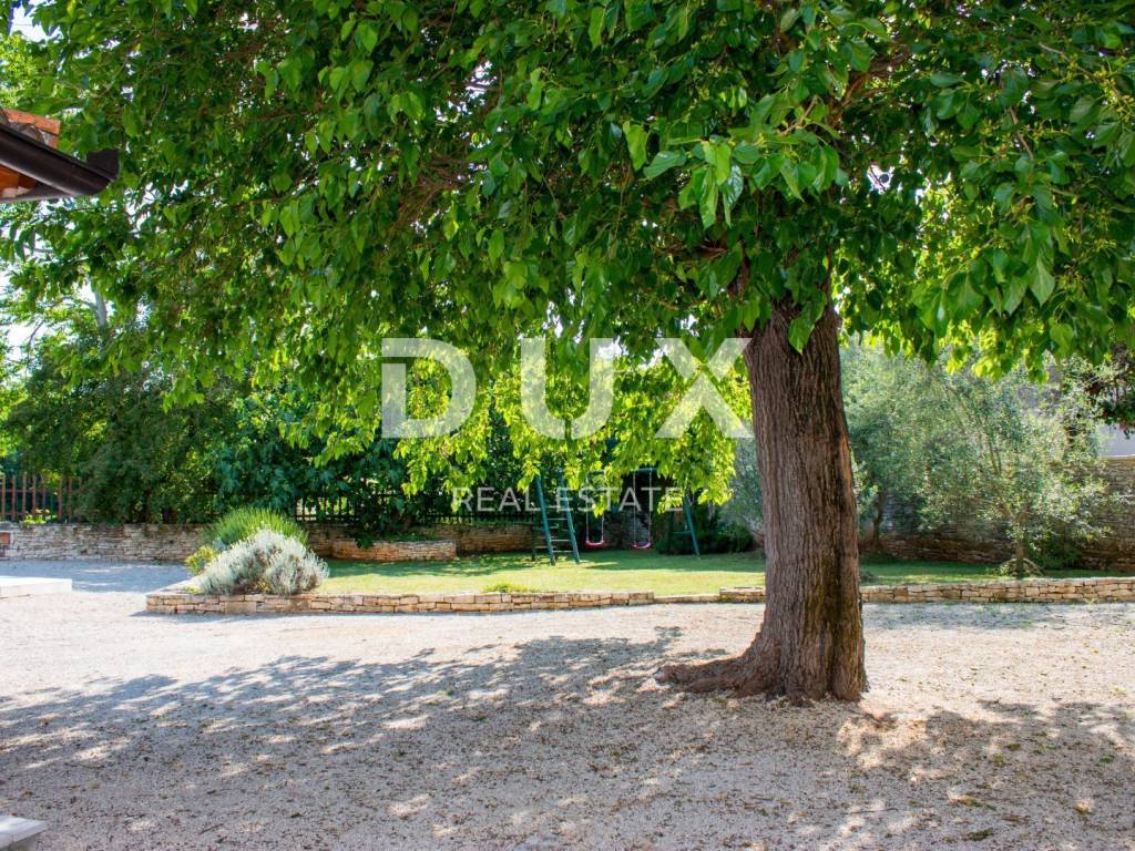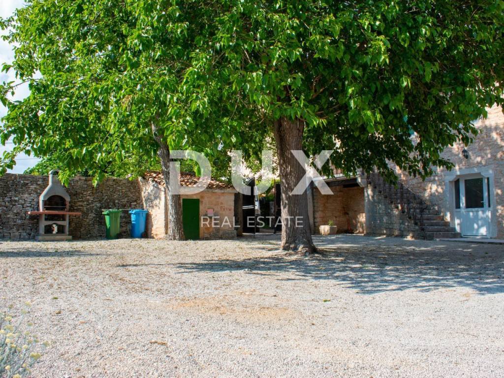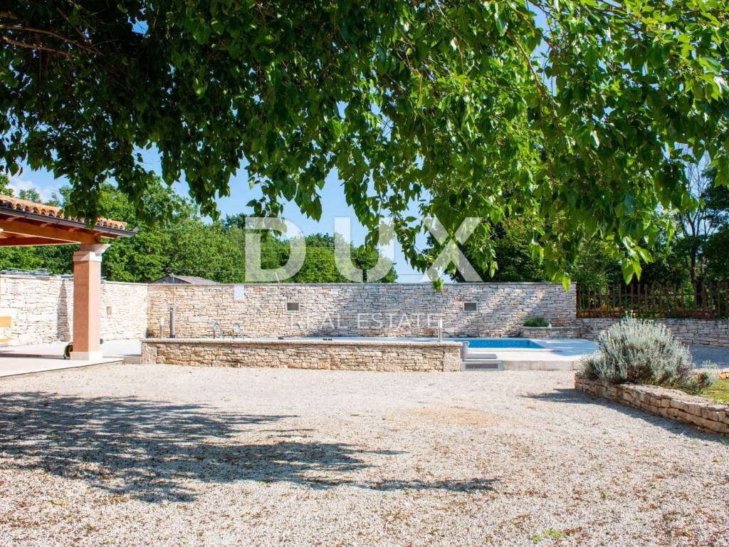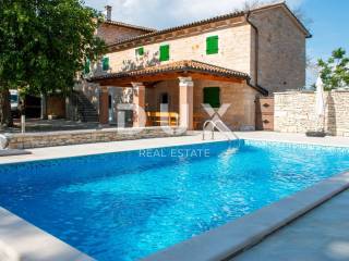 We present a unique Istrian hacienda consisting of two stone houses with a swimming pool and a large garden not far from the center of Istria, the historically important Žminj. This spacious property consists of a total of 220 m2, and provides its future owners with the maximum level of comfort, as well as numerous additional options. PROPERTY DESCRIPTION: This quality and highly valuable family hacienda consists of two connected stone houses. One of the houses has been completely renovated and is currently used as the owner's private house and as a rental property. The house includes the ground floor and the first floor. The ground floor of the house consists of a comfortable and spacious living room and dining room, slightly separated equipped kitchen and bathroom. From the living room there is an exit to a larger covered summer terrace, ideal for gatherings and entertainment, as well as a spacious swimming pool and landscaped garden. On the first floor of the house there are three beautifully decorated, air-conditioned bedrooms, a bathroom and an additional toilet. The second house is almost finished, most of the finishing works remain inside the house, and it consists of a total of 100m2 of living space, which is divided into three levels, ground floor, first floor and attic space. On the ground floor of the house there is a large tavern ideal for entertaining friends and family, while the rest of the living space extends through the first and second floors (high attic space). This house offers its future owners the opportunity to arrange the space themselves according to their needs and wishes. The first floor of the house is planned as a living room with a kitchen and a dining room, which also has its own access to a private terrace and a covered part of the green yard, which is hidden from view from the other house. The second floor of the house is planned as a sleeping area with two bedrooms and one bathroom. This property offers numerous possibilities to its future owners, in terms of the purpose of the facilities. So, for example, one of the houses can represent your private property, while the other house can be used as a tourist rental property with a safe return on investment. It is also possible to connect objects into one larger object in order to gain more space. DESCRIPTION OF THE GARDEN: The hacienda is located on a plot completely fenced with a high dry wall, which means that you can carefree enjoy maximum privacy and peace on the spacious plot of 1000m2. In addition to everything mentioned, we must also point out that the real estate is surrounded by land on which construction is not possible, which affects the special feeling helped by the natural greenery and slightly wooded landscape. On this private garden, which is accessed through a cast iron gate, there is enough parking space for 5 or more cars, there are also beautifully landscaped green areas with a smaller children's playground for the carefree play of the youngest members of your family. In addition to everything mentioned, there is also a spacious sunbathing area in the garden, as well as a beautiful swimming pool of 34 m2. The renovation of the house was completed in 2016, and since 2017 the house has been used for tourist purposes and generates stable income from tourism. The orientation of the house is towards the west, which allows you to enjoy beautiful sunsets. This property represents an excellent investment for long-term tourism. It is located in a good location, only 2.5 km away from the highway, and Rovinj and the sea are only 20 km away. Home ownership is 1/1, no encumbrances, giving you peace of mind and security when buying.