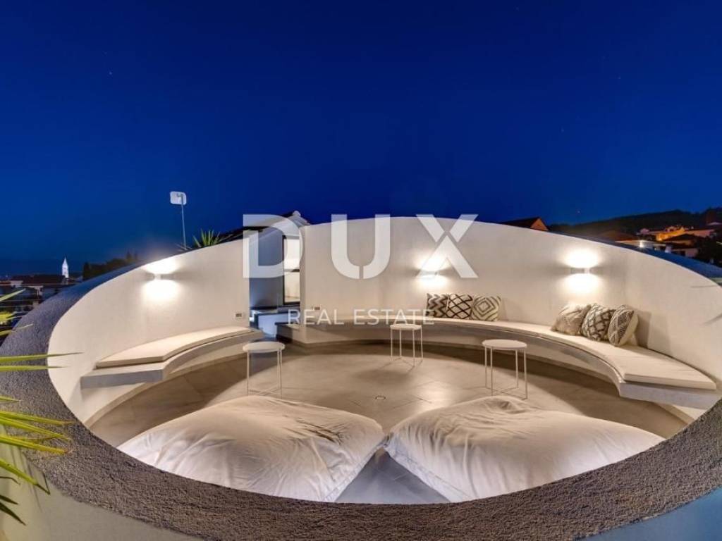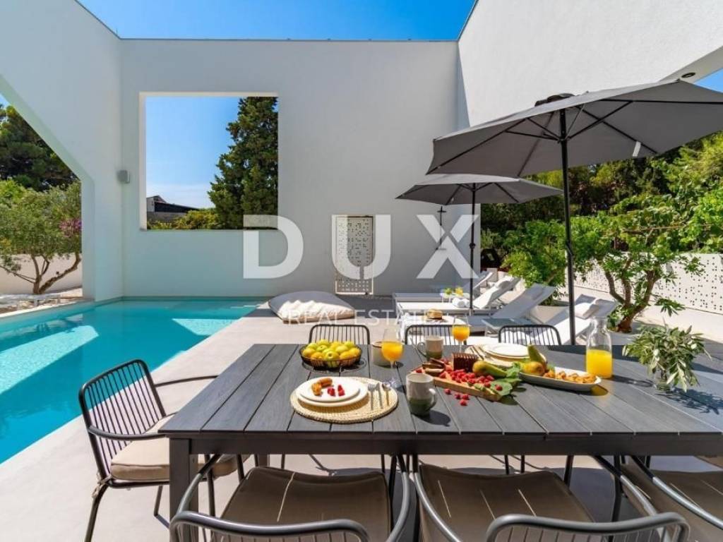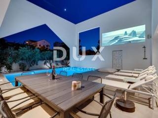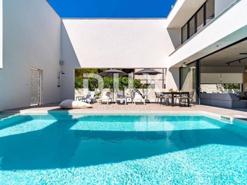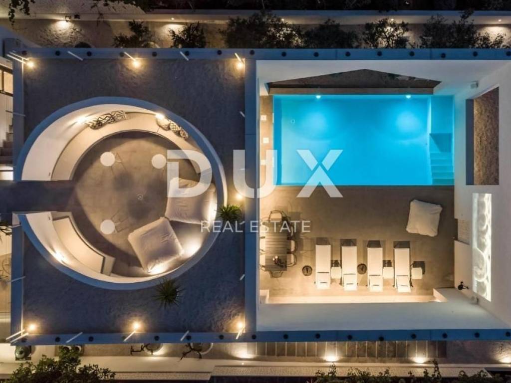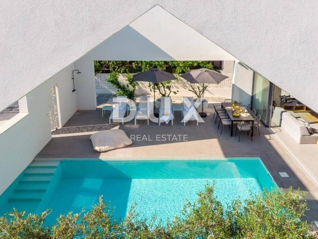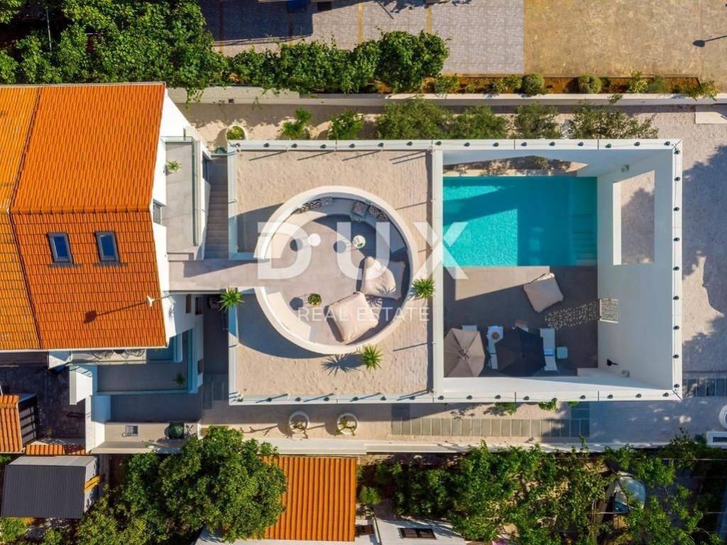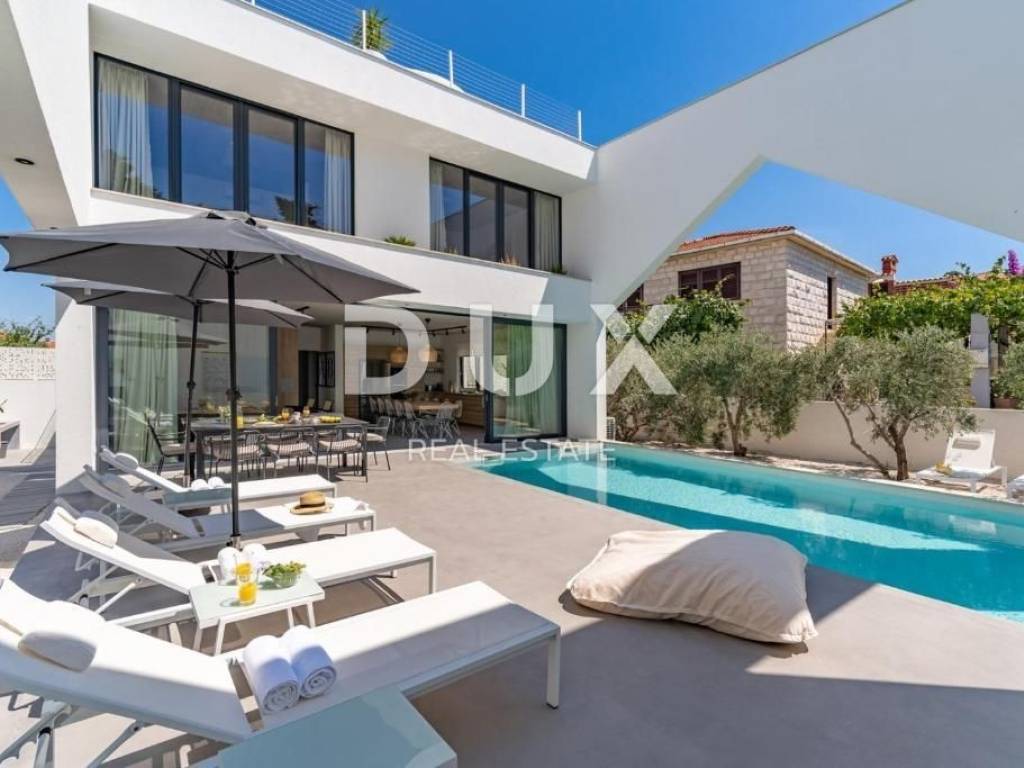 The luxury villa is located in the small coastal town of Supetar on the island of Brač, a popular summer vacation destination in Croatia. We are proud to present this high-quality and luxurious villa located in a quiet village. It is a real family villa that will certainly not leave you indifferent, the wonderful view from all the rooms and the garden of the villa is simply breathtaking. Location wise, the villa is positioned in an extremely quiet and attractive location, only 50 meters from beautiful beaches and the center of the town, which is rich in a long past with a hundred-year tradition in tourism. The warm and high-quality Mediterranean climate, lush vegetation and favorable geographical position enabled the strong development of tourism in this location, and thus Supetar became the most important place on the famous island of Brač. DESCRIPTION OF THE PROPERTY; It is a family villa with a total living area of 225m2 built as a storey. Thus, on the ground floor, at the entrance to the villa, there is a lobby that welcomes us gracefully, and further introduces us to the other ground-floor rooms of the villa. You can relax and have fun with your family and friends in the luxuriously equipped and spacious kitchen of a renowned manufacturer, and you can enjoy your favorite delicacies in the spacious dining room, which is located next to the kitchen. A comfortable living room is located slightly separated. This entire space is exposed to daylight throughout the day, which is made possible with the help of larger sliding glass walls. Through the same sliding walls, there is a view and access to the covered terrace, then to the garden landscaped with Mediterranean plants, and to the spacious pool. On the ground floor there is a separate room with a sauna and shower, a small storage room, as well as a guest toilet. An elegant internal staircase leads to the first floor of the villa, where there are five spacious bedrooms, each of which has its own bathroom. In the second part of the floor there is an office room. In addition, the first floor of the villa leads to a spacious terrace that provides a special atmosphere on summer days. It is a villa that was built exclusively according to the highest world standards, and which was decorated with top designers so that the villa exudes luxury and remains timeless. Thus, the owners paid attention to absolutely every detail, while maximum attention was paid to the comfort and functionality of each room. In the same way, the owners paid great attention to the garden of 481 m2, which is completely fenced and hidden from all eyes with a maximum sense of privacy and peace. The courtyard of the villa is decorated with Mediterranean plants and olive trees. Thus, a spacious swimming pool with a sunbathing area is located in the garden. During the warm summer months, you have the opportunity to spend your time in the separate summer kitchen and sitting areas. ADDITIONAL INFORMATION; * The villa is equipped with underfloor heating * All rooms have air conditioning * Heated pool * During the construction and decoration of the villa, high-quality and rare materials were used that exude luxury and quality. * The villa is sold furnished with all furniture from a renowned manufacturer with a signature. * The ownership of the villa is properly LOCATION DESCRIPTION; As it is a highly luxurious villa, we must mention that the owners have chosen an ideal location that suits this kind of villa and completes its mission. The family atmosphere extends through the entire settlement, while everything necessary for a safe daily life is in the immediate vicinity. The mild Mediterranean climate and landscape create a special feeling during your stay in this area, the clean and fresh air as well as the open view simply take away any form of stress and effort, and give off a feeling of luxury and privilege. Along with staying in the villa, it is important that we introduce you to everything that is in the immediate vicinity, so; * the center of Supetar is only 100 meters away * numerous beaches with crystal clear and fresh sea are 50 meters away * numerous restaurants and taverns are only 2 minutes away * larger shops are only a few minutes away In short, this is a special property worth your attention. Feel free to contact us because we will be happy to help you in case of any additional questions, necessary information or wish to organize an appointment to view the property.