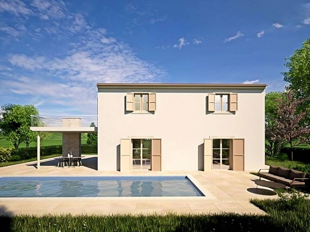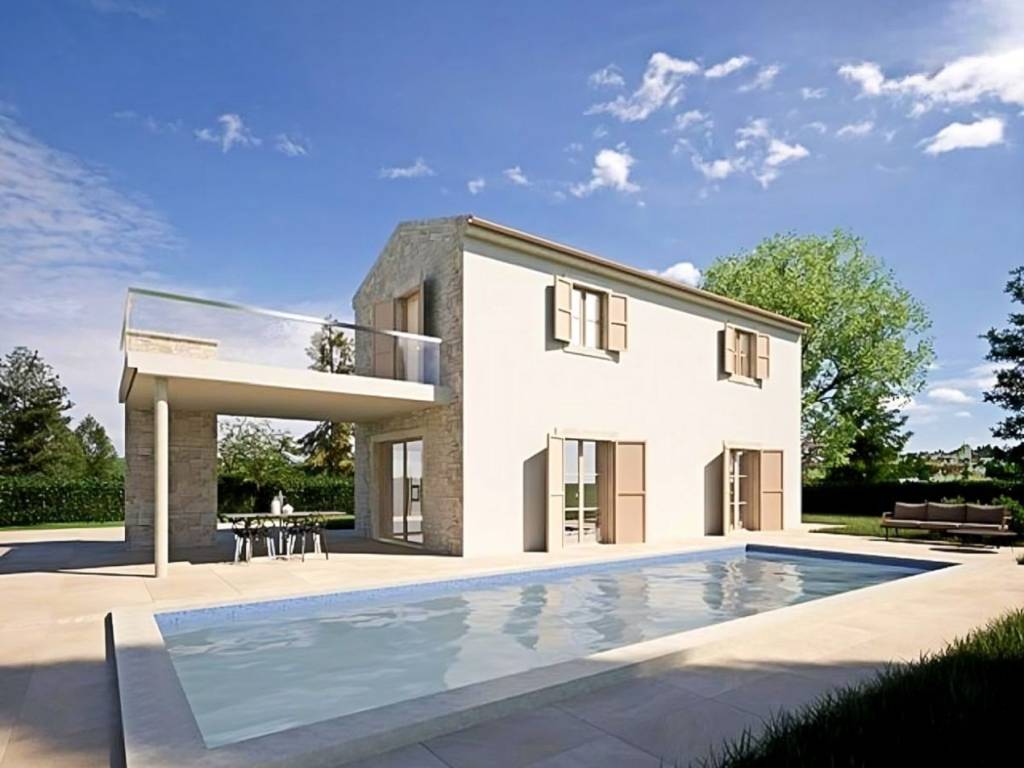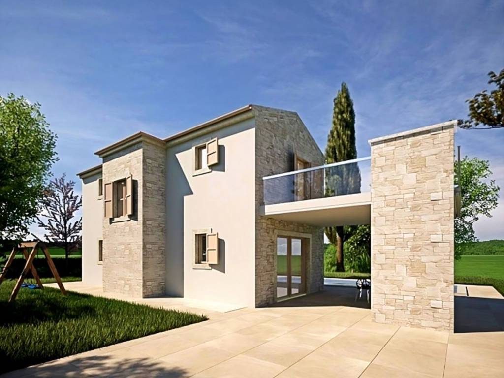 Višnjan is a picturesque and lively town and municipality in the western part of Istria. The municipality of Višnjan has 56 settlements and is located in the area between the Mirna River in the north and the Lim Channel in the south. Romantic Višnjan is located on a gentle hill of 244 m above sea level, surrounded by meadows, arable fields and forests of honey oak and hornbeam. Today, Višnjan is best known for its unique observatory, which is one of the twelve most productive observatories of all time in terms of the number of discovered asteroids. In an idyllic landscape in the hinterland of Višnjan, a house with a swimming pool and a sea view is for sale. The house was designed in compliance with the profession, legal regulations and spatial planning documentation and was built according to the highest standards for residential construction. With its tame architecture, it does not disturb the environment, but creates a synergy of the natural environment, traditional Istrian architecture and modern design. The design simplicity of traditional architecture resulted in the creation of a compact floor plan and a pleasant airy space. It is divided into three floors; basement, ground floor and first floor and exudes elegance and simplicity and provides a high level of comfort. In the basement there is a wellness room with a sauna and a bathroom. The ground floor consists of an open concept space that unites the living room, dining room and kitchen with access to a spacious covered terrace. The ground floor plan is complemented by a guest toilet. Upstairs there are two bedrooms with private bathrooms and a spacious terrace with a view of the sea and the surrounding area. Heating/cooling of the house is provided by electric underfloor heating and air conditioning. The yard is landscaped and horticulturally decorated, and complete harmony is provided by an elegantly integrated pool of 36 m with a sun deck. The excellent location and the spatial organization of the interior and exterior of this property provide an opportunity for a comfortable family life or an investment investment in the tourism business in renting. Dear clients, the agency commission is charged in accordance with the General Business Conditions: www.dux-nekretnine.hr/opci-uvjeti-poslovanja