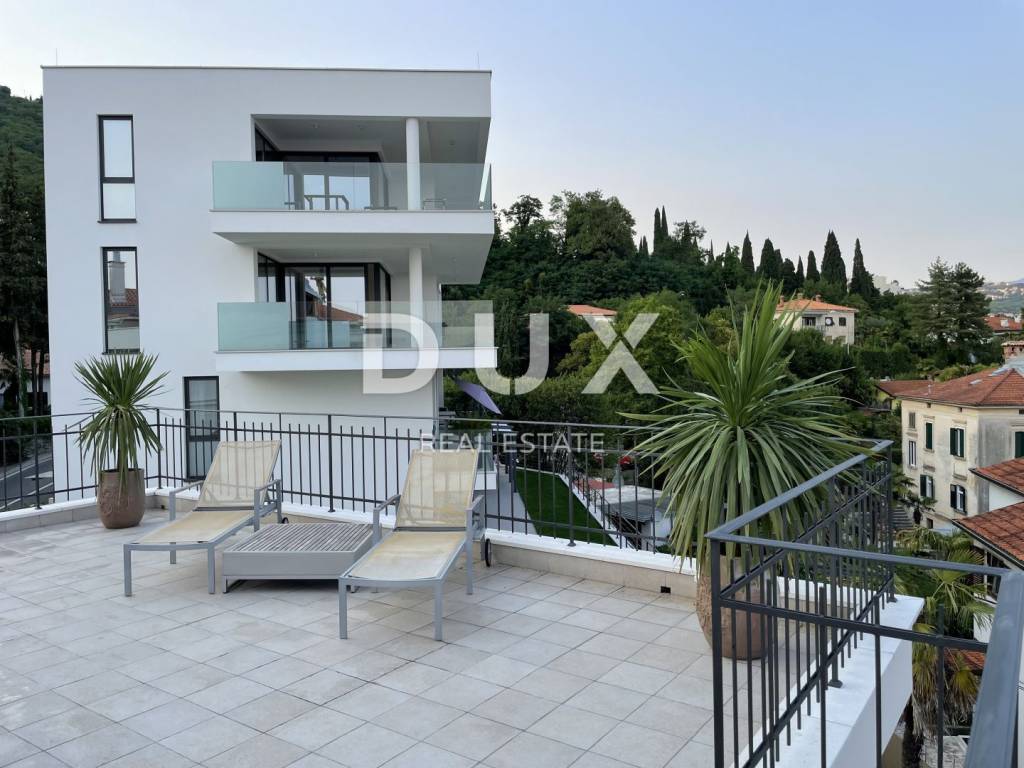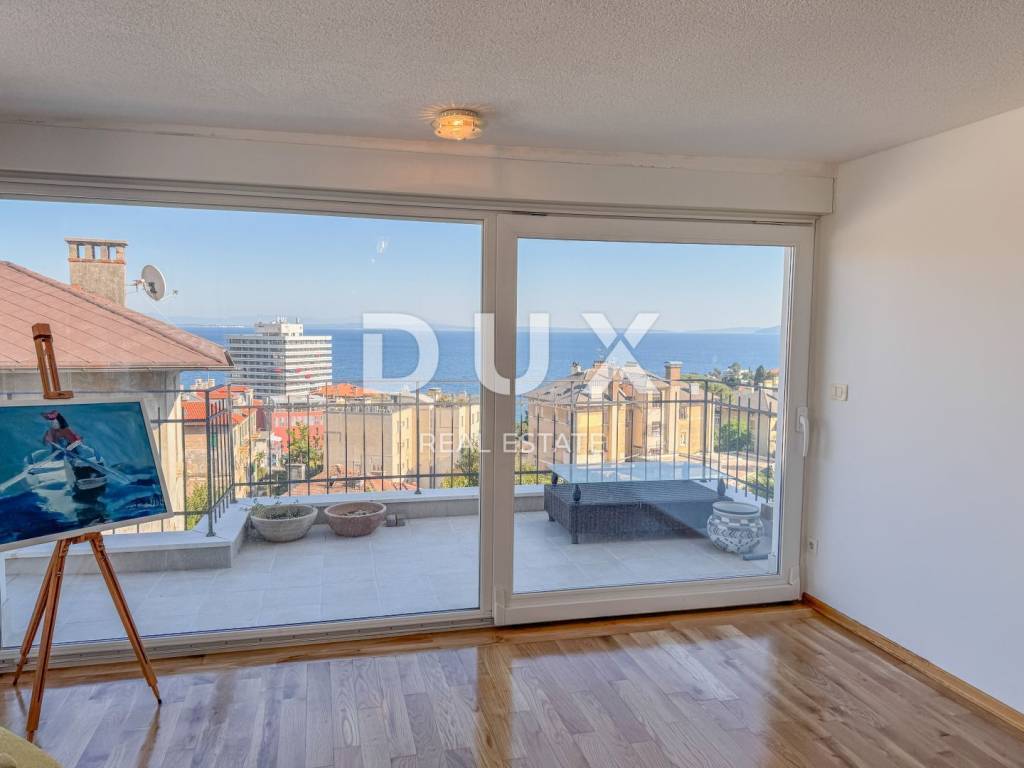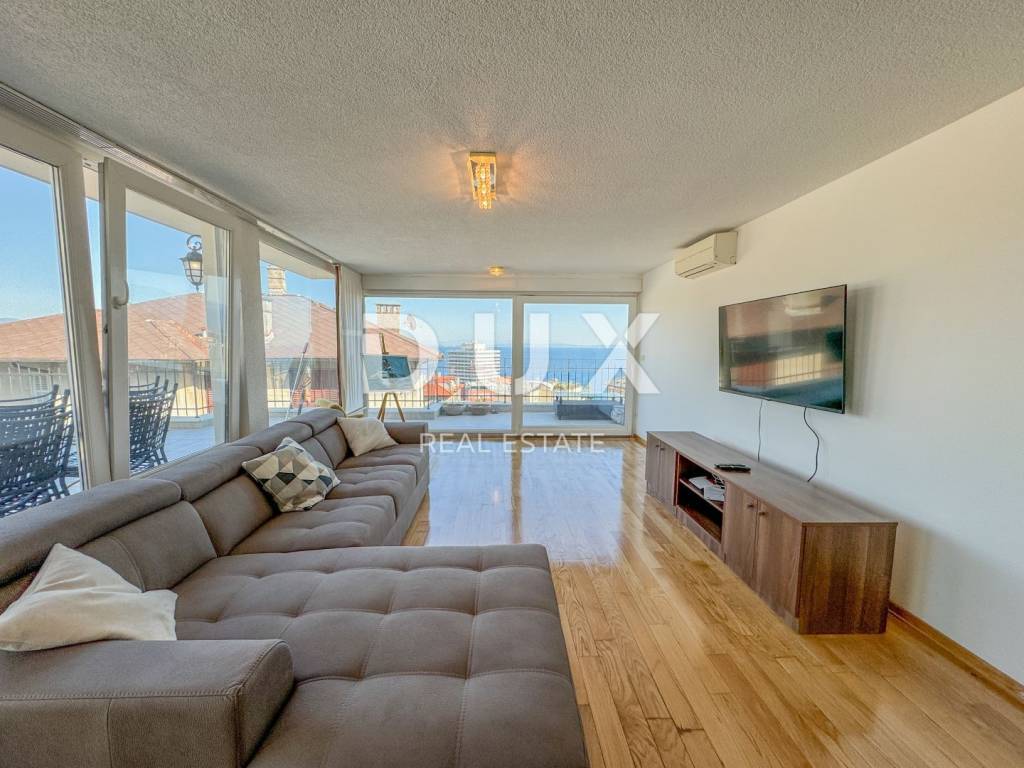 This spacious apartment of 200 m2 offers three comfortable bedrooms, two bathrooms, three sunny balconies and a spacious south-facing terrace of 60 m2 with a beautiful view of the sea. The apartment is well decorated, and the high ceilings provide additional airiness and light. It is interesting to point out that a view of the sea is guaranteed from most of the rooms. You will enjoy a large living room and a separate kitchen with a dining room. Built-in wardrobes provide enough space for your things. The villa is located in a quiet part of Opatija, ensuring silence and a relaxing atmosphere. The apartment is equipped with air conditioners and has central electric heating for year-round comfort. It should be noted that the two large bedrooms are south-facing and offer their own private balconies where you can enjoy the sun and peace, with your favorite book, for example. The long-term rent of this furnished apartment is 2,200 + utilities. The location is excellent - just a few minutes' walk to the sea, the city center, the market, the new private school and shops. You also have a private parking space in front of the house. This is an opportunity for a quality life in one of the most beautiful cities on the Adriatic. For a flexible viewing of the apartment, contact the agent 00385911898332 Dear clients, the agency commission is charged in accordance with the General Terms and Conditions. www.dux-nekretnine.hr/opci-uvjeti-poslovanja