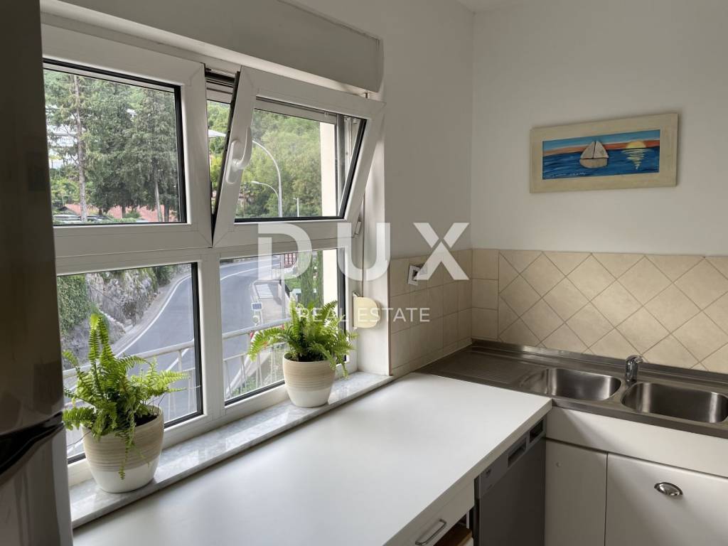 DUX offers an opportunity for a home in a beautiful larger and well-decorated apartment inside a preserved historical villa, located in the very heart of Opatija.