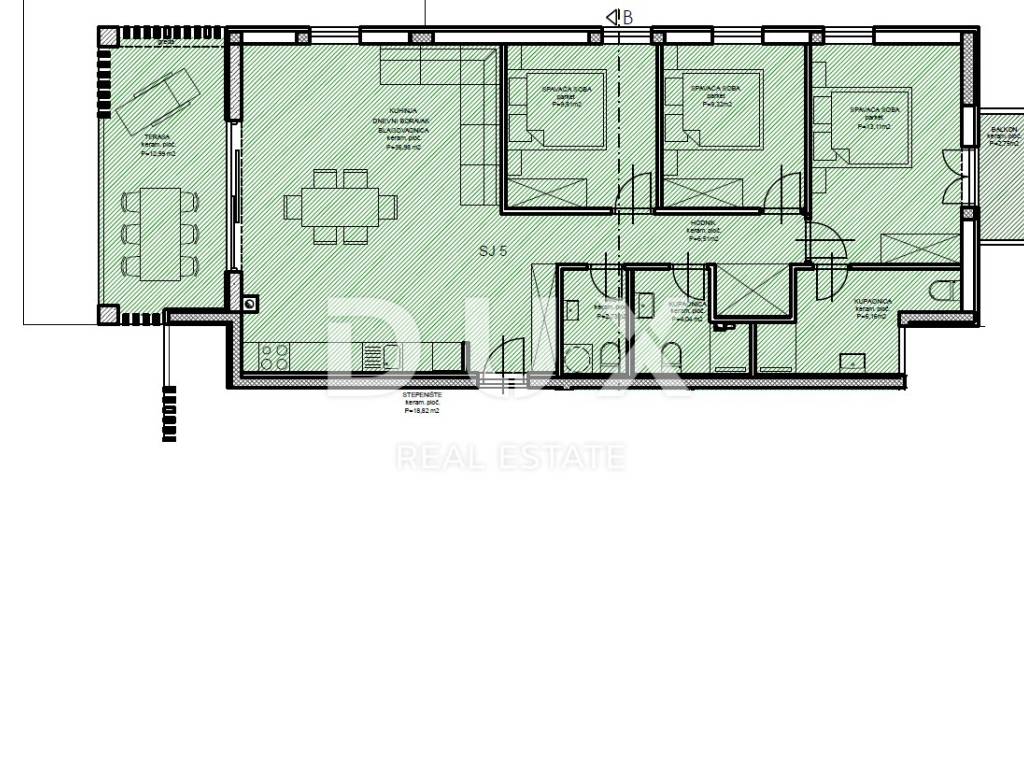 A beautiful apartment of 88.66 m2 with a terrace of 20 m2 is for sale in Vodice near Šibenik. The total useful value of the apartment area together with all accessories is 105m2. It is located on the ground floor of a residential building with 10 apartments, which is located only 80 meters from the main beach. There is a cinema and a park within a radius of only 80 meters, and the town center is only 200 meters away, which offers a variety of facilities and recreational opportunities. The apartment consists of a hallway, a kitchen connected to a dining room and a living room, which together create a functional space for meals and socializing. The apartment has a bedroom with a bathroom that increases privacy, an additional bathroom and toilet, and two more bedrooms. A special feature of the apartment is the terrace, which provides space for outdoor relaxation and offers the possibility of installing a jacuzzi or even a smaller pool, creating a private corner for enjoyment and relaxation. Next to the terrace is a garden, further enriching the space with natural greenery. The apartment is equipped with underfloor heating, providing warmth in every corner, while all rooms are equipped with air conditioners for optimal air conditioning. The building is covered with a 10 cm thick EPS thermal envelope, which guarantees a comfortable temperature during all seasons and achieves high energy efficiency. During the construction, extremely high-quality materials were used, which ensured not only durability, but also the aesthetic appeal of the space that will last for many years. This apartment is being sold unfurnished, giving future owners the freedom to personalize the space according to their own preferences. There is the possibility of purchasing a garage parking space and a storage room on minus one floor, which ensures practicality and safe space for parking and storing personal belongings. Nearby is the islet of Prvić, and the center of Šibenik is 12 km away. The city of Split is 69 km away, and the nearest airport is 49 km away. There are several National Parks and Nature Parks in the area. Kornati National Park, also known as the pearl of the Adriatic, is located in the immediate vicinity of Šibenik. A little further north is the Vrana Lake Nature Park, a natural ornithological reserve with rich flora and fauna.