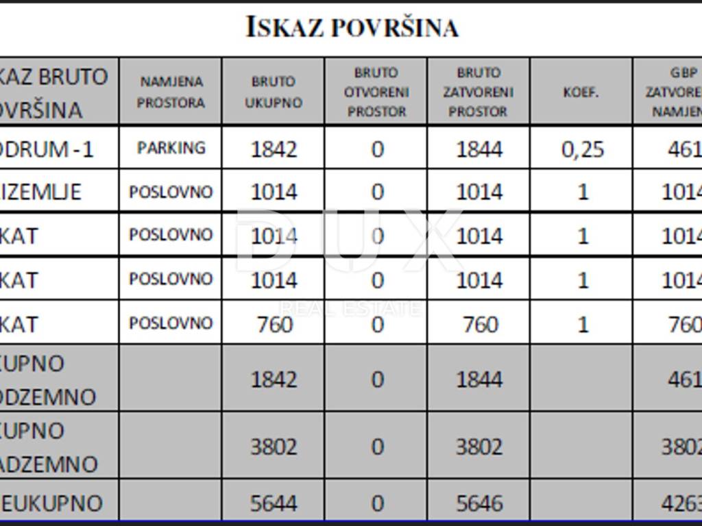 Planirana zgrada ima 5646m2 BRUTTO RAZVIJENE POVRŠINE, odnosno 4263m2 NETTO RAZVIJENE POVRŠINE.