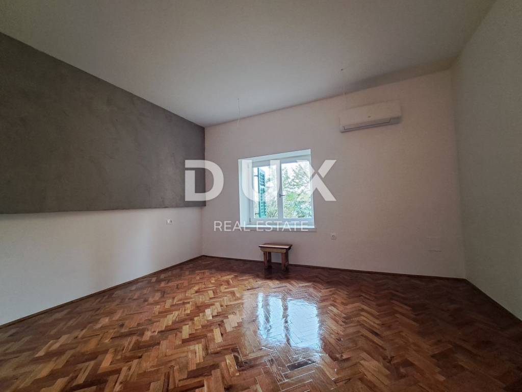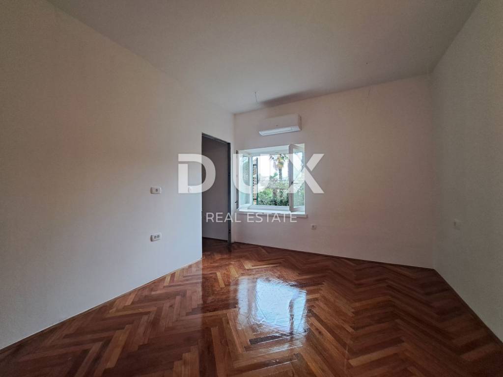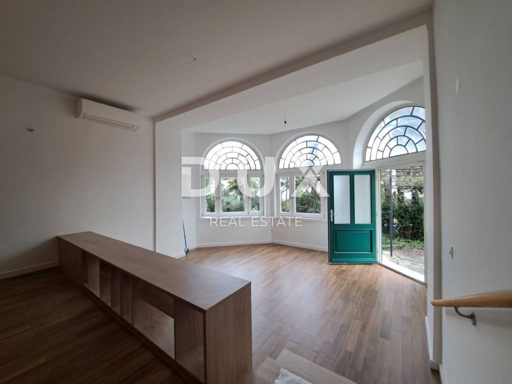 From the DUX offer, we highlight a special property. The apartment consists of three bedrooms, two bathrooms, wardrobe, spacious living room with dining room and kitchen. One bedroom has its own wardrobe, while the other has a bathroom. It is located on the ground floor of an Austro-Hungarian villa and has a beautiful garden with a view of the sea. The apartment has a garage and 3 parking spaces. It was completely renovated in 2023. We are glad that you are interested in the properties in our offer. We are at your disposal for all information.