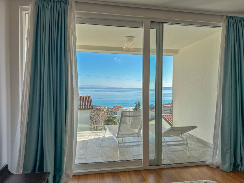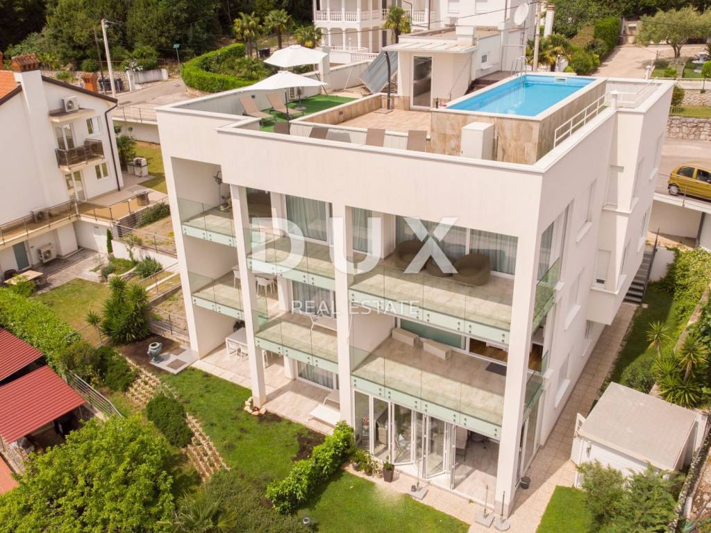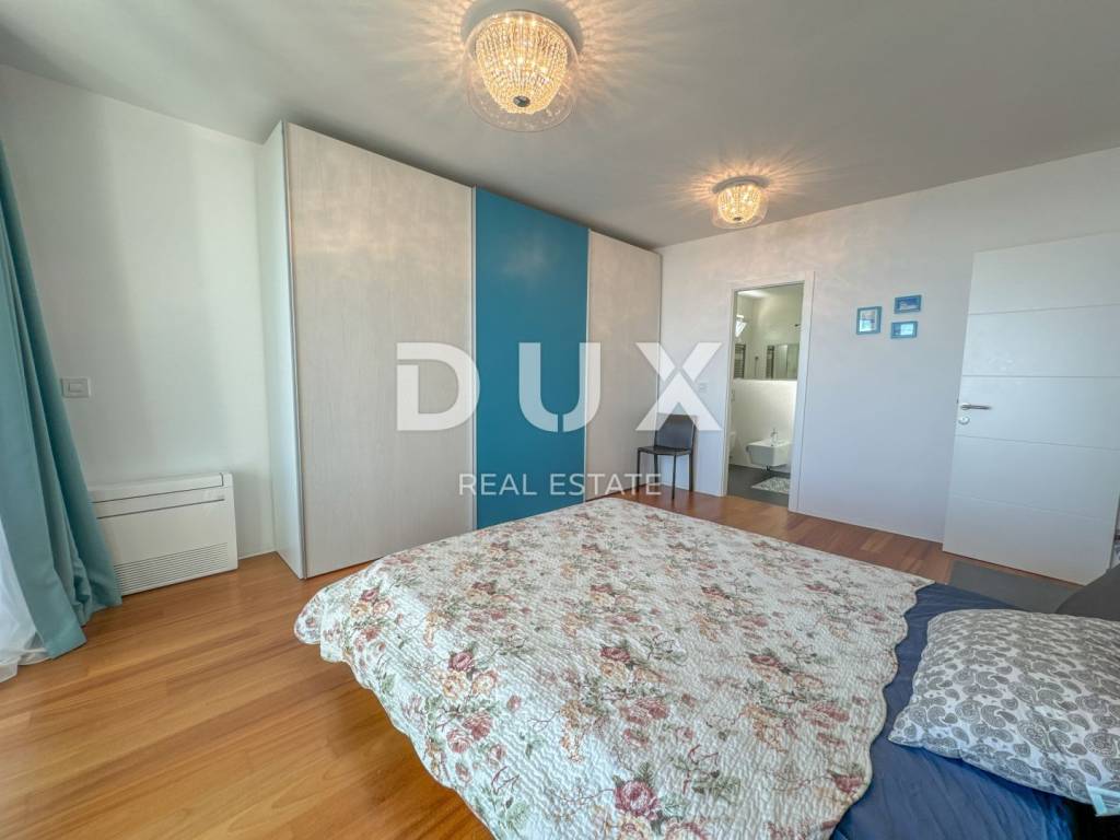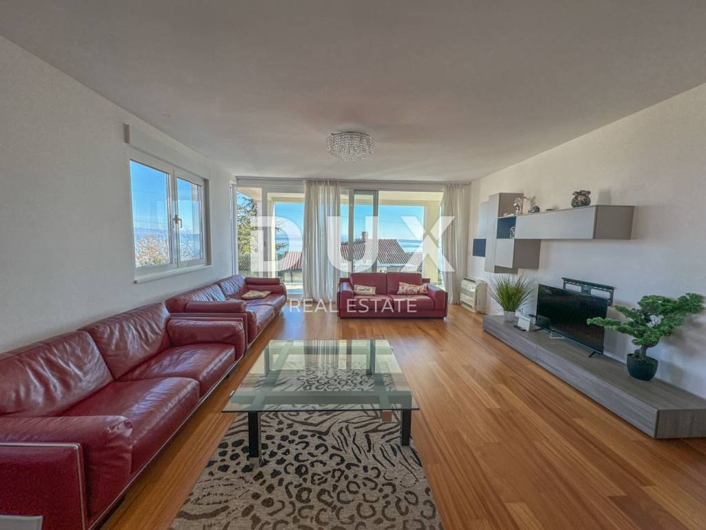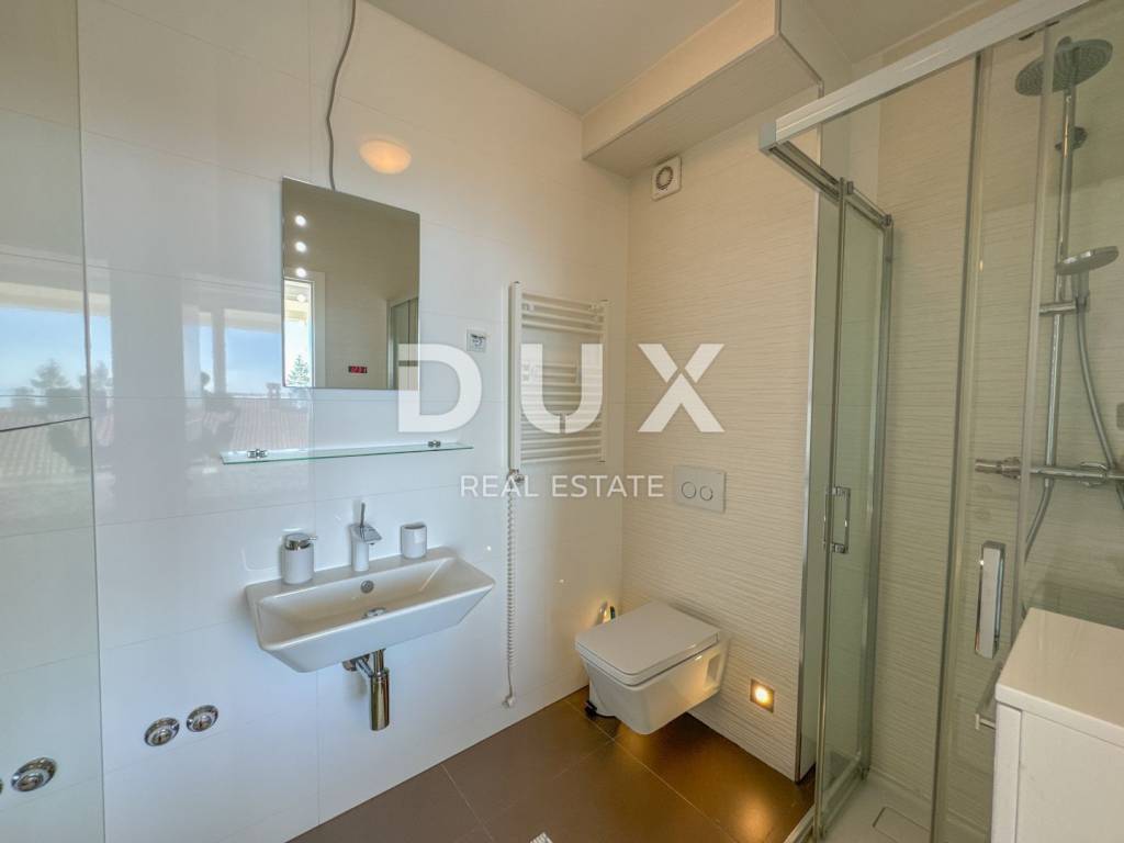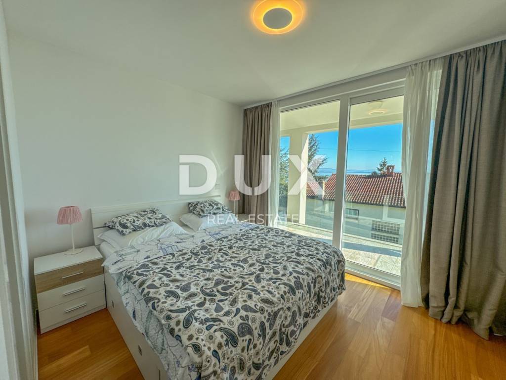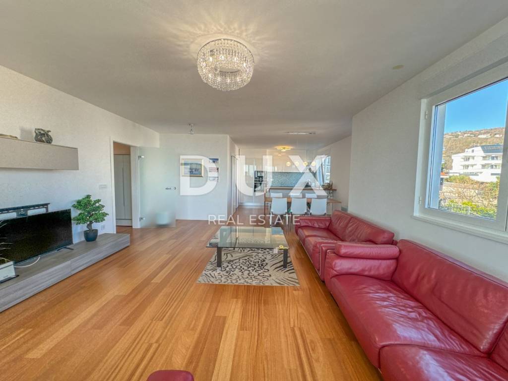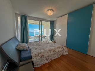 EXCLUSIVE! Only in Dux! A large penthouse of 165m2 is for sale, of which the outside loggia is 31.70m2 with a beautiful view of the sea. The apartment consists of a hallway that leads to a large living room with a kitchen, a dining room with a bar table and an exit to the terrace, 3 bedrooms, two of which have sliding walls that provide a lot of daylight and beautiful views of the Kvarner Bay. Likewise, from the mentioned rooms you can go out to a balcony with top-quality outdoor furniture (sitting table + deckchairs). The interior is fully furnished with top-quality furniture, a custom-made kitchen, and built-in wardrobes. In the bathrooms, of which there are 3, well-known brand materials were also used. Modern and high-quality parquet is spread throughout the apartment, which gives this floor a great feeling of home. On the roof of the building is the building's communal swimming pool where, in addition to swimming, you can enjoy the panoramic view of absolutely the entire Kvarner and the Učka hills. The pool is regularly maintained and it is possible to add your own deckchairs and umbrellas. The building was built in 2014, by a well-known local builder, thermal insulation on the facade, large open sliding walls, air conditioning in every room, underfloor heating in the bathrooms. Ownership of 3 marked parking spaces, intercom, security doors, electric blinds, large storage room are just some of the advantages of this beautiful property. This apartment is ready to move in and can also be purchased as a perfect investment for a tourist rental. The building is located in a private, extremely high-quality street above Ičići beach. It is a two-minute drive to the sea, or 10 minutes on foot downhill and 15 minutes uphill. The drive to Opatija center takes 8 minutes.