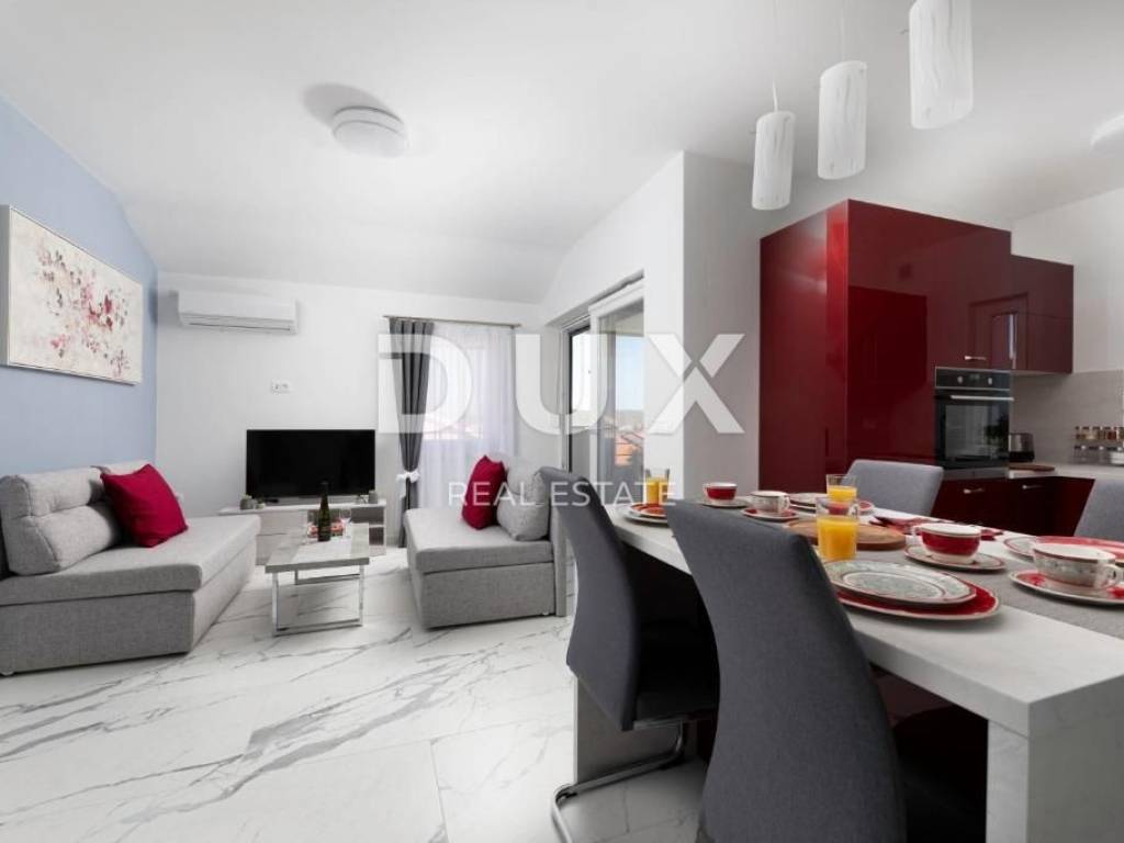 We have to highlight for sale an elegantly decorated apartment in the quiet fishing village of Čižići on the beautiful island of Krk, which is only 250 meters from the crystal clear sea. It is located on the second floor, offering guests a view of the Adriatic Sea, and it is especially highlighted by the balcony, which is perfect for enjoying morning coffee or for spending time with family and friends in the afternoon. The apartment covers an area of 65 m and consists of three comfortable bedrooms, a spacious living room connected to a modern kitchen and dining room. The bathroom, separate toilet and corridor contribute to the functionality of the space, creating a pleasant environment for everyday life or vacation. Special emphasis is placed on the details of the interior design, combining contemporary style with comfort, creating a warm atmosphere for tenants or guests. The apartment also comes with one parking space, providing convenience and making everyday life easier. Čižići stands out for its peaceful atmosphere and charm, ideal for those who want to escape from the hustle and bustle of city life. With picturesque beaches and authentic restaurants, this village offers a true Mediterranean idyll. Investing in this apartment represents an exceptional opportunity considering the attractive location, quality design and proximity to the sea. The island of Krk, known for its beauty, attracts tourists throughout the year, which makes this property extremely desirable both for your own stay and for potential rent. Dear clients, the agency commission is charged in accordance with the General Terms and Conditions. https://www.dux-nekretnine.hr/opci-uvjeti-poslovanja