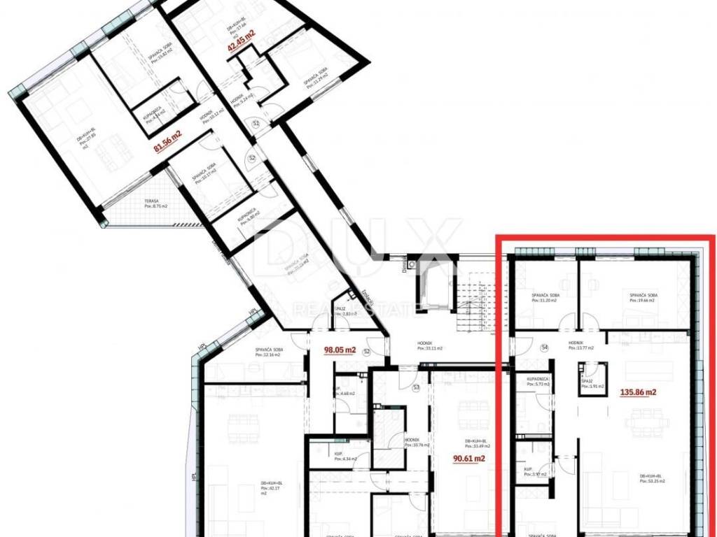 For sale is a beautiful three-room apartment in the very heart of the city of Umag, only 30 meters from the town center. This modern apartment covers 136 square meters, providing an extremely comfortable and functional living space. The apartment is equipped with modern facilities and high-quality materials, which guarantees maximum comfort, luxury and comfort. It consists of a spacious living room with an open kitchen and dining room, three bedrooms, an entrance hall and two bathrooms equipped with a shower cabin. In addition, the apartment has a covered terrace of 13 square meters, perfect for relaxing. The apartment offers everything you need for a modern and luxurious lifestyle, including underfloor heating for year-round comfort, a high-security front door and an elevator. The location is extremely favorable, located in the very center of the city, with quick access to restaurants, shops, bars and all other facilities that Umag has to offer. In addition, this property provides exclusive access to a landscaped beach, ideal for an unforgettable summer vacation. High-quality construction, proximity to the beach, central location and geotraffic position near the Slovenian border make this property extremely attractive, suitable for permanent residence, vacation, and tourist rental. The property is under construction with planned completion in mid-2024. The apartment is sold "turnkey" without furniture. GENERAL PROPERTY CHARACTERISTICS: - Proximity to the sea: 30 m - City center - New construction - High-quality construction - Elevator - Underground garage - Air conditioning with split system (3 internal and 1 external) - Underfloor heating - Aluminum carpentry - Heat pump Do not miss the opportunity to become proud owner of this luxury apartment in Umag and enjoy an exclusive life experience in one of the most attractive new buildings on the market. For additional information and viewing of the apartment, contact our agency today. Dear clients, the agency commission is charged in accordance with the General Terms and Conditions. www.dux-nekretnine.hr/opci-uvjeti-poslovanja