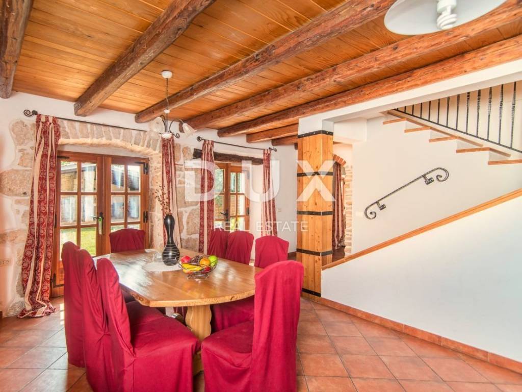 A renovated stone Istrian house with quality workmanship and a romantic spirit is located near the Marčane settlement, surrounded by natural greenery. It is a real Istrian stone house that was completely renovated in 2019 with the first goal of using it as a new family home. The house extends over two floors, with a total living area of 175m2. DESCRIPTION OF THE PROPERTY; Upon entering the stone villa, we are greeted by a smaller entrance hall with a separate guest bathroom. The same lobby is further connected to a spacious and warm living room. The main point of the living room is occupied by an original and functional stone fireplace ideal for heating the entire space during the colder months of the year. Separated from the living room, there is a spacious area that hides a well-equipped, high-quality kitchen with handmade solid wood elements, together with a dining room ideal for family get-togethers and entertainment. In the same space under the stairs there is also a storage room. The internal staircase further leads to the first floor, where there are 3 spacious bedrooms, each of which has its own comfortable and spacious bathroom. Then the staircase leads us further to the last floor (attic), where there is currently a children's bedroom with two beds. This same space can be repurposed according to the needs of the future owner. The outdoor space, which is equally decorated in the true Istrian spirit with prominent stone details and local plants, is enough space for entertaining friends and family. A covered summer terrace with a larger grill and a dining table, along with an original and functional bread oven, as well as a spacious plot of land next to the house at the back, with a total square footage of 1183m2, will surely help you in this. On which there is a spacious swimming pool with a sunbathing area, an area for rest and relaxation, and a technical room with a storage room. In front of the house there is a small part of the garden, which is large enough to park 4 cars. ADDITIONAL INFORMATION; * The property is sold fully furnished, as can be seen in the pictures, 3D walkthrough and video * Each room is equipped with air conditioning for cooling and heating, while the original Istrian stone fireplace in the living room is additionally used for heating * During the renovation, a completely new installation of electricity, water and drainage, new thermal, hydro and sound insulation was installed * The property is clean, 1/1, without financial burden LOCATION DESCRIPTION; * Distance from the shop 2km * Distance from the first restaurant 2km * Distance from the beach 10km * Distance from the city of Pula 17km * Distance from Vodnjan 8km In the immediate vicinity of the property there are numerous restaurants and taverns that offer distinctive local food and drinks, as well as and numerous walks, bike paths through beautiful nature and old stone settlements. We must not forget the 36km of indented coastline that adorns the Municipality of Marčana, starting from the bay of Raš in the north to the bay of Budava in the south. This entire area has characteristics characteristic of the elements of "red Istria", and the climate is pleasant Mediterranean with plenty of sun. Dear clients, the agency commission is charged in accordance with the General Terms and Conditions. www.dux-nekretnine.hr/opci-uvjeti-poslovanja