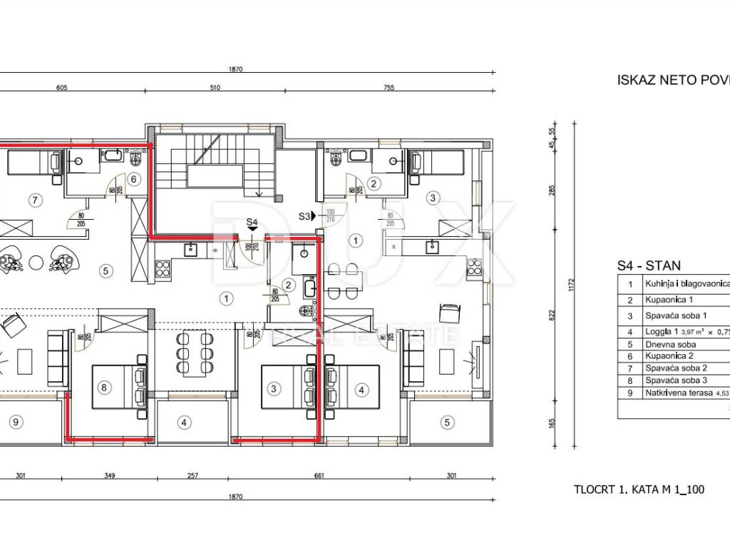 Pula lies on the southwestern part of the Istrian peninsula in a well-protected bay and is the largest city in Istria. It is known, like the rest of the region, for its mild climate, calm sea and untouched nature. The town has a long tradition of winemaking, fishing, shipbuilding and tourism, and is also a transit port. Pula has been the administrative center of Istria since Roman times. Today, around 67,000 people live in the inner city area, but the area that gravitates towards it every day, and due to a combination of circumstances, is not administratively included in the structure of the city, although, in fact, it is an integral part of it, has more than 100,000 inhabitants. This smaller residential building with a total of 6 residential units is located on the outskirts of the city of Pula. The property in question is located on the first floor and has a total living area of 93.10m2. It consists of a small entrance hall, a living room connected to the kitchen and dining room, three bedrooms, two bathrooms, a covered balcony and a small loggia. Each property is equipped with PVC joinery, electric underfloor heating in the bathroom, while the rest of the apartment is heated and cooled by inverter air conditioners. The floor coverings are high-quality laminate and tiles, which future owners have the option of choosing within the investor's budget. Each residential unit has its own parking space. The planned start of construction is September 15, 2024. while the completion of the works is scheduled one year later, i.e. September 15, 2025. years.