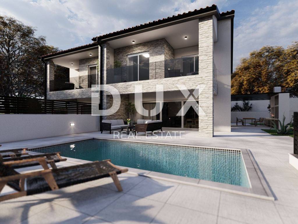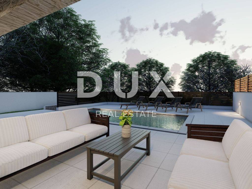 This luxurious apartment with 3 spacious bedrooms is located in a beautiful new building and represents the pinnacle of elegance and comfort. Each bedroom has its own exclusive bathroom and toilet, providing unprecedented luxury and privacy. The living area in which the kitchen, living room and dining room are located fascinates with its spaciousness and design, it is ideal for gathering with family and friends, it has access to the terrace where you can enjoy a spectacular view of the environment and the sea. The pantry is an additional practical element of this apartment, providing enough storage space. The exterior is enchanting, with a beautifully landscaped garden that offers peace and privacy, and a spacious pool that will refresh and relax you. Additional luxury is provided by two parking spaces in the immediate vicinity of the apartment, providing you with convenience and safety. This property is perfectly located in the immediate vicinity of the sea and all the necessary facilities, making it an ideal home for those looking for the ultimate comfort and convenience by the coast. The town of Sveti Vid, located near Malinska on the island of Krk, is a picturesque corner of the Adriatic Sea that represents a harmonious combination of natural beauty and quality of life, allowing you to enjoy the benefits of this idyllic island on the Adriatic. The proximity of the coast and beautiful beaches make it attractive for many tourists, and preserved historical monuments, festivals and gastronomic offer enrich the life of the community. The island of Krk is a popular tourist destination, full all year round, and it is a favorite among visitors precisely because of its exceptional location, ease of access, numerous attractions and proximity to all necessary facilities. Although the island is full of tourists St. Vid offers peace and quiet making it a perfect place to relax. Dear clients, the agency commission is charged in accordance with the General Business Conditions www.dux-nekretnine.hr/opci-uvjeti-poslovanja