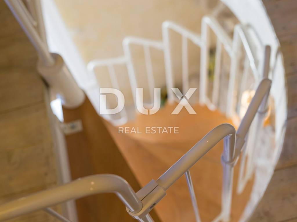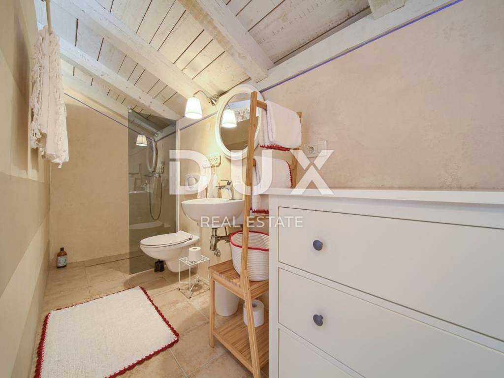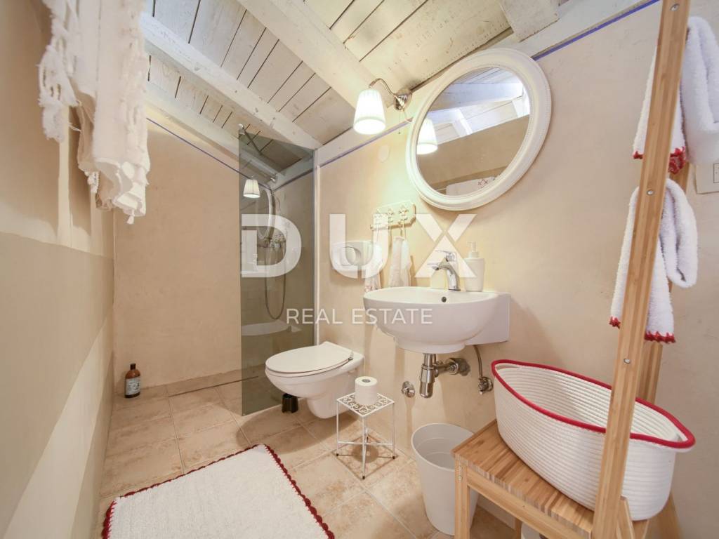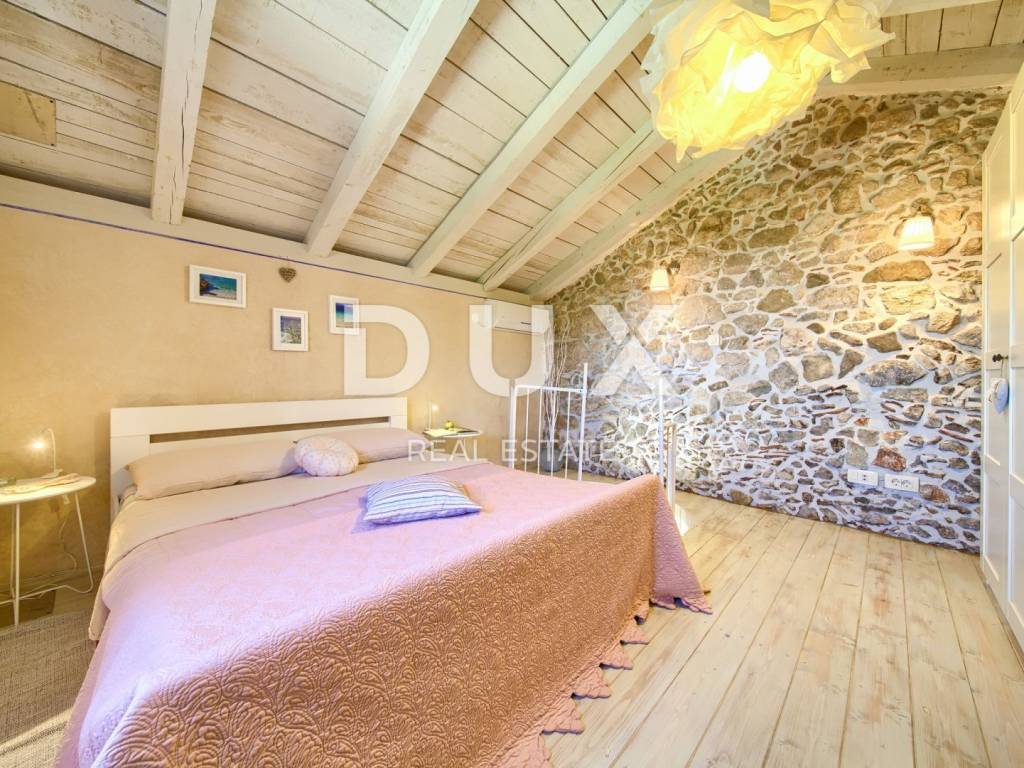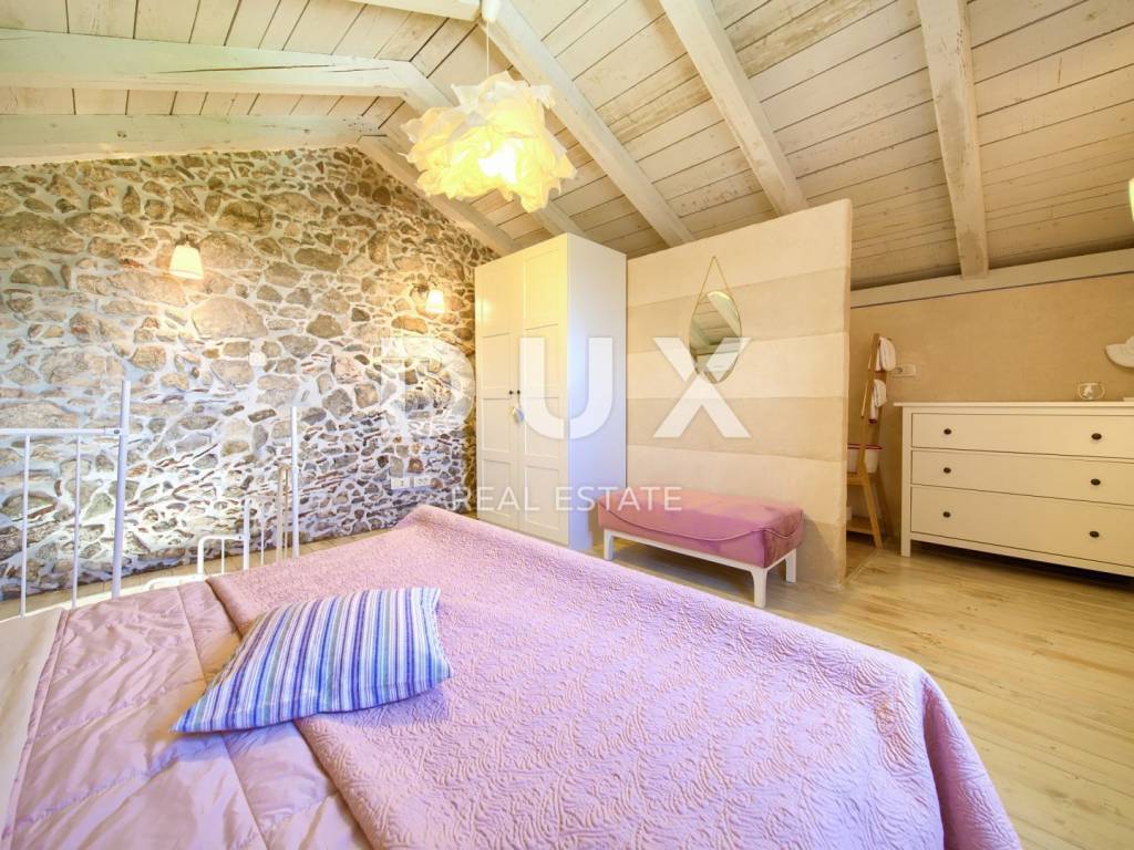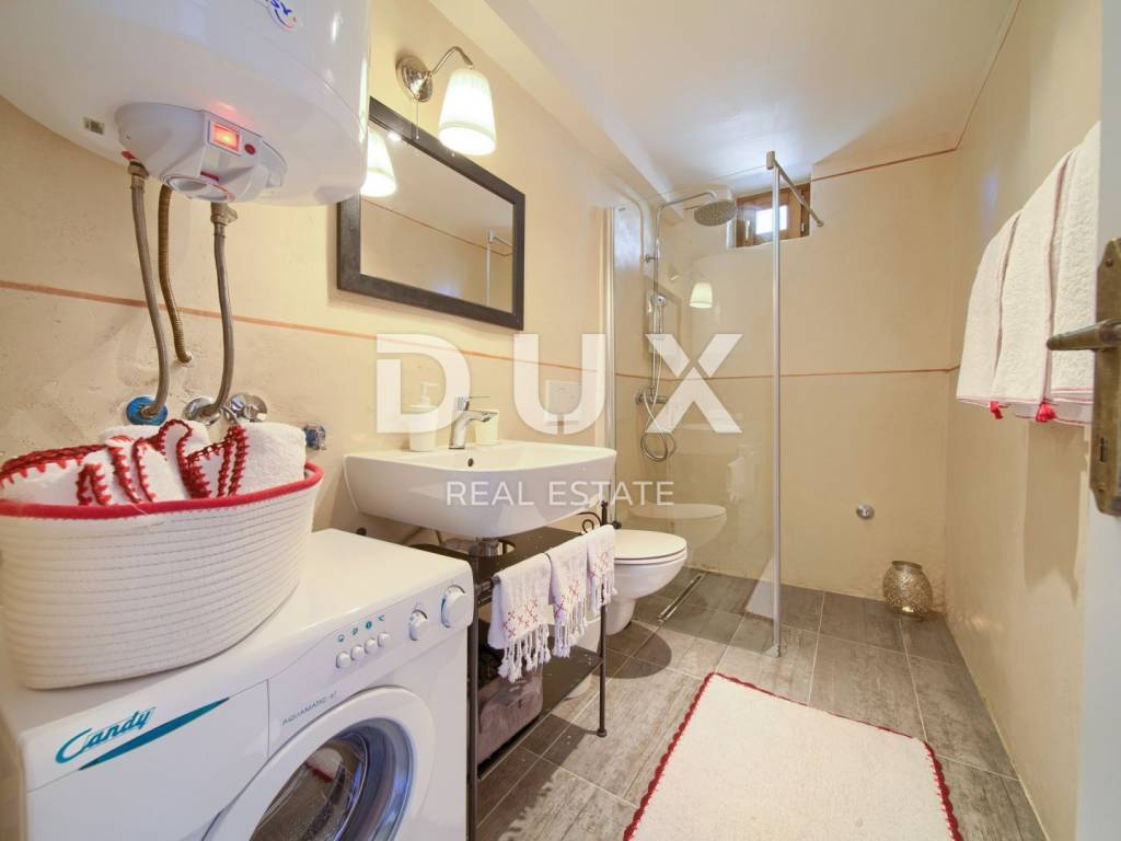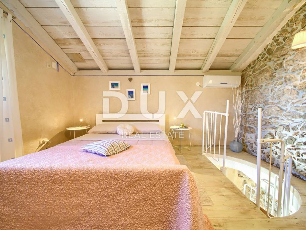 It is located in a quiet location in Dobrinj with a view of the sea and greenery, yet less than 100 meters from shops and restaurants. The house was completely renovated in 2016, i.e. built from the ground up using modern construction techniques. In the beautifully landscaped garden, there is a jacuzzi, a covered terrace, and two storage rooms and two parking spaces. On the ground floor of the house there is one bedroom, a bathroom and a living room with access to the garden. On the first floor, there is a kitchen and a dining room that leads to a balcony with an open view. On the second floor is another bedroom with a bathroom. Heating is wood and air conditioning. On the eastern side of the island of Krk is the municipality of Dobrinj with the center of the same name. Dobrinj is located on a hill about 200 meters high and is one of the medieval castles that were centers of literacy in the past. For centuries, Dobrinjština was an extremely agricultural region. Animal husbandry and olive growing, as well as the exploitation of forest resources, were also represented. The place is also known for its colorful folk costumes, folklore events, sopela school (Krk's wind instrument) and traditional local cuisine. In this island center, autochthonous stone houses and narrow stone streets that are reminiscent of the past prevail. Not far from Dobrinje is the Biserujka cave, which delights with its beauty and interesting precipitated forms. It is the only cave on the island, of which there are more than 50, designed to receive visitors. According to legend, the cave was named Biserujka (pearl) after the treasure found in it, which belonged to local pirates.
