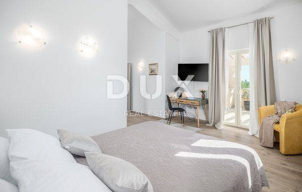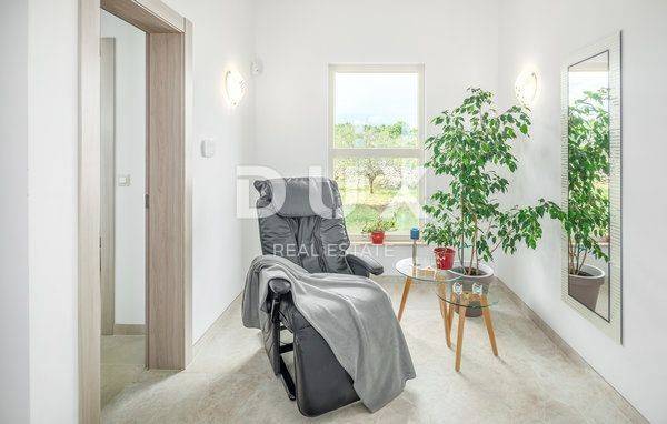 Thanks to the rich history whose traces can be found since ancient times, very favorable climate and exceptional natural beauty combined in a unique combination of green interior and blue coast of the Adriatic Sea, Vodnjan and its surroundings will delight you with its charm and cultural heritage and a diverse range of activities. Vodnjan is a recognizable Istrian gem when it comes to top gastronomic experiences. But he is also proud of his cleverly renovated old stone houses. Villas in Vodnjan are enriched with additional facilities such as swimming pools and imaginatively landscaped gardens and therefore guarantee a quality vacation. Renting villas in Vodnjan is becoming an increasingly popular way to relax during a visit to this area. Enjoy all the benefits of the fruits of the land of red soil and experience unforgettable moments in our villas. In an isolated and quiet location in Vodnjan is a beautiful luxury villa with a total size of 460 m2, located on a plot of 5800 m2. The villa was built in 2018 and during the construction, the highest quality materials were used. This beauty consists of 2 separate apartments, one on the ground floor while the other is located on the first floor. Both apartments have their own separate entrances. On the ground floor of the villa there is an apartment with living room and kitchen, pantry, bathroom, toilet, bedroom, gym and sauna. Upstairs there is a large living room, 3 bedrooms, 3 bathrooms and two terraces. The house as such has a total of two living rooms, one kitchen, four bedrooms, five bathrooms, one toilet, a separate area with a gym and sauna, three pantries and a separate tavern. In the yard there is a large pool of 35 m2 and right next to it is a tavern with a fireplace. What makes this villa very interesting is the fact that it has as much as 5800 m2 of garden on which is located a small children's park, two garages, barbecue and part of the land with planted 120 olive trees. The villa also has an olive grove with 120 olive trees that are 20 years old. Heating in the house is through air conditioners, and through the house is installed underfloor heating, which is located in all rooms except the bedrooms. There are solar panels on the roof of the house, and the villa has two separate entrances. Rear entrance with 2 cars and at the front entrance with space for 4 more cars + two garages. Given the quality of construction, the location where this villa is located, the size of the building and garden, the facilities that the villa offers, the huge olive grove that belongs to this property, this villa is a unique opportunity for people who love their own peace and nature. The villa can be used for private life, but also for rent since it is categorized and has so far been rented to tourists. The location provides peace and quiet, and yet is close to all necessary basic facilities. If you are interested in buying or more information, call us on the mobile number 098 9370 2020.