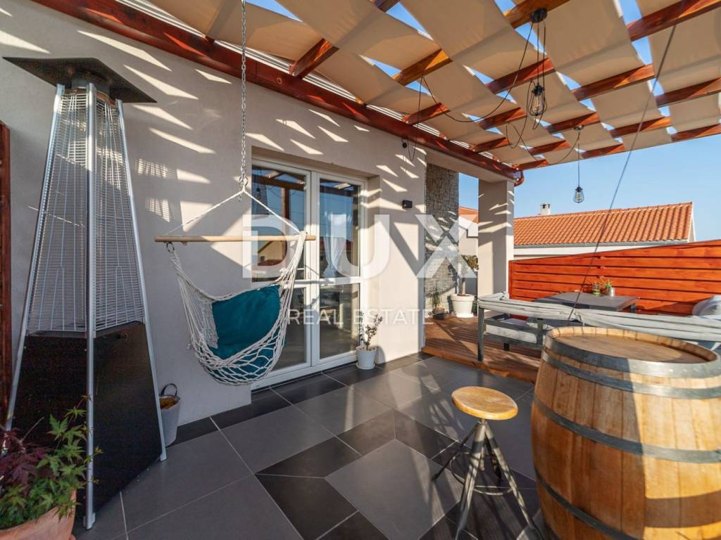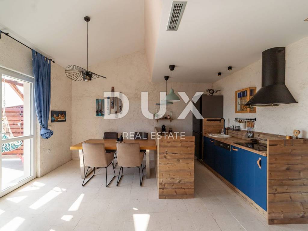 A beautiful house for sale located in an extremely peaceful and quiet area, even during the tourist season. This house provides an ideal combination of luxury, comfort and an extraordinary view of the sea. With a plot area of 506 m2 and a total living area of 147 m2, the garden of the house itself has 359 m2 and offers an extraordinary space for relaxing and enjoying life. Main features: - Three Residential Units: The house consists of three designerly furnished residential units, each with its own special charms and functionalities. The first residential unit has one bedroom with wardrobe, bathroom with underfloor heating, kitchen, living room and dining room in open-space style with underfloor heating (heat pump) and a large terrace. The kitchen, living room and dining room as well as the terrace are oriented towards the sea. The air conditioning is central, it equally blows cold or warm air depending on the needs in all rooms. This apartment has a stone floor. The residential unit is decorated in a designer style down to the last detail. There is sensor lighting in the hallway and bathroom. In the second residential unit, there is a bedroom, a bathroom with underfloor heating, a living room with a dining room and a kitchen, and a gallery (as an office room) made in an open-space style, with underfloor heating (heat pump). Also, the second residential unit has a spacious terrace. The third residential unit has a bedroom, bathroom with floor heating, living room with dining room and kitchen in open space style. LED lighting is installed in all residential units. All shower cabins are walk-in. There are no unsightly boilers or washing machines in any of the bathrooms, because the bathrooms are decorated in a spa style. - Fully Furnished: This property is sold fully furnished, which means that there is no need for additional investments. Pack your bags and move in now. - Sea view: The large terraces of each residential unit offer an incredible view of the sea. Here you will enjoy beautiful sunsets every day. - Great Location: The house is only 800 meters from the sea and 500 meters from the school, post office and clinic. In addition, in the immediate vicinity there are numerous natural beauties such as Velebit and Tulovi Greda. - Luxuriously Furnished: Each residential unit delights with carefully designed details and high-quality materials. Floors with underfloor heating, central air conditioning and LED lighting are just some of the luxurious accessories. - Spacious Gardens: Each residential unit has its own small, ambiently lit garden with olive trees and lavenders, creating a quiet corner for relaxation. Under the terrace is a small basement in which there is a boiler for hot water and a heat pump. - Project for a Solar Power Plant: The house has a project for a solar power plant, which further reduces energy costs. - Parking lot for 5 cars: The large parking lot on the plot provides enough space for parking five cars. - Ideal Location: The house is only a 30-minute drive from Zadar, 45 minutes from the Plitvice Lakes and 15 minutes from the Paklenica National Park, which is ideal for exploring the surrounding beauty. - Possibility of sharing: This house offers the possibility of sharing, which opens up various possibilities for future owners. - Year of Construction: The house was built in 2016 and regularly upgraded and maintained until 2023. This property is perfect for both residential and tourist rental. There is a possibility of selling without inventory, which results in a lower price of 20,000 euros. Do not miss the opportunity to become the owner of this beautiful house that provides everything you need to live in comfort and style.