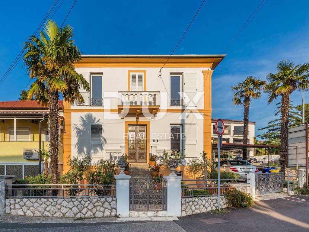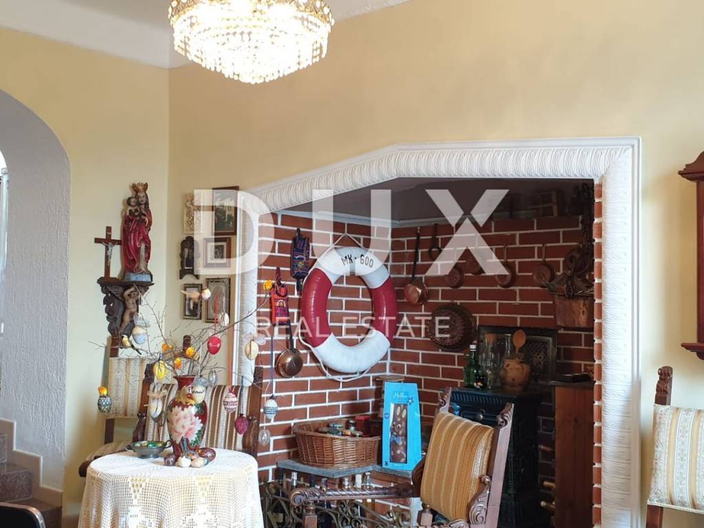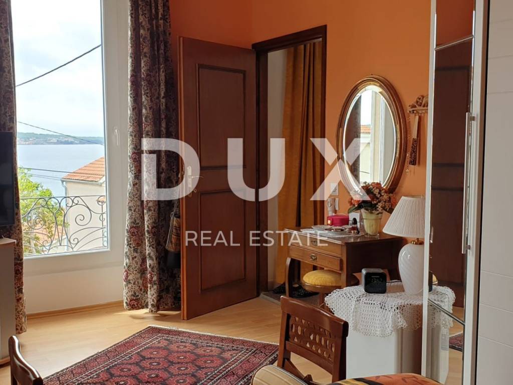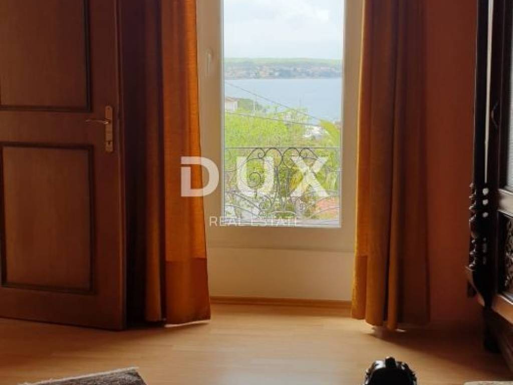 Beautiful autochthonous villa of 220 m2, just 100 meters from the center of Malinska. It was built in 1932 and completely renovated in 1990 with special attention to preserve the original appearance (entrance stairs, fireplace, internal stairs). The villa is spread over three floors. In the basement there is a studio apartment with one bedroom and a bathroom. Internal stairs lead to the upper ground floor where there is a bedroom, living room, kitchen with dining room and bathroom. On the 1st floor there are two bedrooms, a study that can be converted into another bedroom, a bathroom and a terrace with a view of the sea. The rooms have French balconies that also offer a beautiful view of the sea. The yard is landscaped, has a place for socializing and a barbecue, as well as parking spaces.