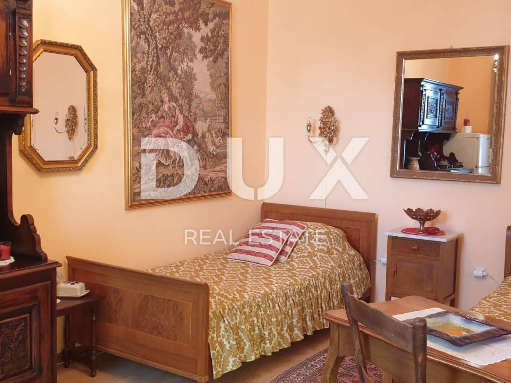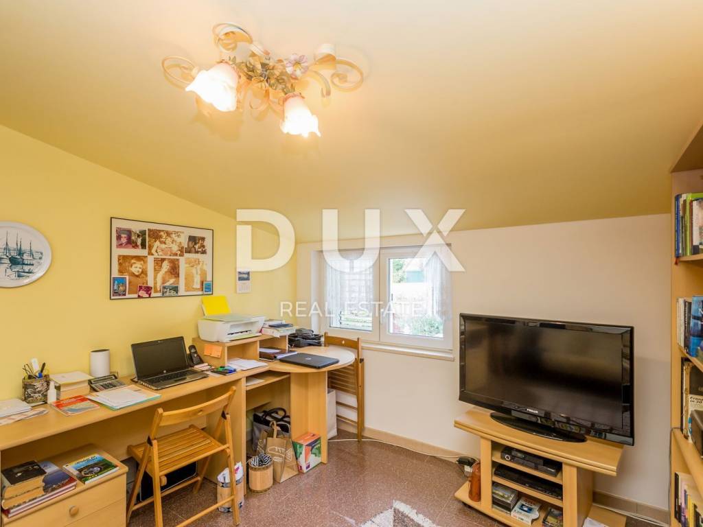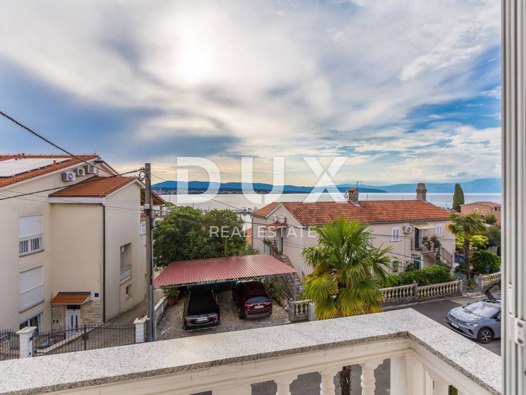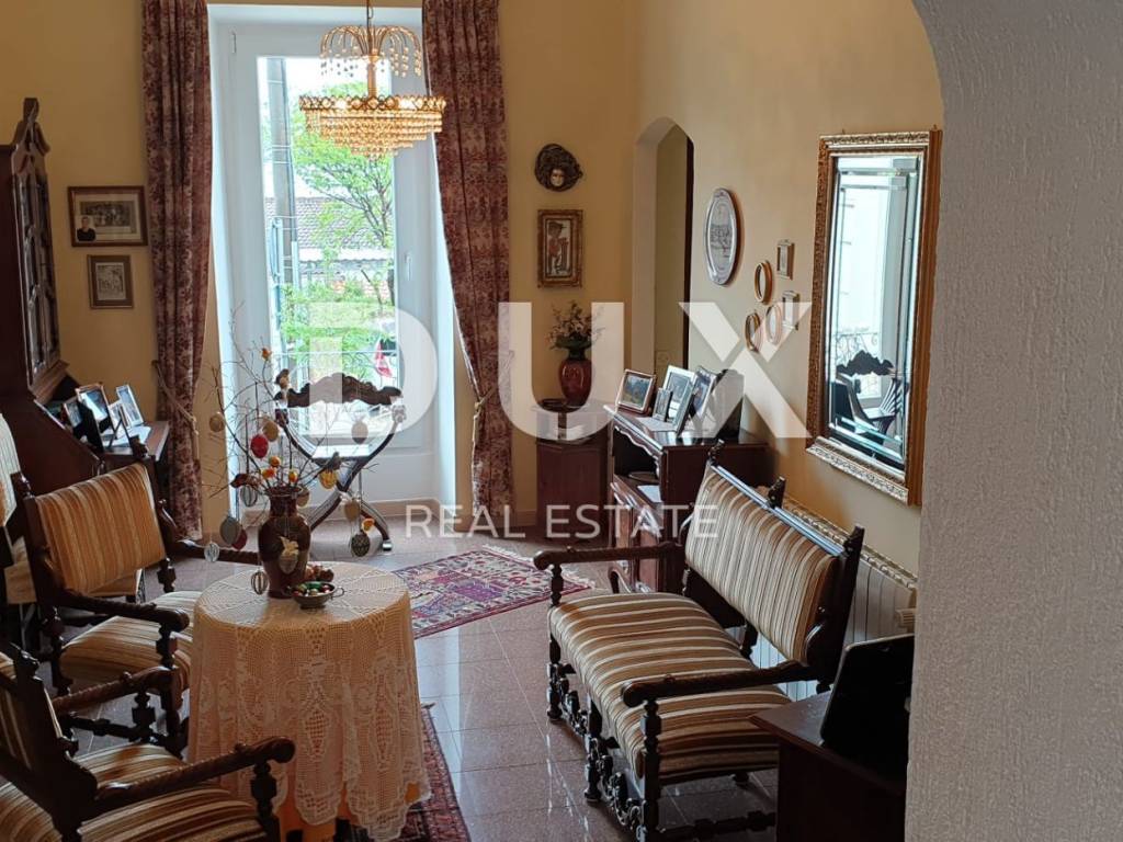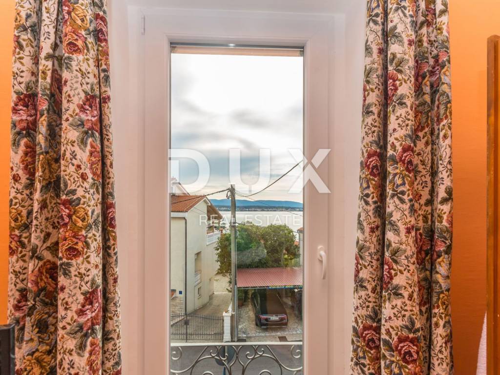 Beautiful autochthonous villa of 220 m2, just 100 meters from the center of Malinska. It was built in 1932 and completely renovated in 1990 with special attention to preserve the original appearance (entrance stairs, fireplace, internal stairs). The villa is spread over three floors. In the basement there is a studio apartment with one bedroom and a bathroom. Internal stairs lead to the upper ground floor where there is a bedroom, living room, kitchen with dining room and bathroom. On the 1st floor there are two bedrooms, a study that can be converted into another bedroom, a bathroom and a terrace with a view of the sea. The rooms have French balconies that also offer a beautiful view of the sea. The yard is landscaped, has a place for socializing and a barbecue, as well as parking spaces.