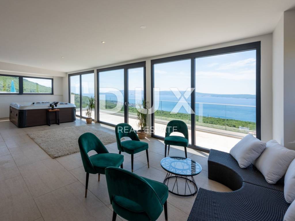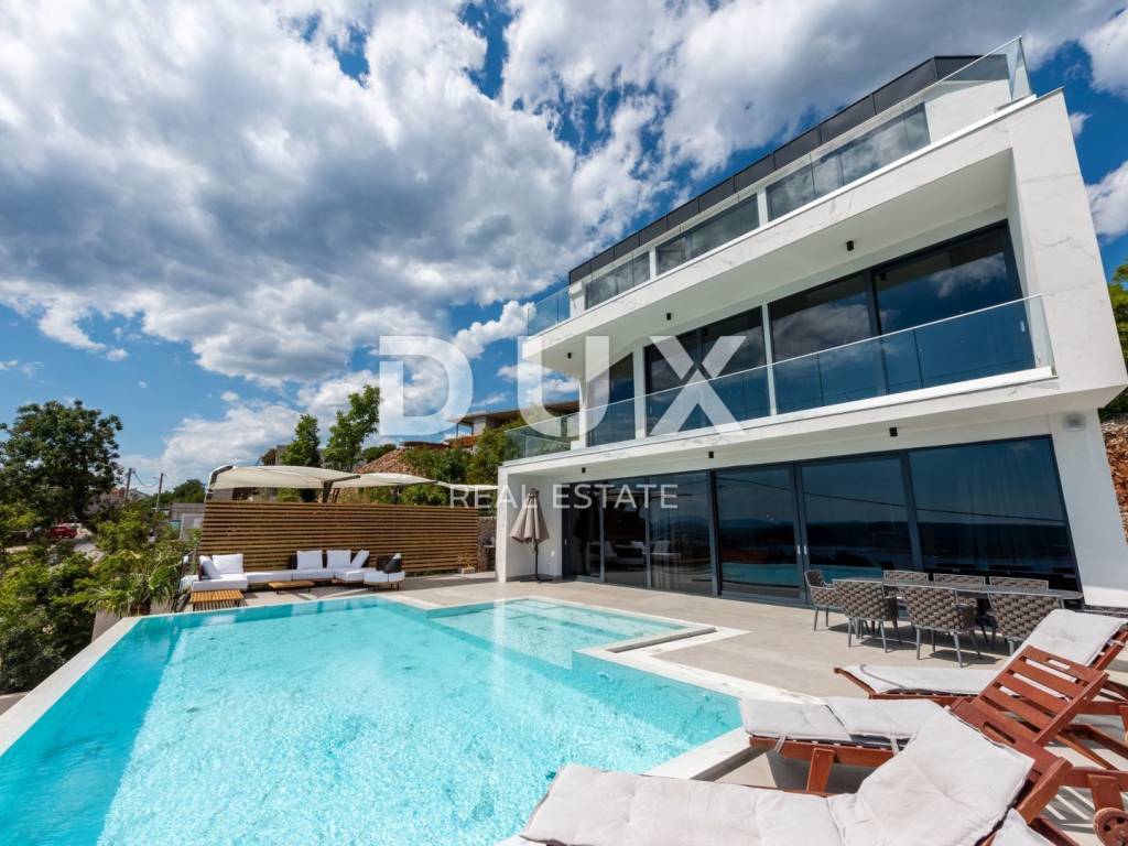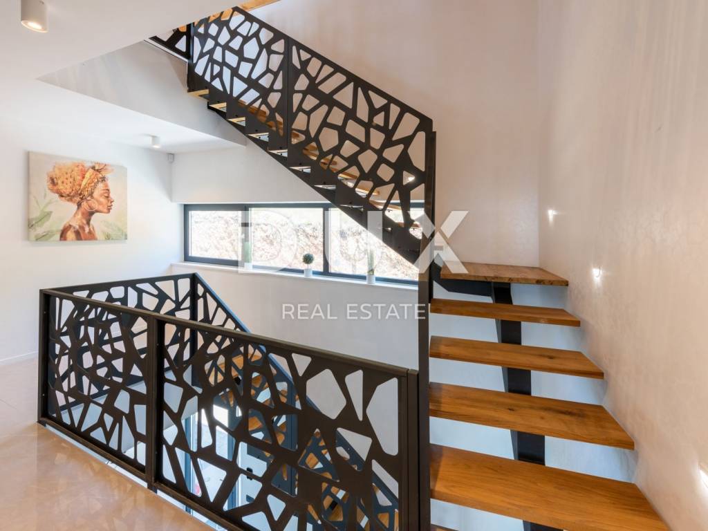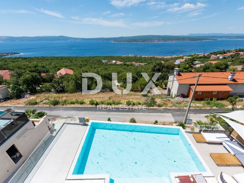 We offer a beautiful modern villa in a great location above the town of Crikvenica. The villa has a spectacular view of the sea and the island of Krk. It consists of an entrance area on the ground floor, which also houses the living room with dining room and kitchen, as well as a bedroom and bathroom. Upstairs there are three bedrooms, each with its own bathroom, and a roof terrace with a Balboa jacuzzi, a Finnish sauna and a sun deck. It is fully equipped and furnished with designer furniture and is being sold as such. Additional equipment includes air conditioning in every room, underfloor heating, heat pumps and a central vacuum cleaner. The villa is categorized with the highest energy class, and the garden includes 3 parking spaces and an infinity pool 9x5x1.5. The villa is equipped with a smart house system - control via mobile applications, underfloor heating on the ground floor and ceiling cooling. The preparation for solar panels has been carried out. Ajax alarm system, DVC visual surveillance system, smart Nuki lock with encrypted front door + keypad, you can use your smartphone instead of a classic key, pool mode control, Bluetooth irrigation control. MATERIALS are of top quality and from renowned manufacturers. The house is also equipped with a central vacuum system, Aertentica robot - self-cleaning. The carpentry is Schüco, the glass is of the highest energy class. Glazing: 2 x 6+4+6mm 6 SUNGARD 52 LIGHT+16+4+16+331 VSG Ug=0.6 W/(m2K) Heating by Klima Gree in all rooms. The infinity pool overflows on all 4 sides. The cladding of the building is stone wool 12 cm at the level of energy class A+. The interior is decorated so that the floors are tiled with top-quality Italian ceramics, except in the rooms where top-quality three-layer parquet is installed. The price shown is for a natural person. For legal buyers, the price for VAT is reduced.